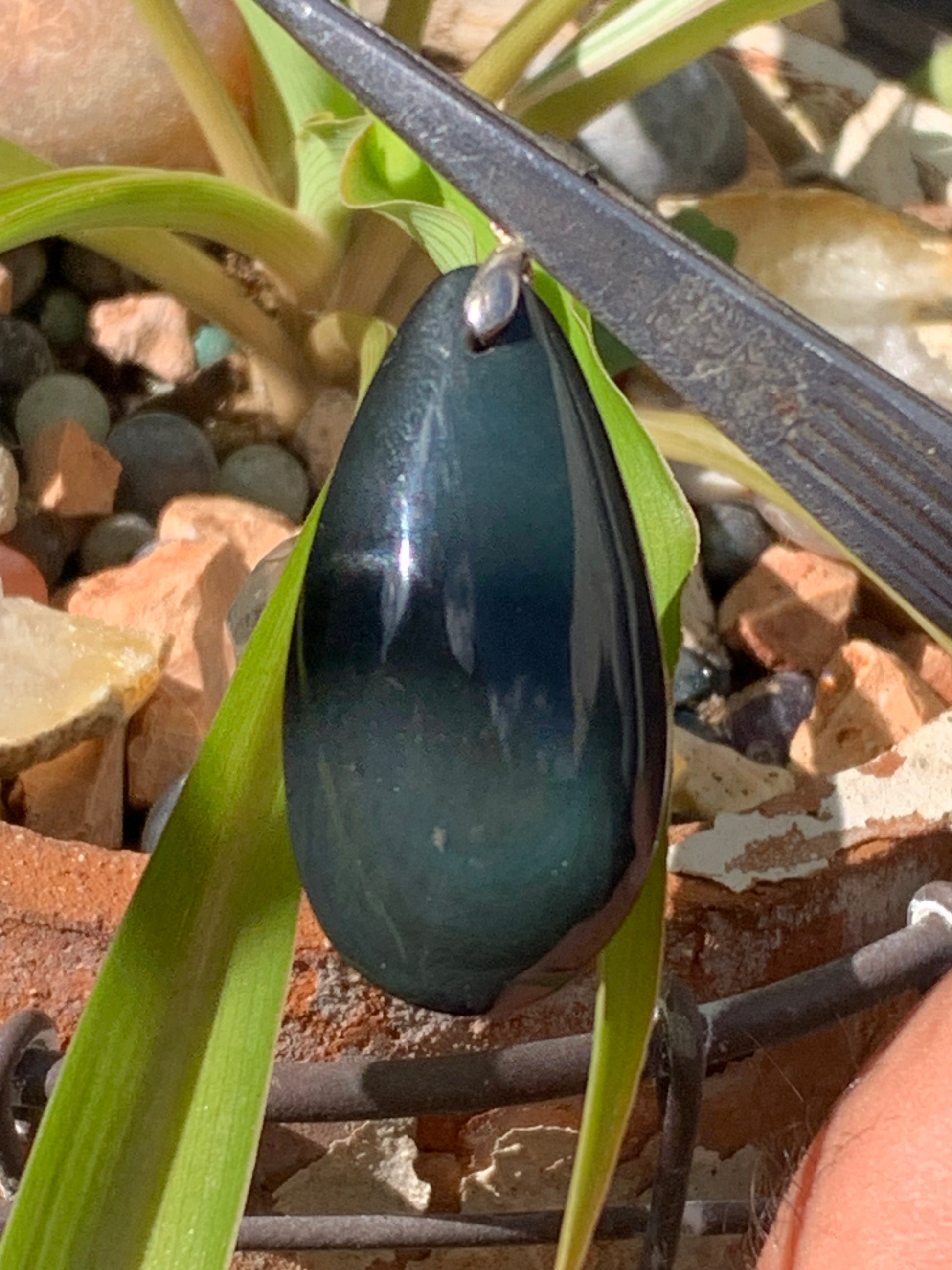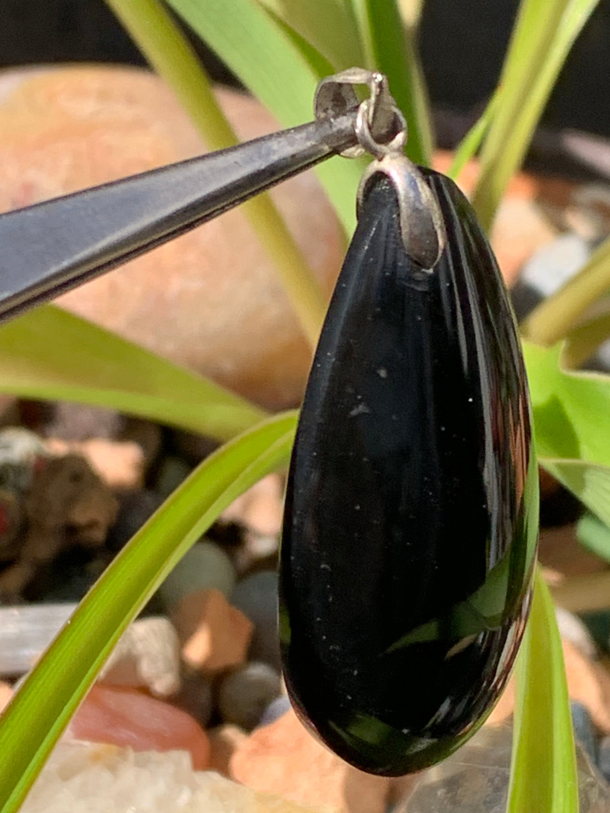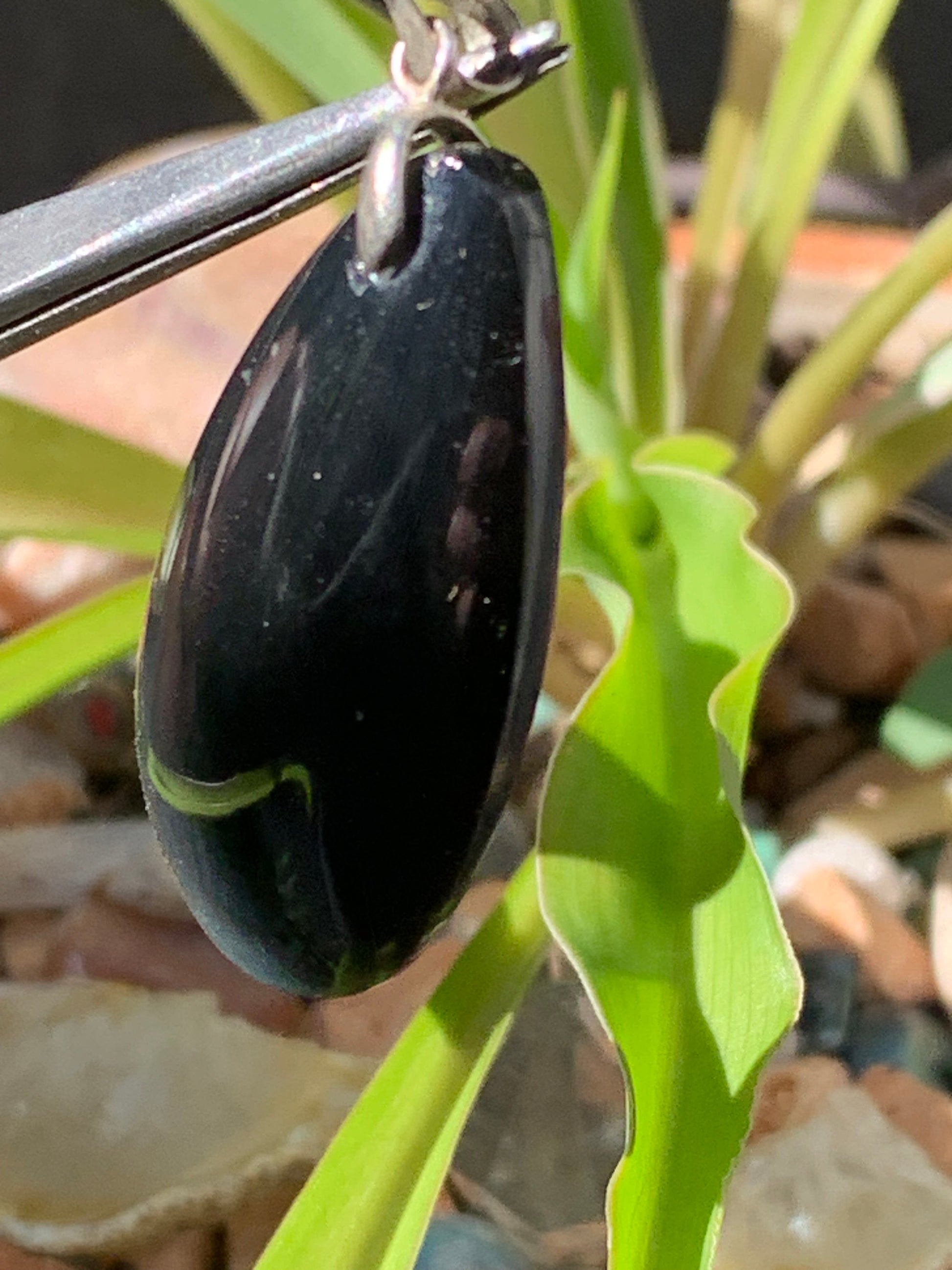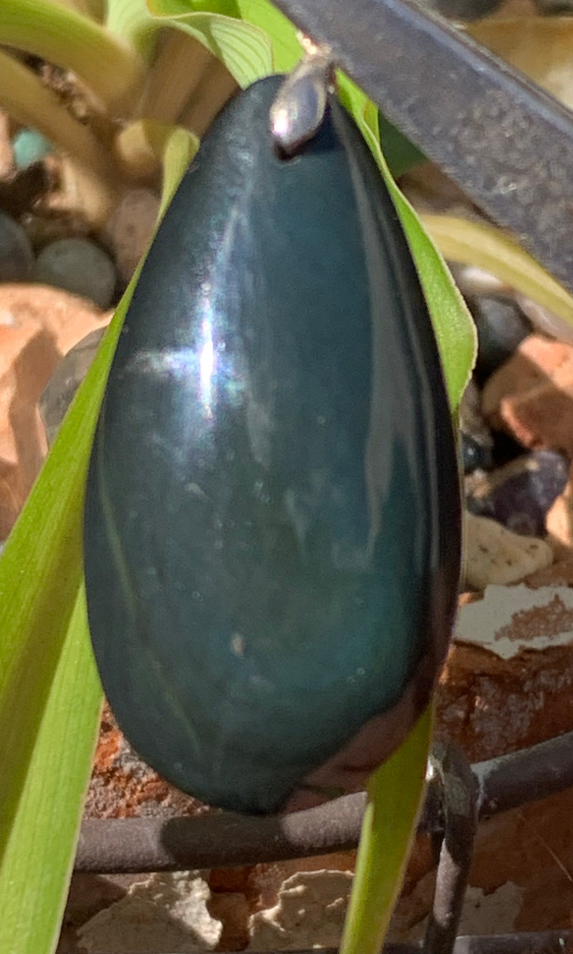 Obsidienne Arc-en-ciel, pendentif de 45 millimètres de hauteur x 18 mm de largeur x 10 millimètres. Vendu avec cordon noir réglable offert !