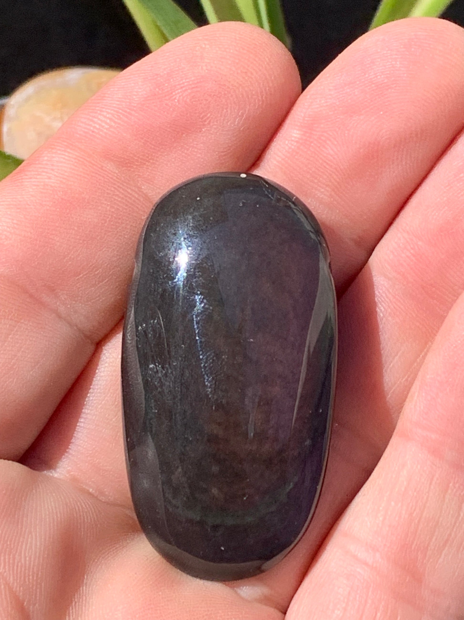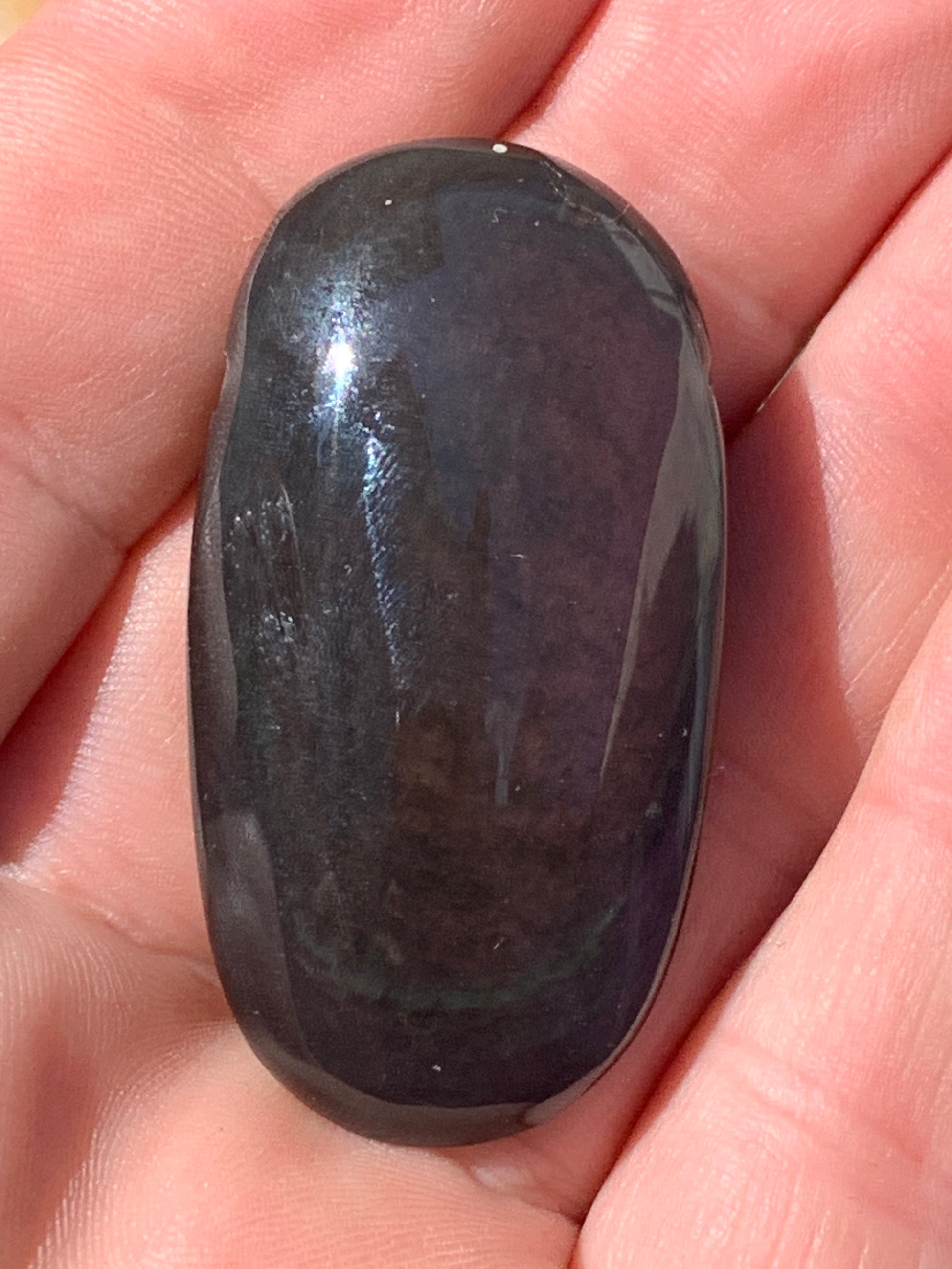 Petite histoire / particularité | Issue des coulées volcaniques, l’obsidienne arc-en-ciel est considérée comme une pierre chamanique et de révélation. Ses irisations sont dues à des inclusions microscopiques qui diffractent la lumière. Dans de nombreuses traditions, elle est utilisée comme miroir spirituel, permettant de sonder les profondeurs de l’âme et d’accéder à une sagesse supérieure. |