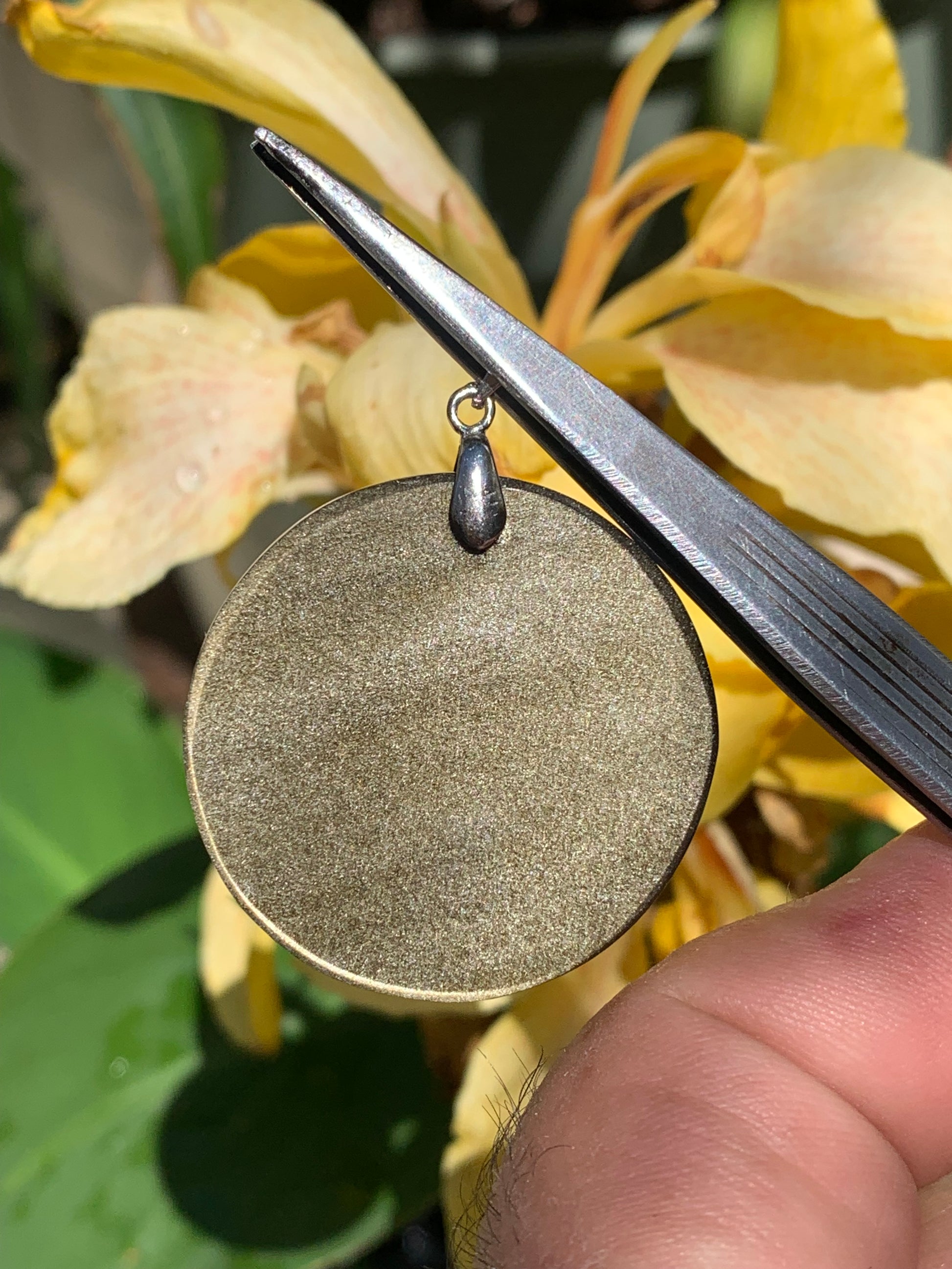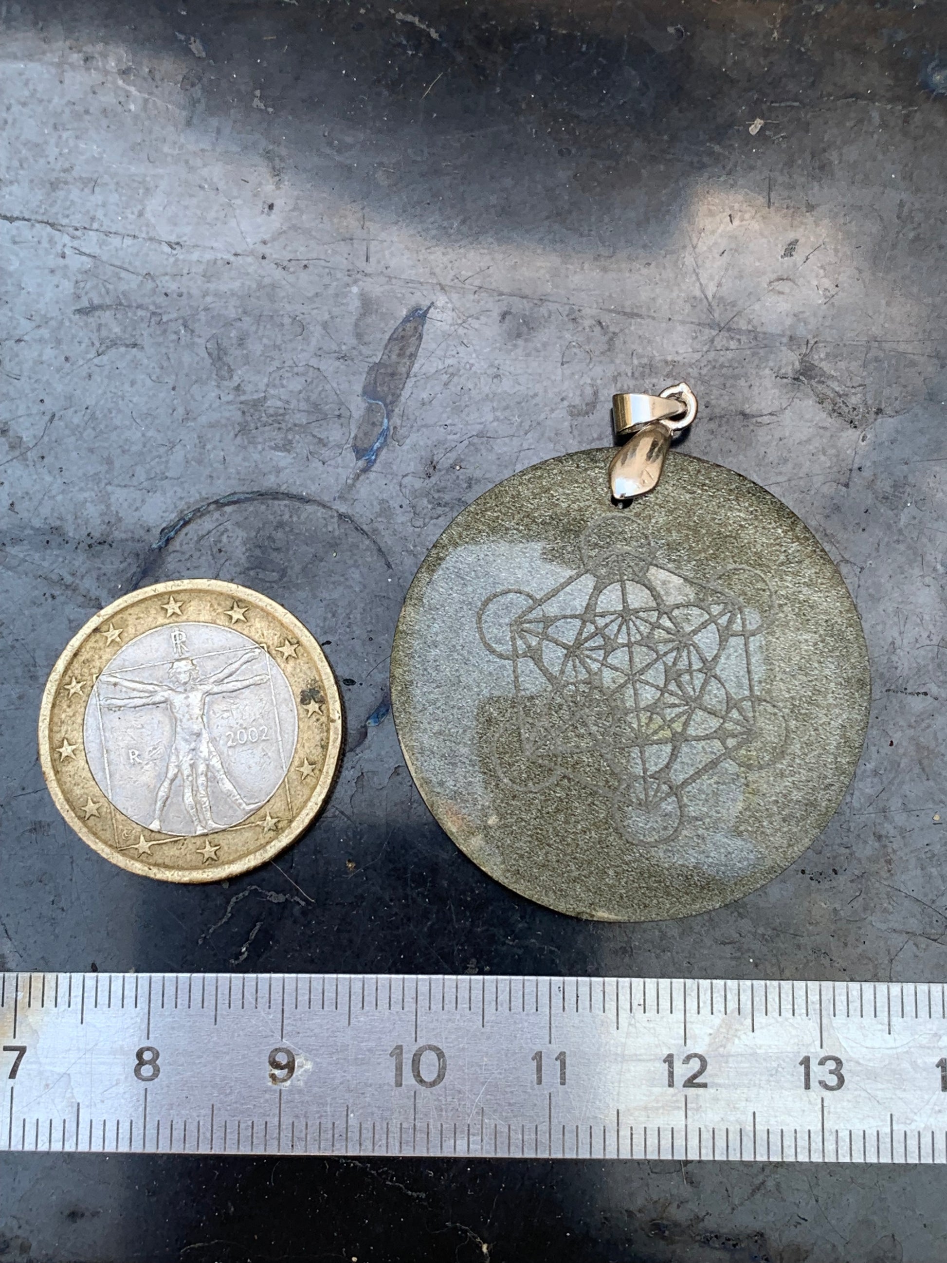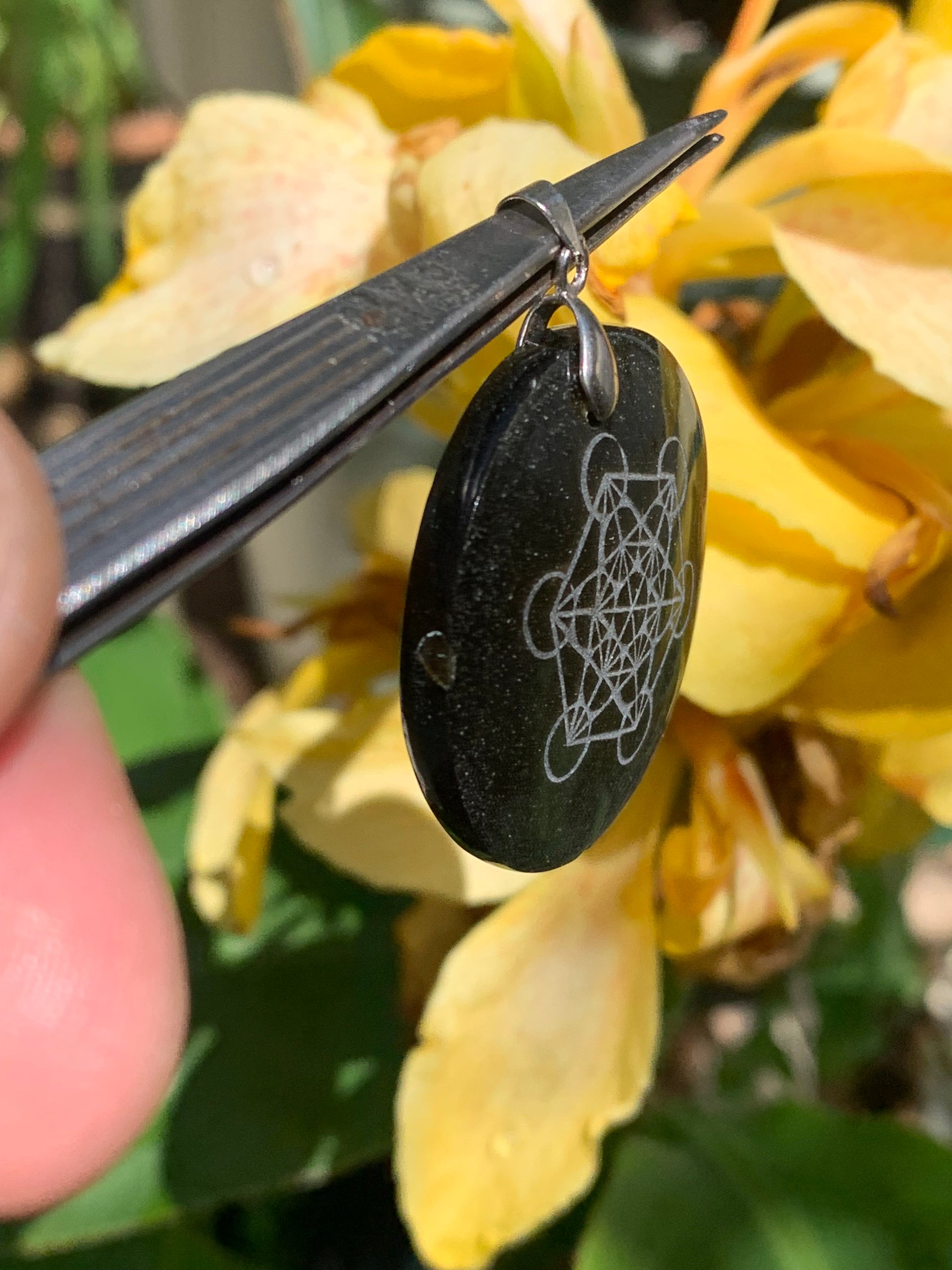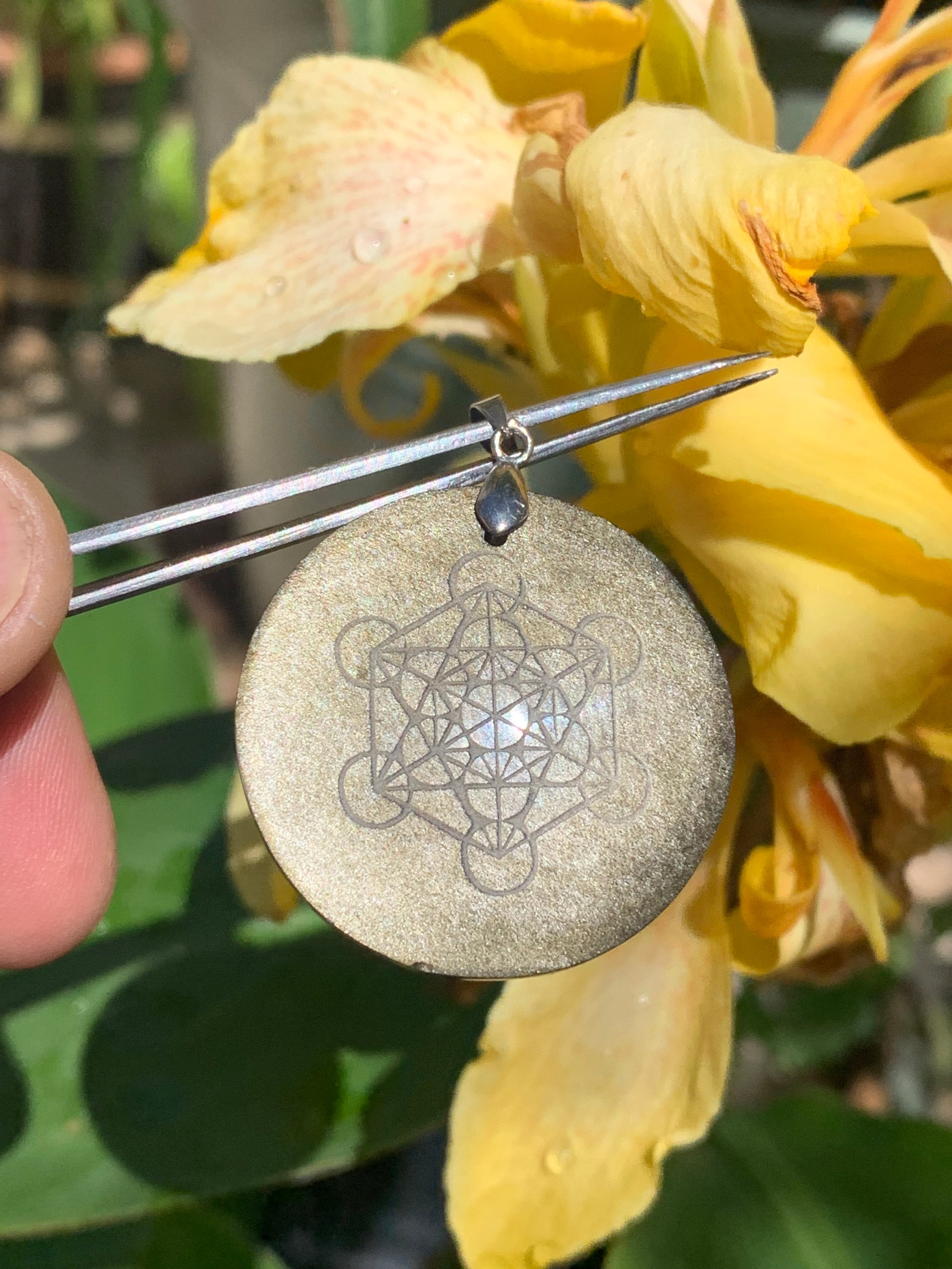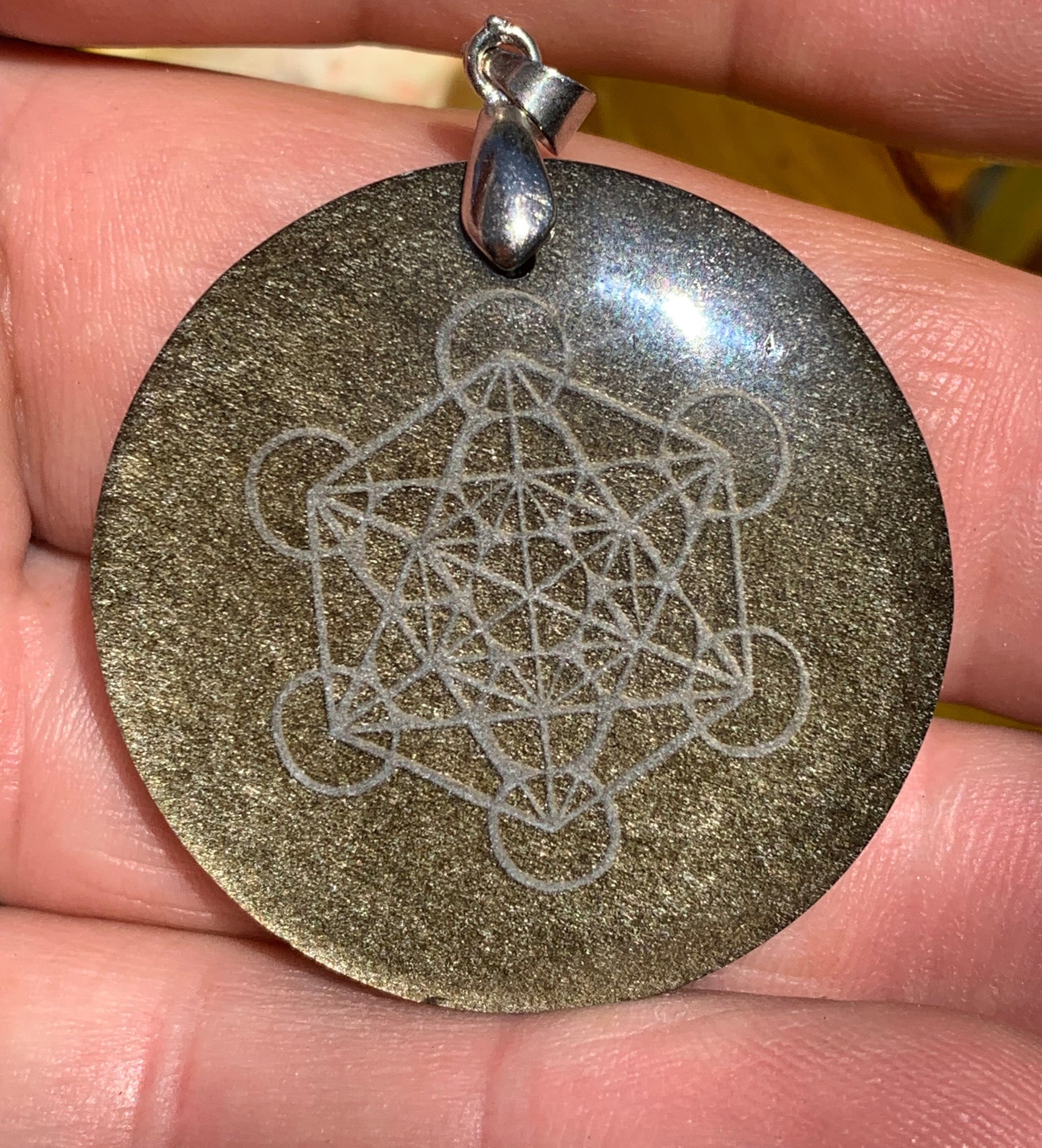Obsidienne dorée, pendentif de 'Metatron', de 45mm de hauteur x 36 de largeur x 7 d'épaisseur, fait en France. Vendu avec cordon réglable de couleur noire offert !