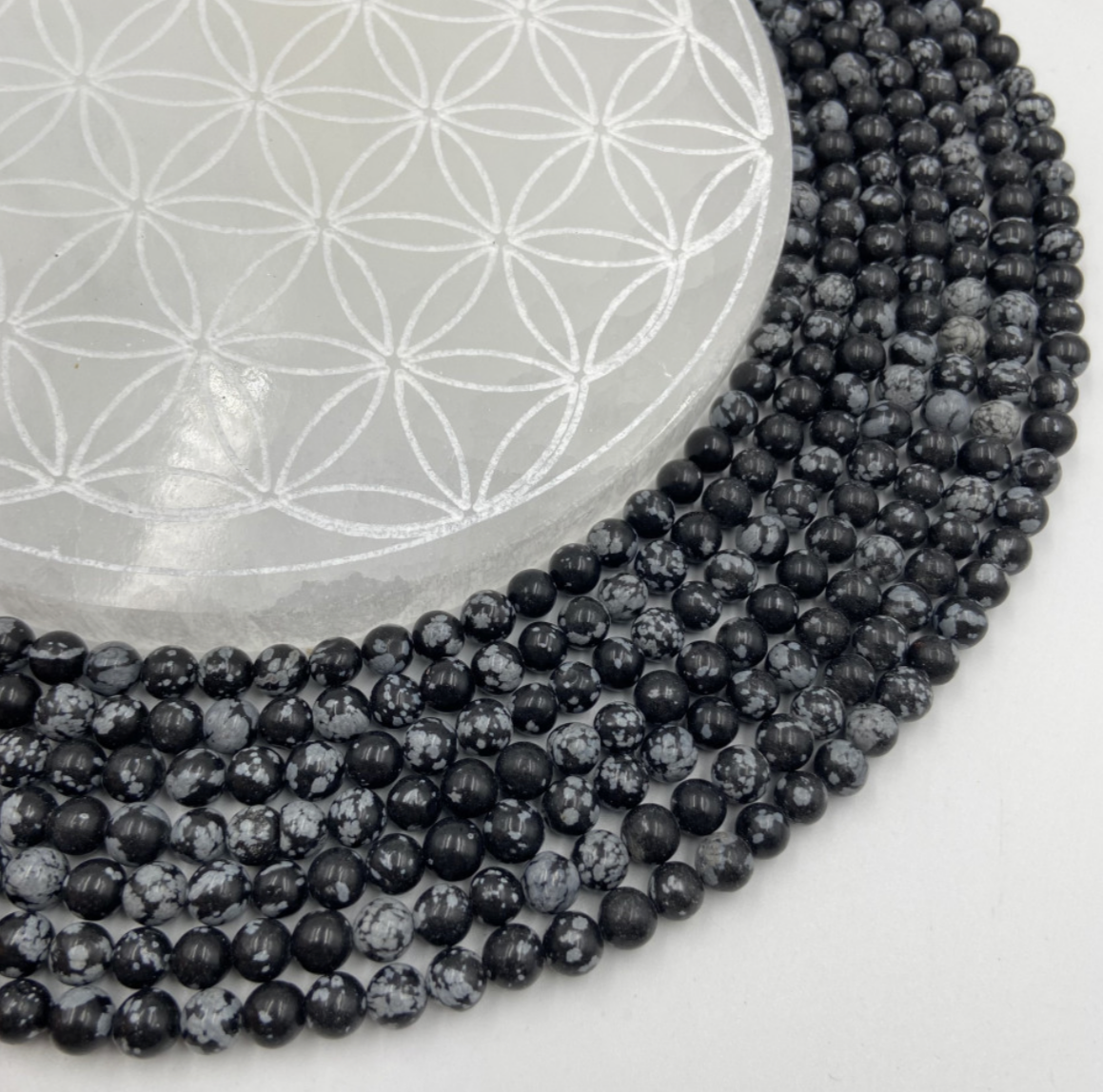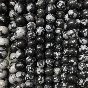 💎 Type de perle : Obsidienne Flocon de Neige/ Mouchetée - Qualité AA à AAA - Finition 'ronde', polie et brillante