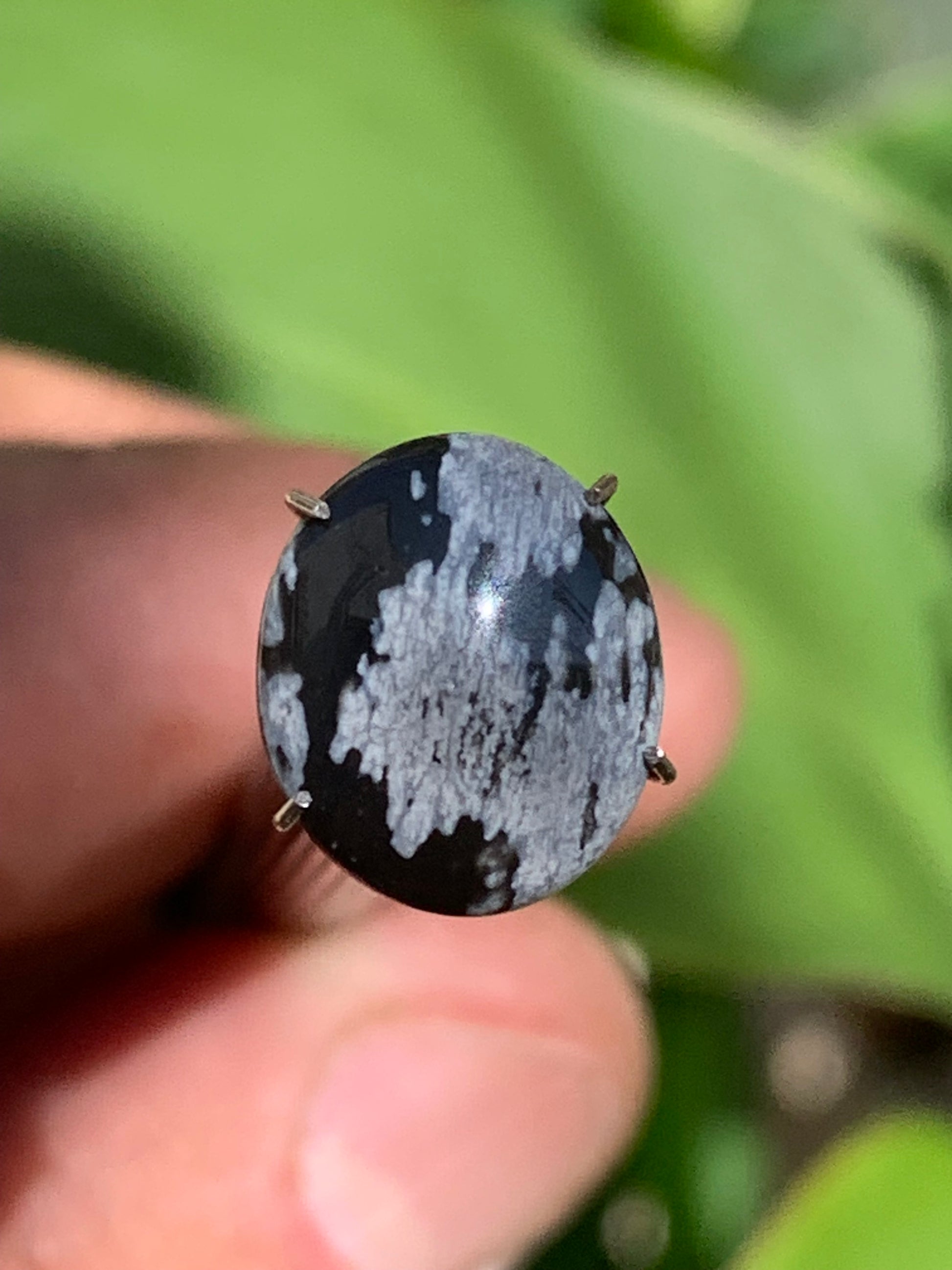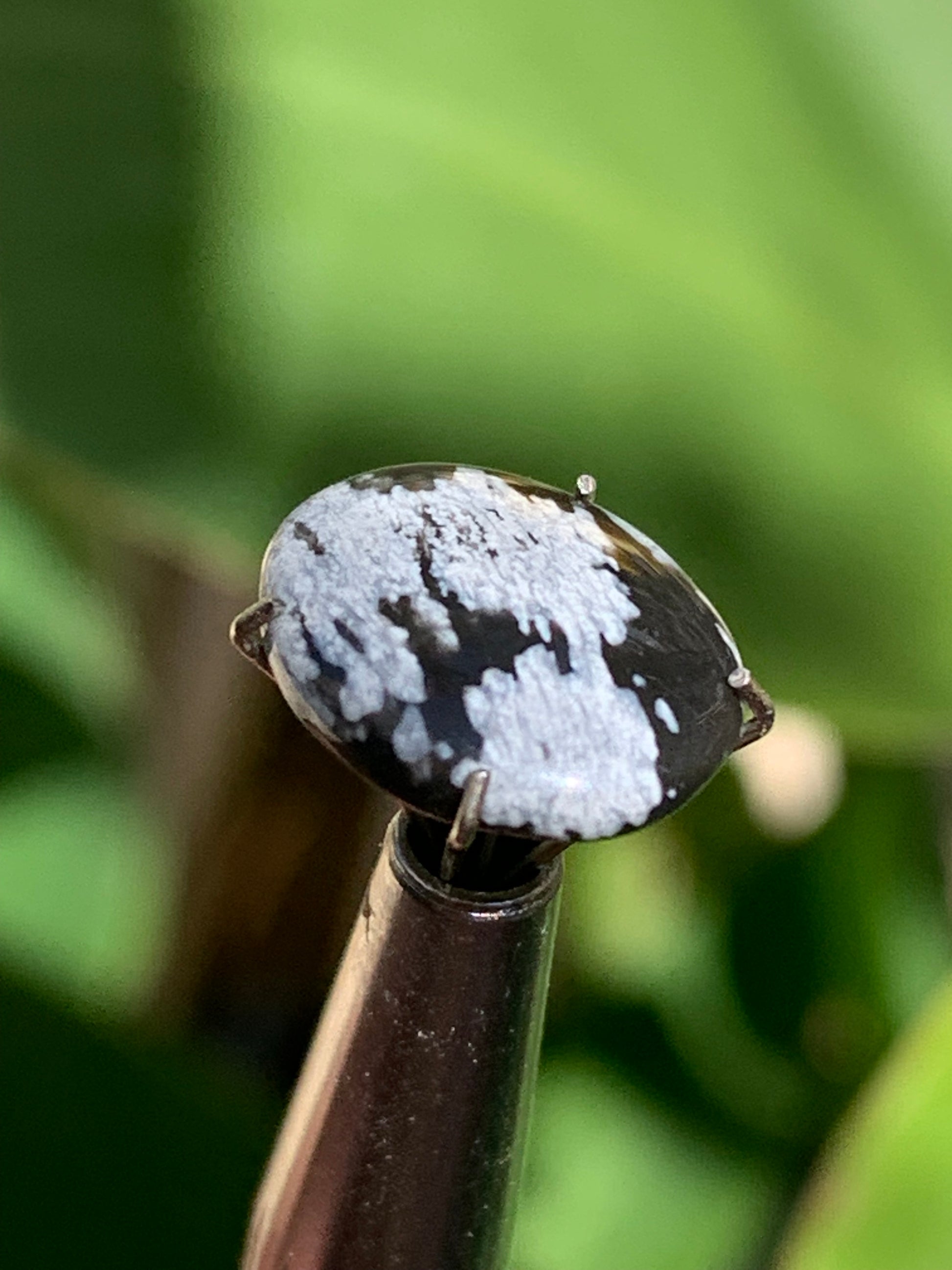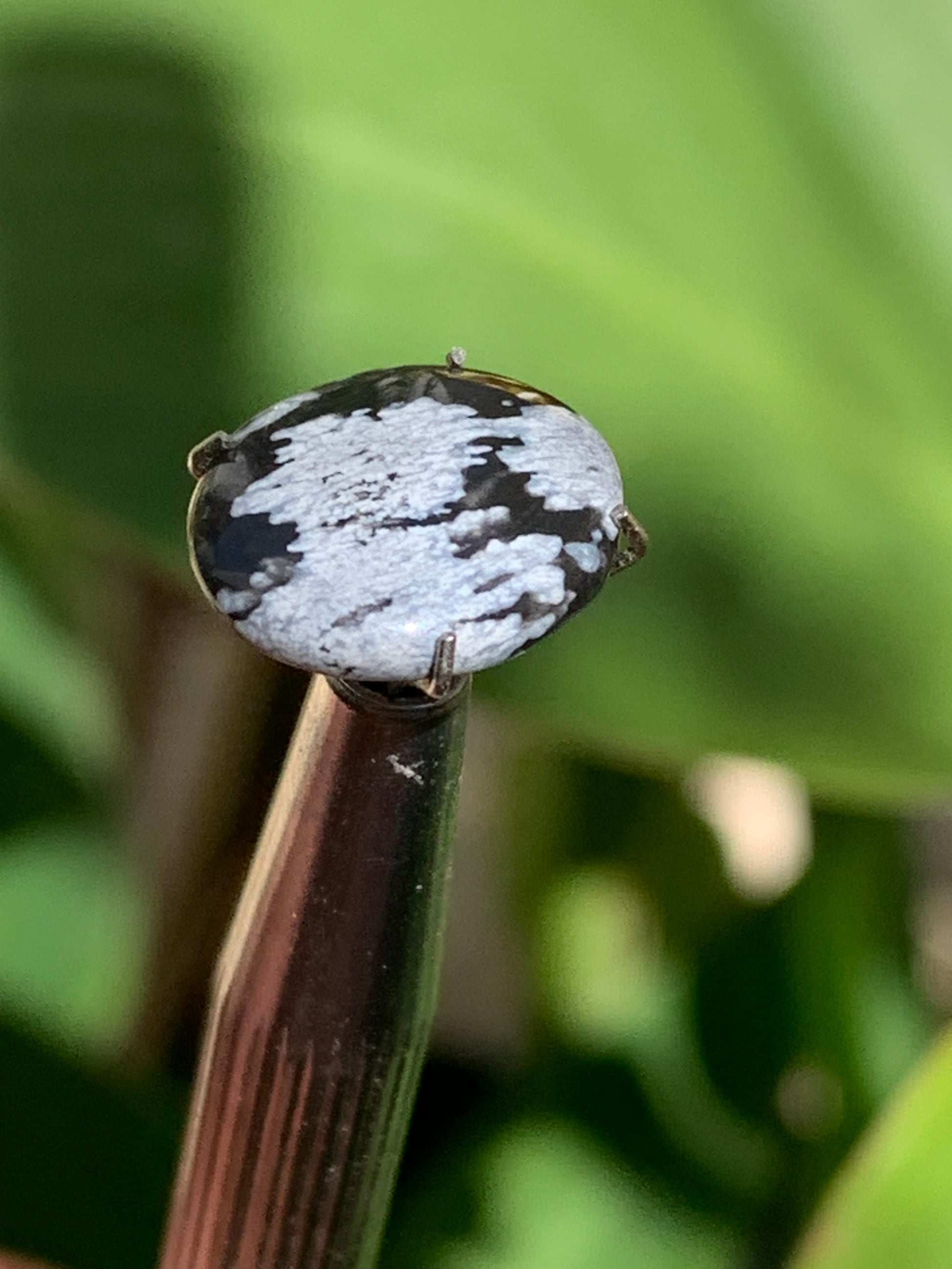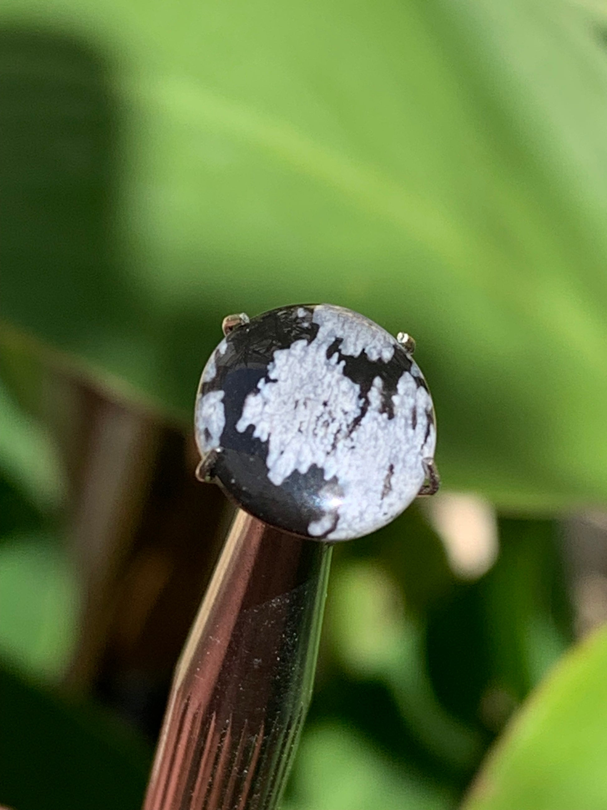 Obsidienne neige, cabochon de 13mm x11 x3 - 0,6 grammes/ 3 carats. Parfait en bijouterie, collection ,exposition...