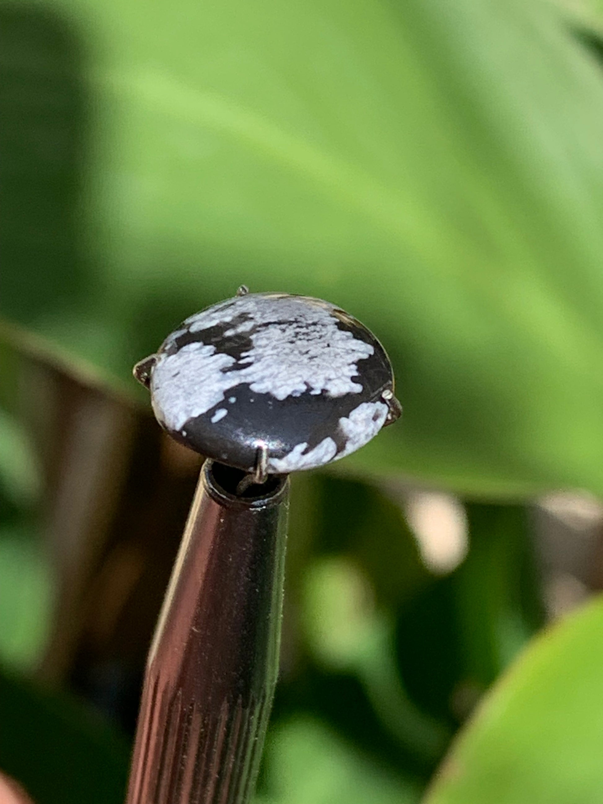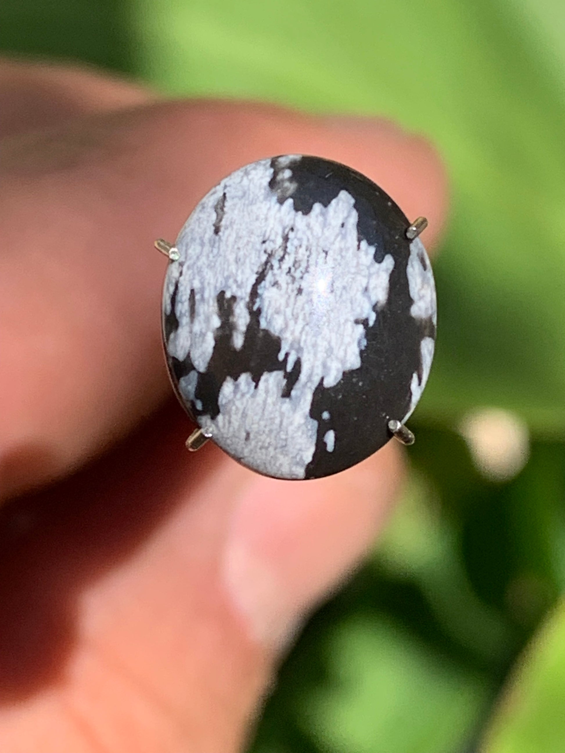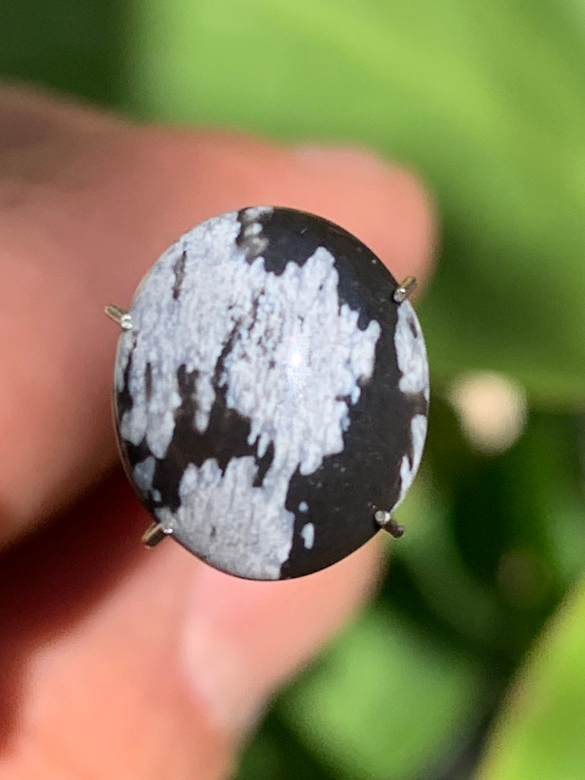 Obsidienne neige, cabochon de 13mm x11 x3 - 0,6 grammes/ 3 carats. Parfait en bijouterie, collection ,exposition...
