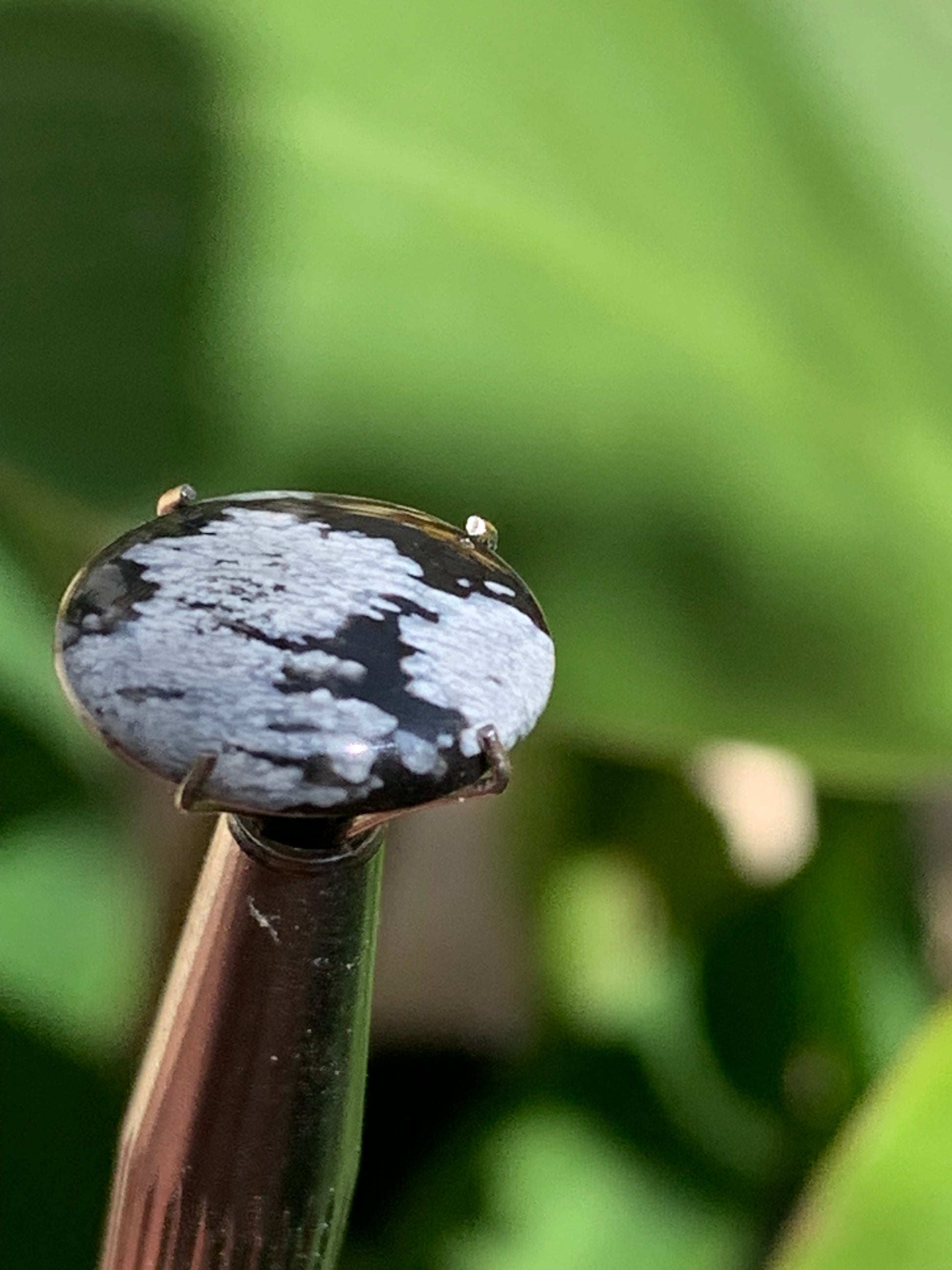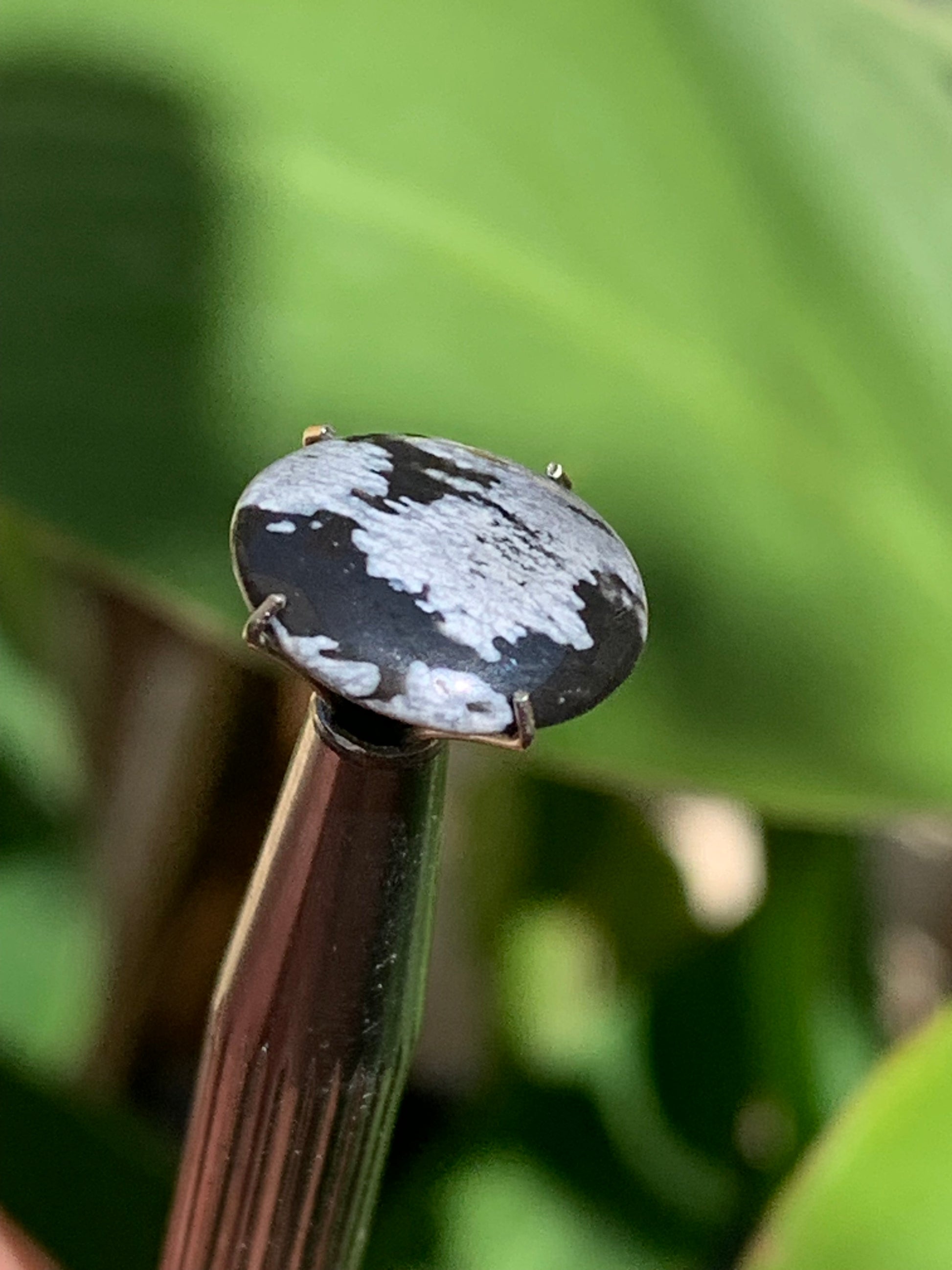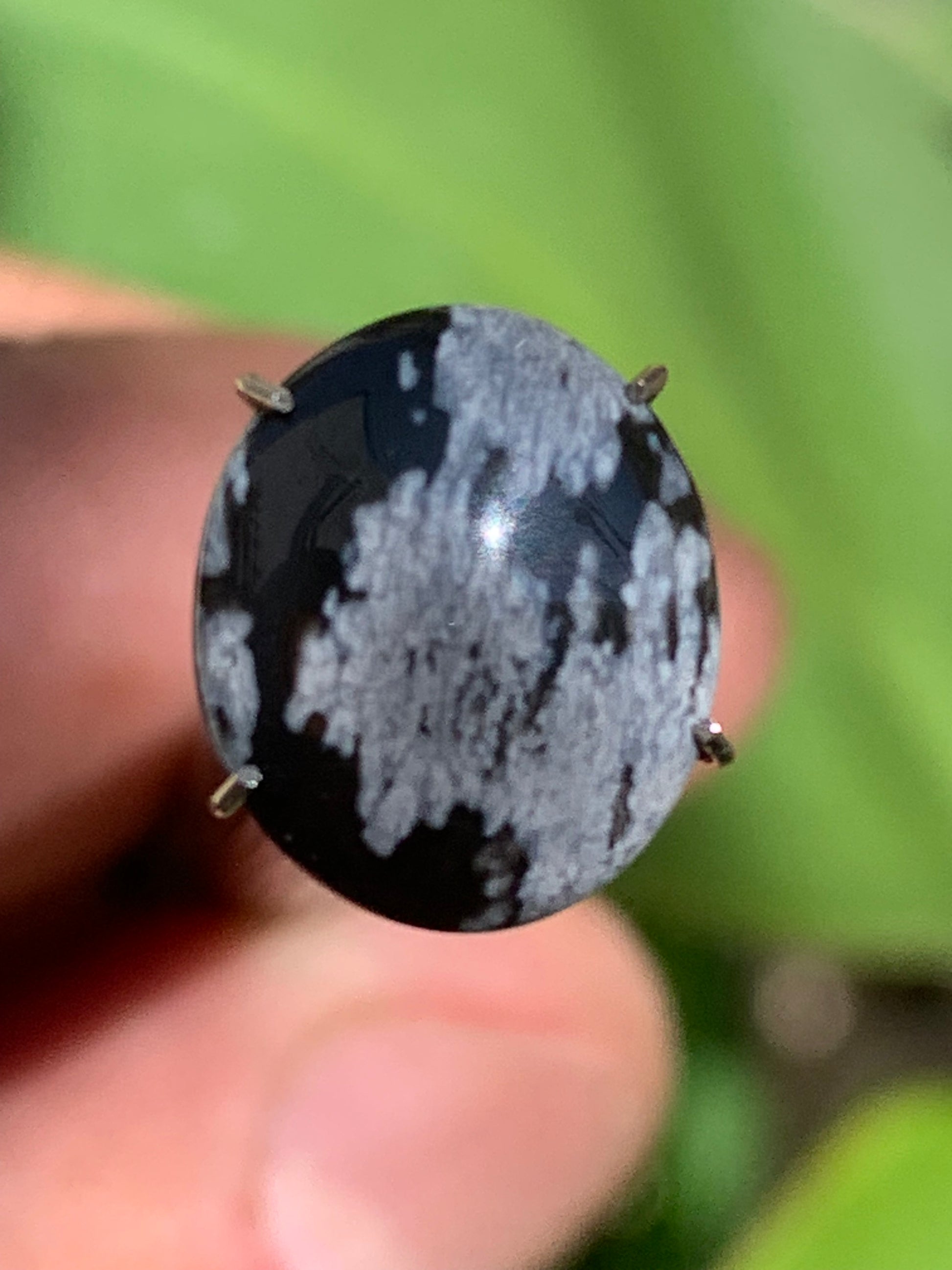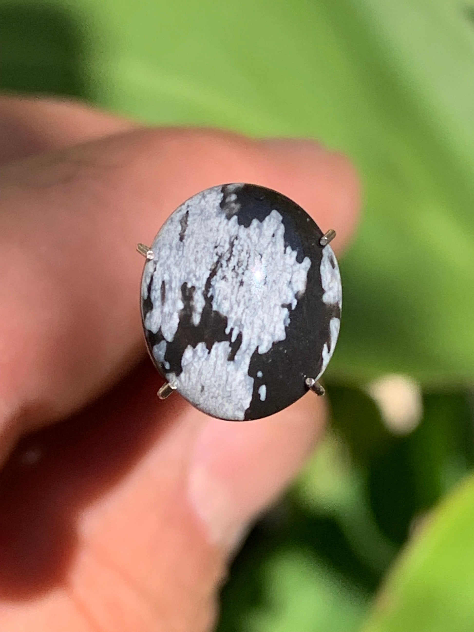 Obsidienne neige, cabochon de 13mm x11 x3 - 0,6 grammes/ 3 carats. Parfait en bijouterie, collection ,exposition...