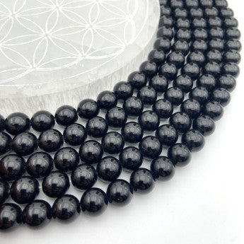 Obsidienne noire, perles rondes de 6, 8 ou 10 mm. Vendu en fil de perle 38/39 cm, en bracelet de 17 à 21cm, en collier de 45 ou sautoir de 60cm. Qualité AA à AAA, superbes perles, belle pureté, parfait !