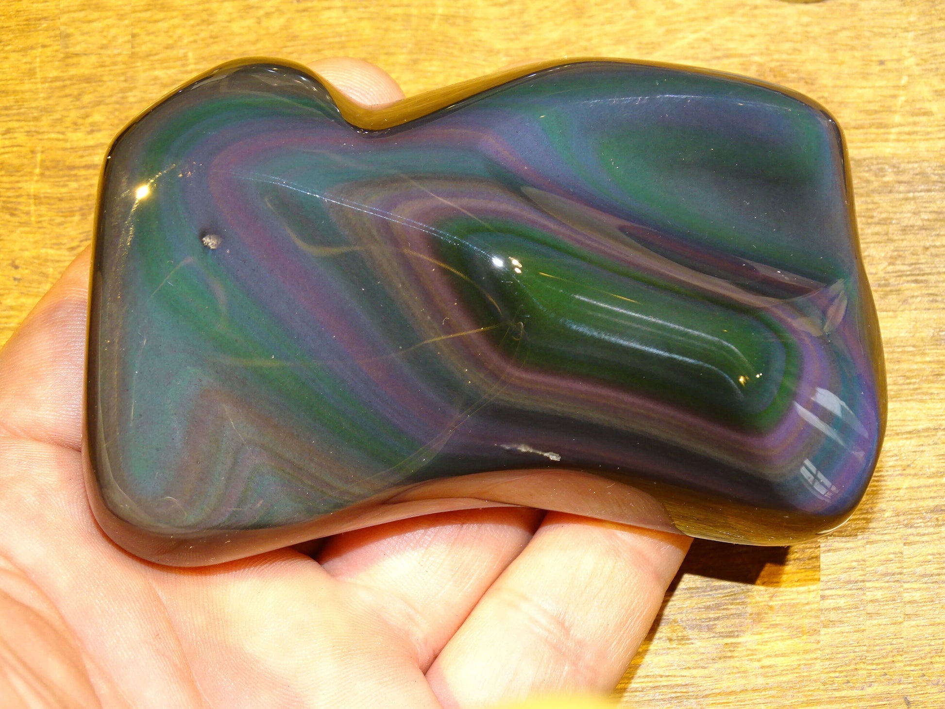 Obsidienne Oeil céleste, de 92x57x30mm - 263,8 grammes. Très belle qualité, des couleurs incroyables, rare !