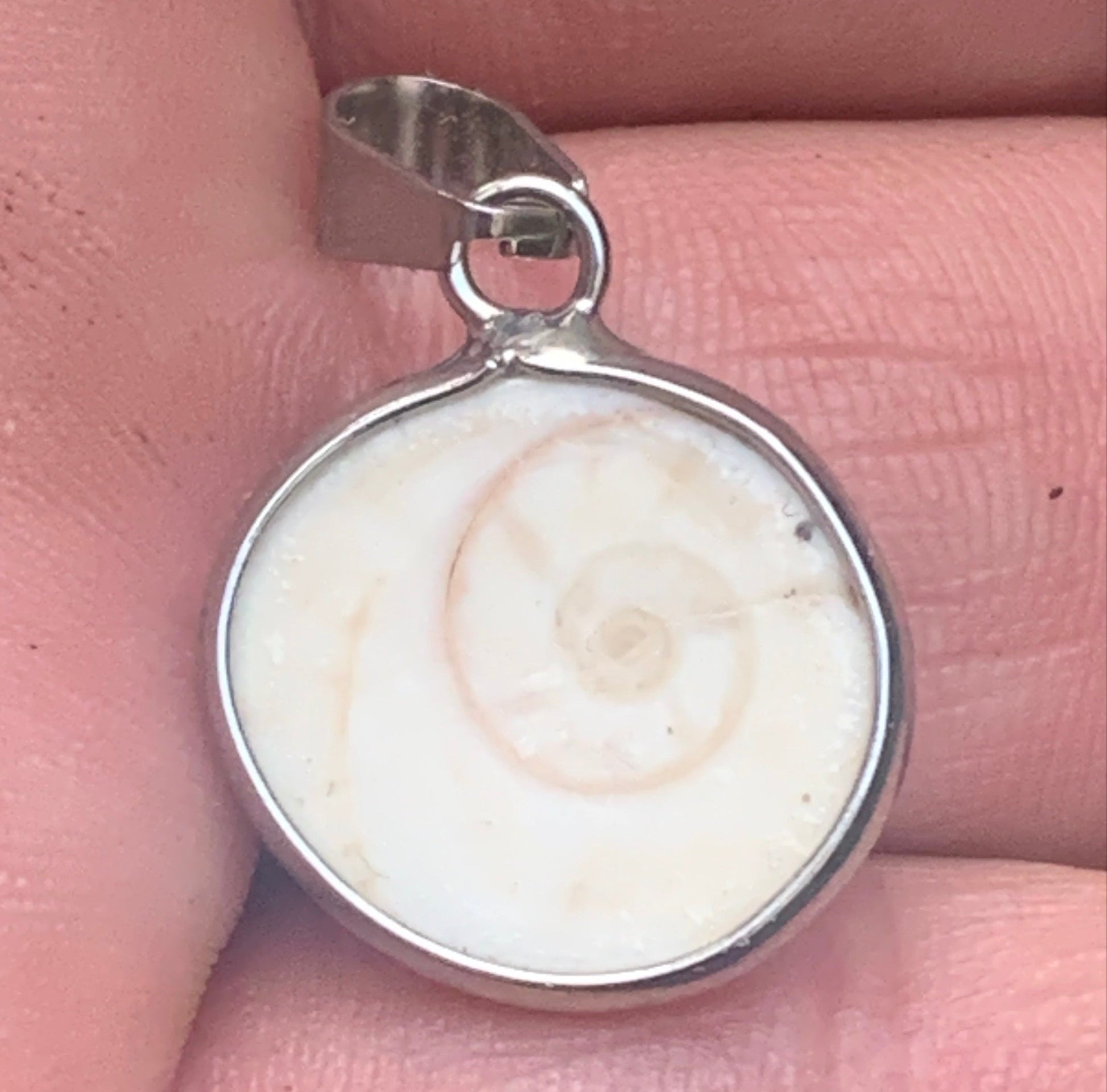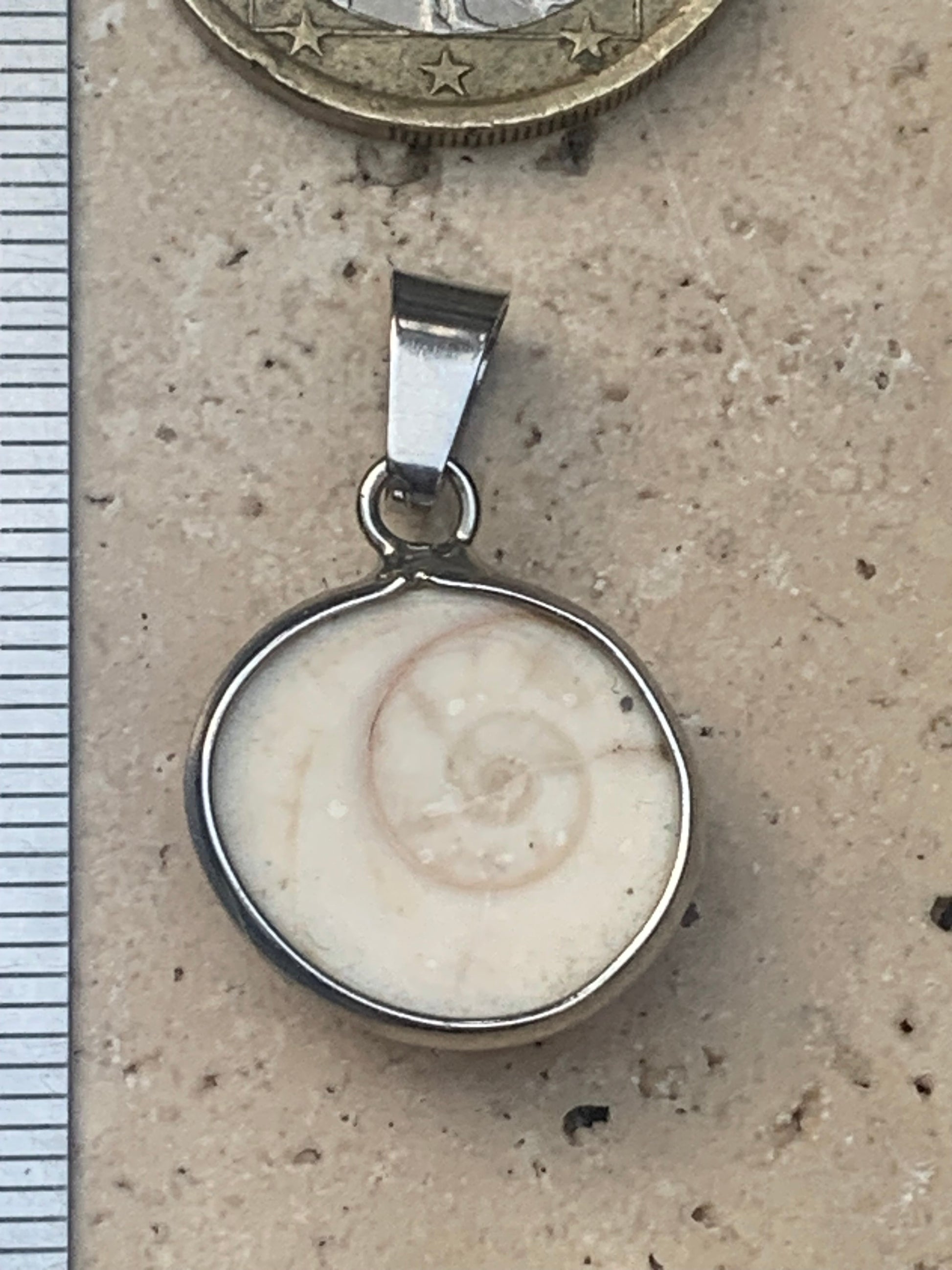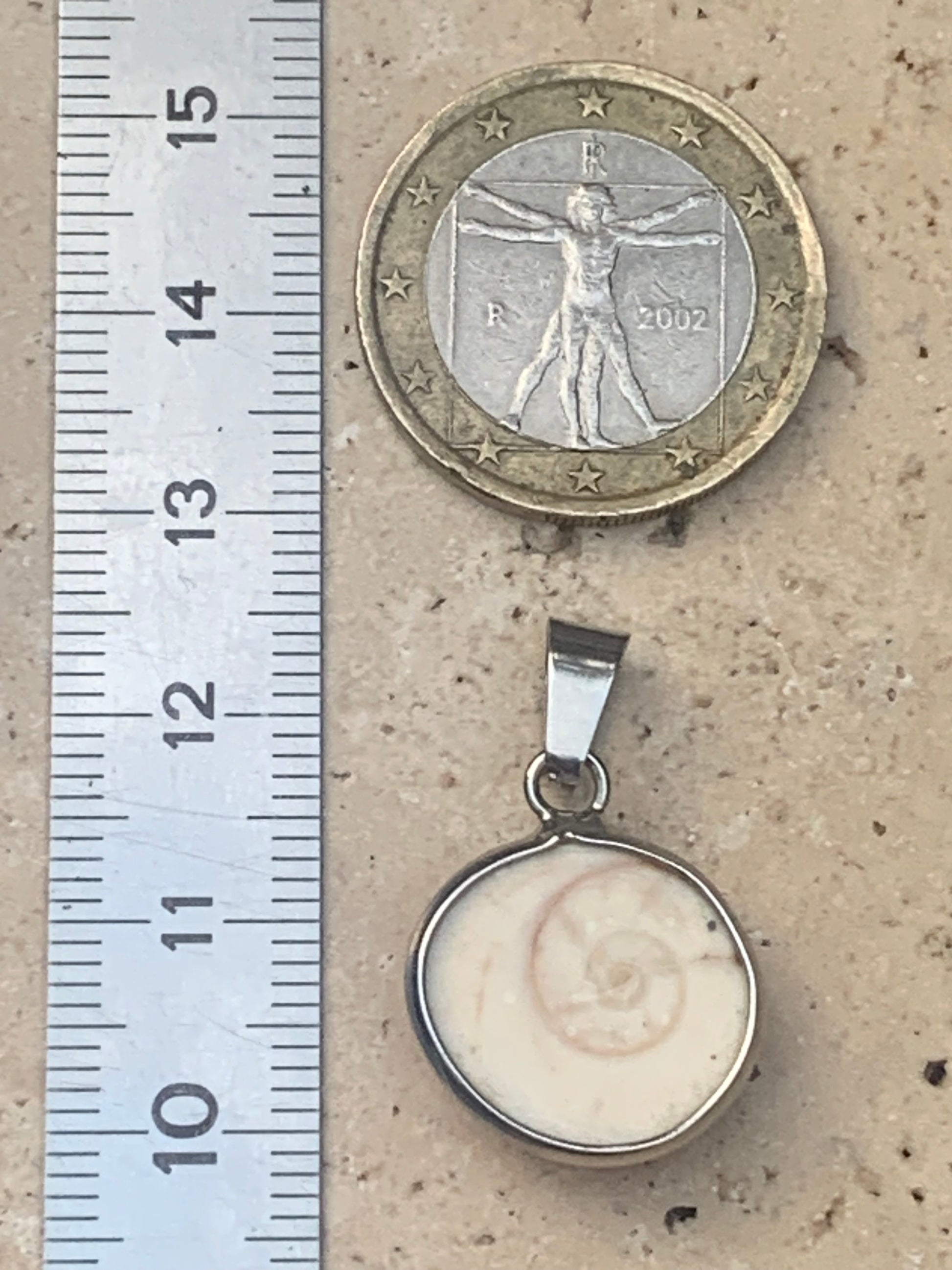 C’est en réalité l’opercule d’un coquillage appelé Turbo Rugueux (Bolma rugosa), un petit mollusque marin. L’opercule est une sorte de petit "couvercle" calcaire que l’animal utilise pour refermer sa coquille.