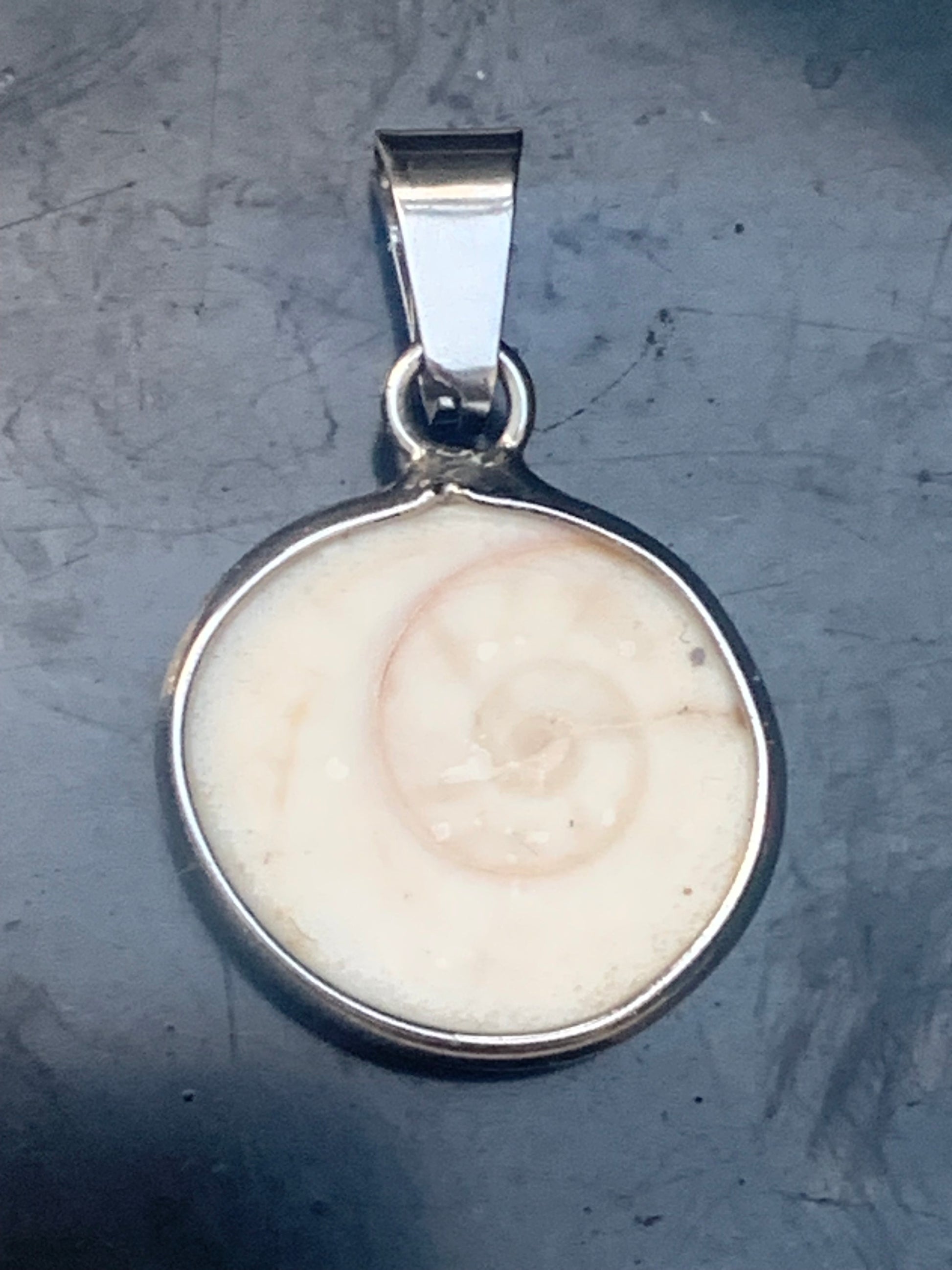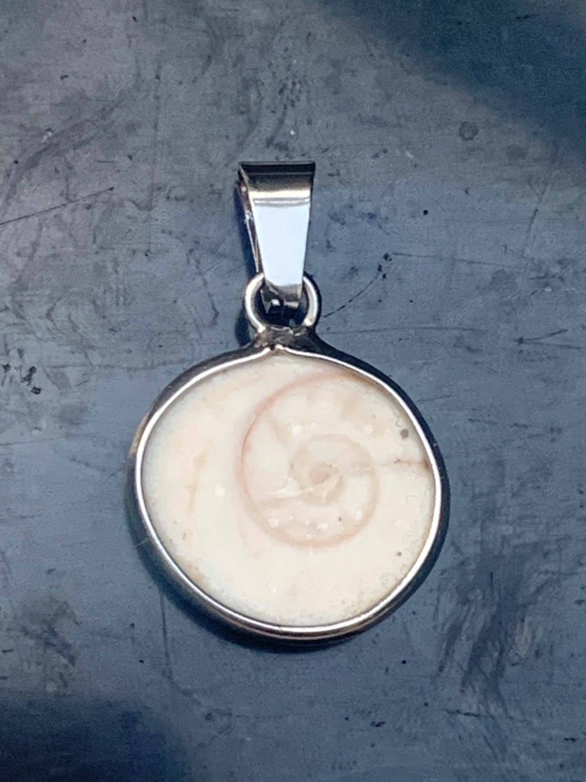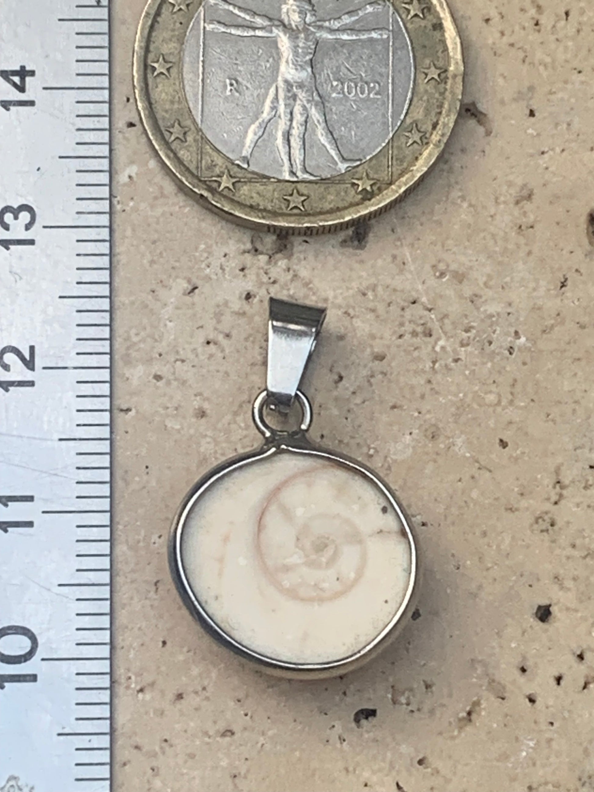 C’est en réalité l’opercule d’un coquillage appelé Turbo Rugueux (Bolma rugosa), un petit mollusque marin. L’opercule est une sorte de petit "couvercle" calcaire que l’animal utilise pour refermer sa coquille.