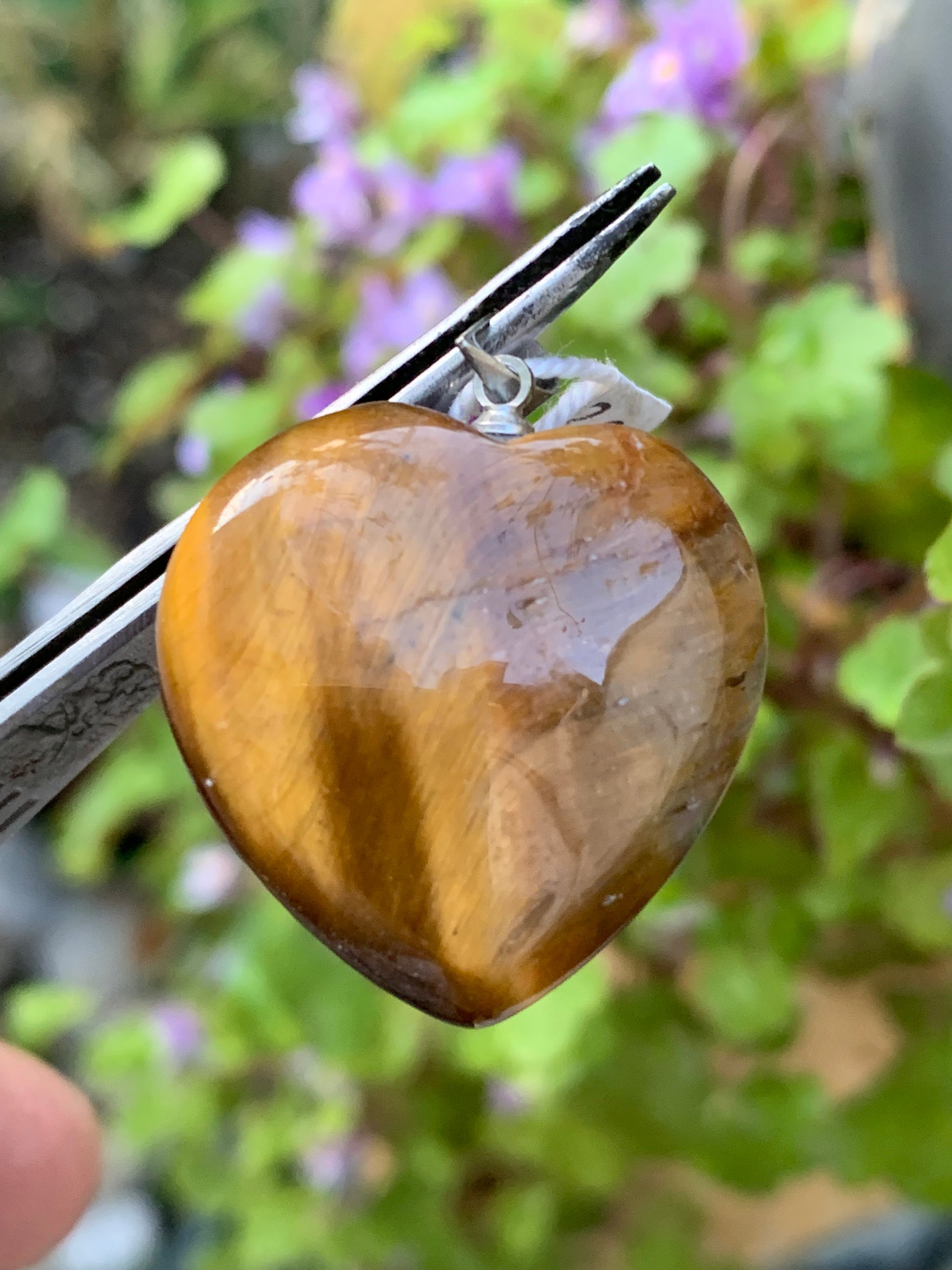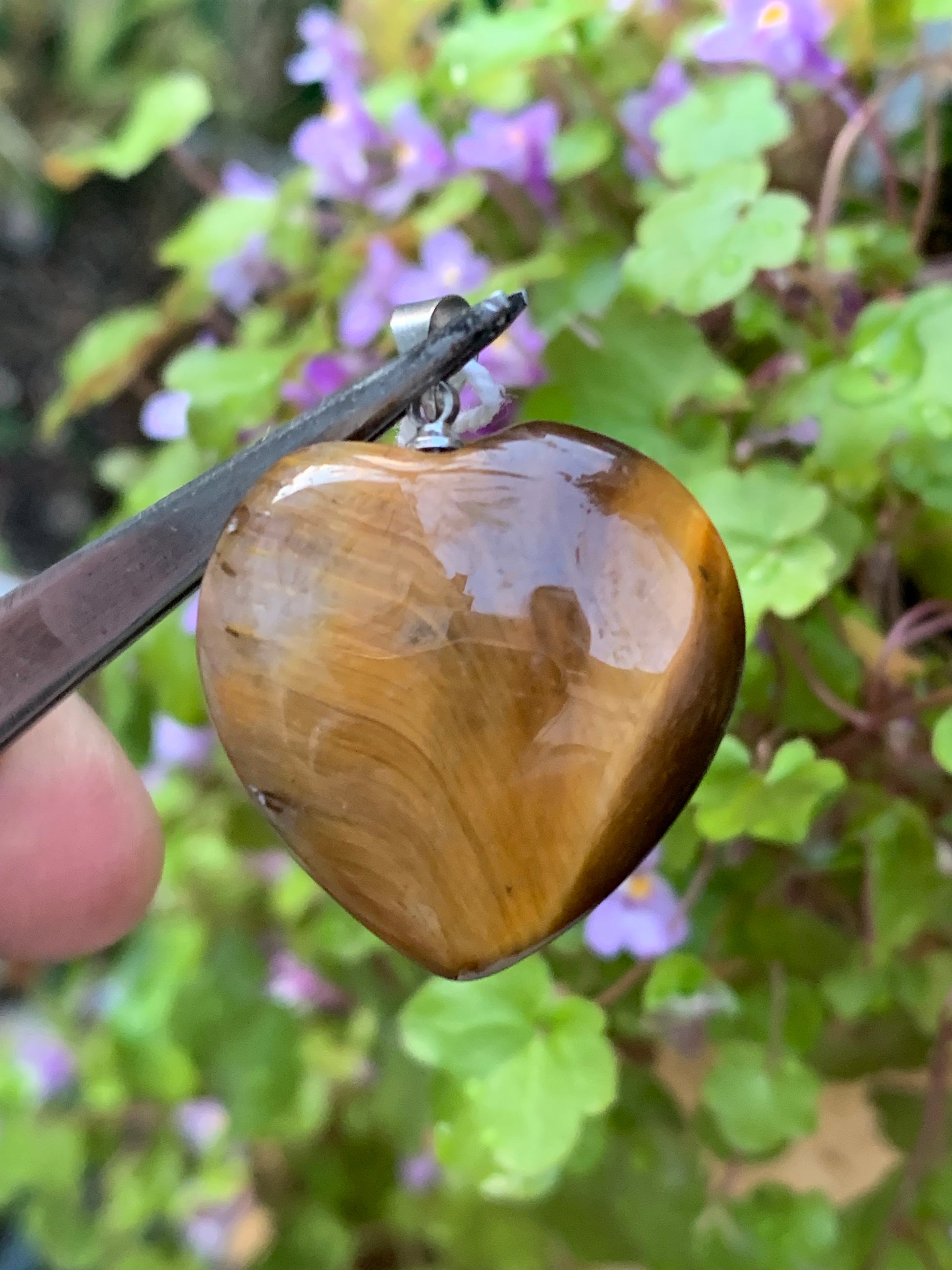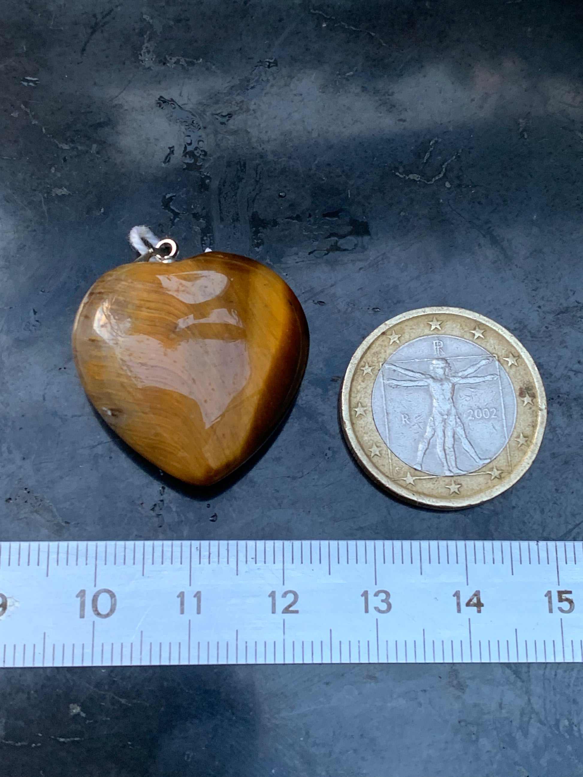 Oeil de tigre, pendentif 'Coeur' en Argent, de 32mm de hauteur x 26 de largeur x 10 d'épaisseur. Vendu avec cordon réglable de couleur noire offert !