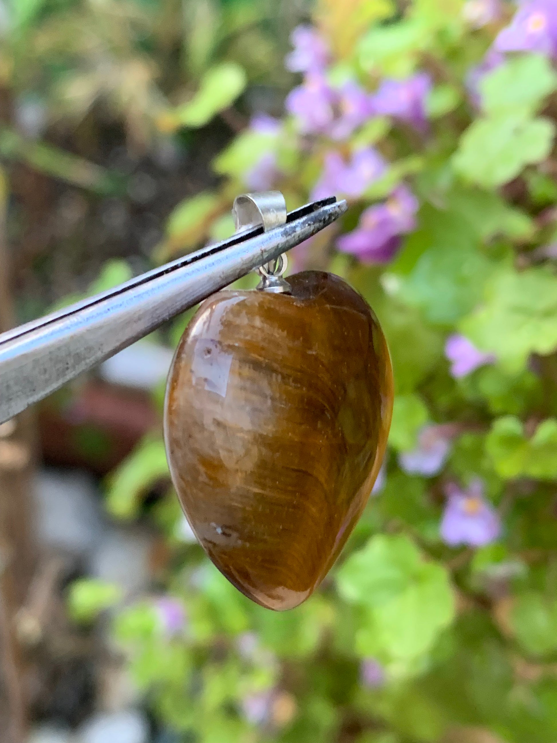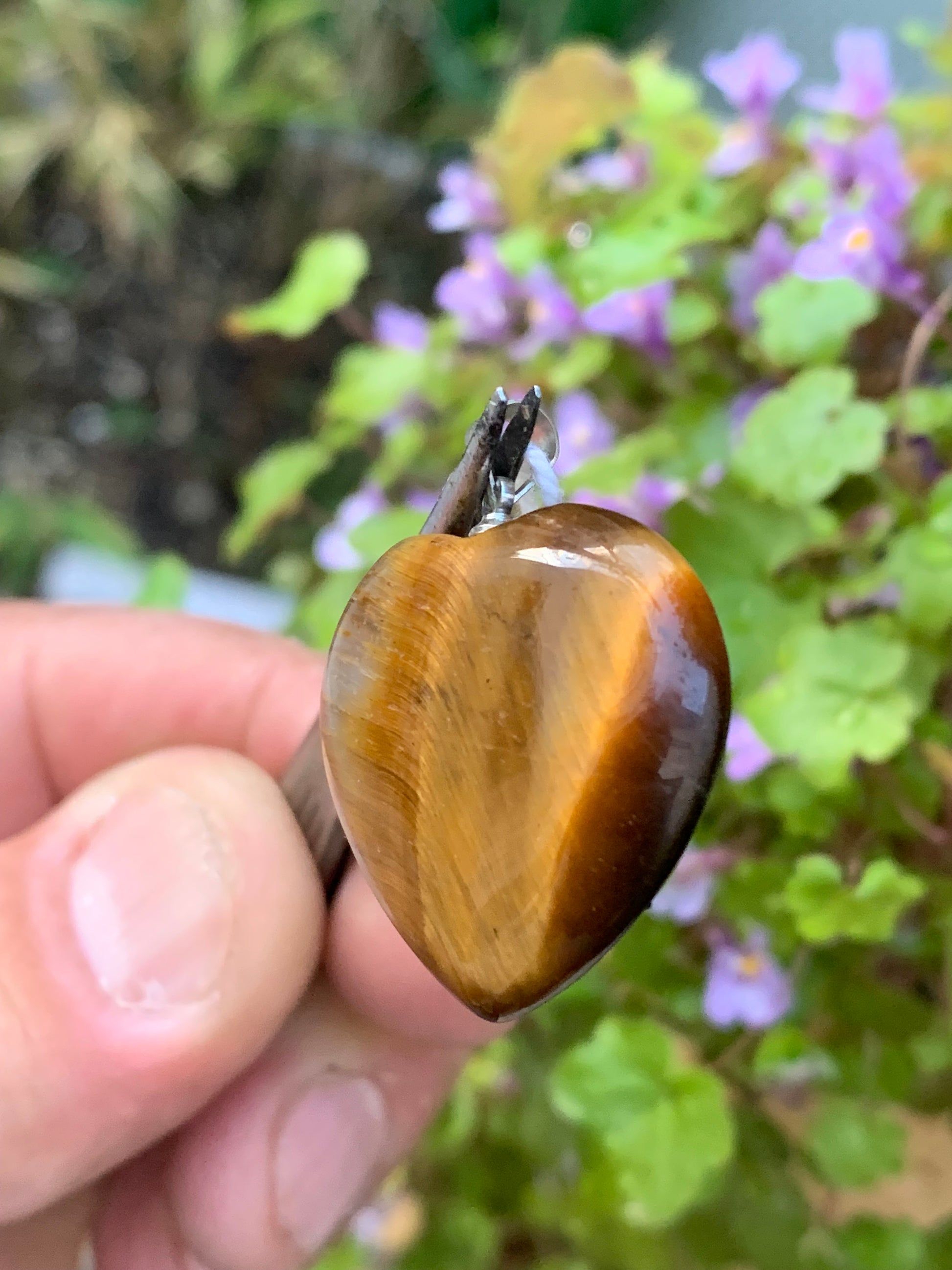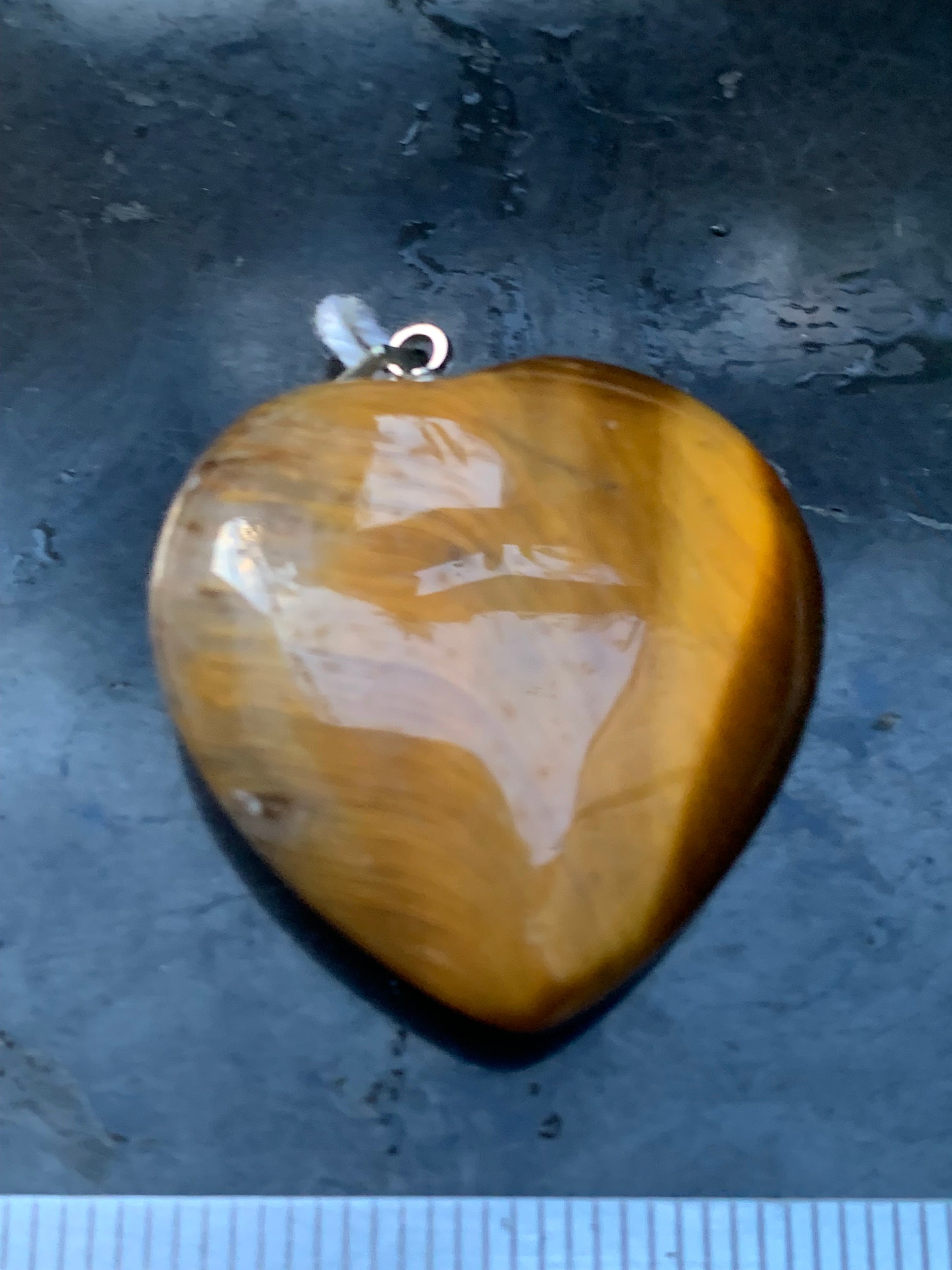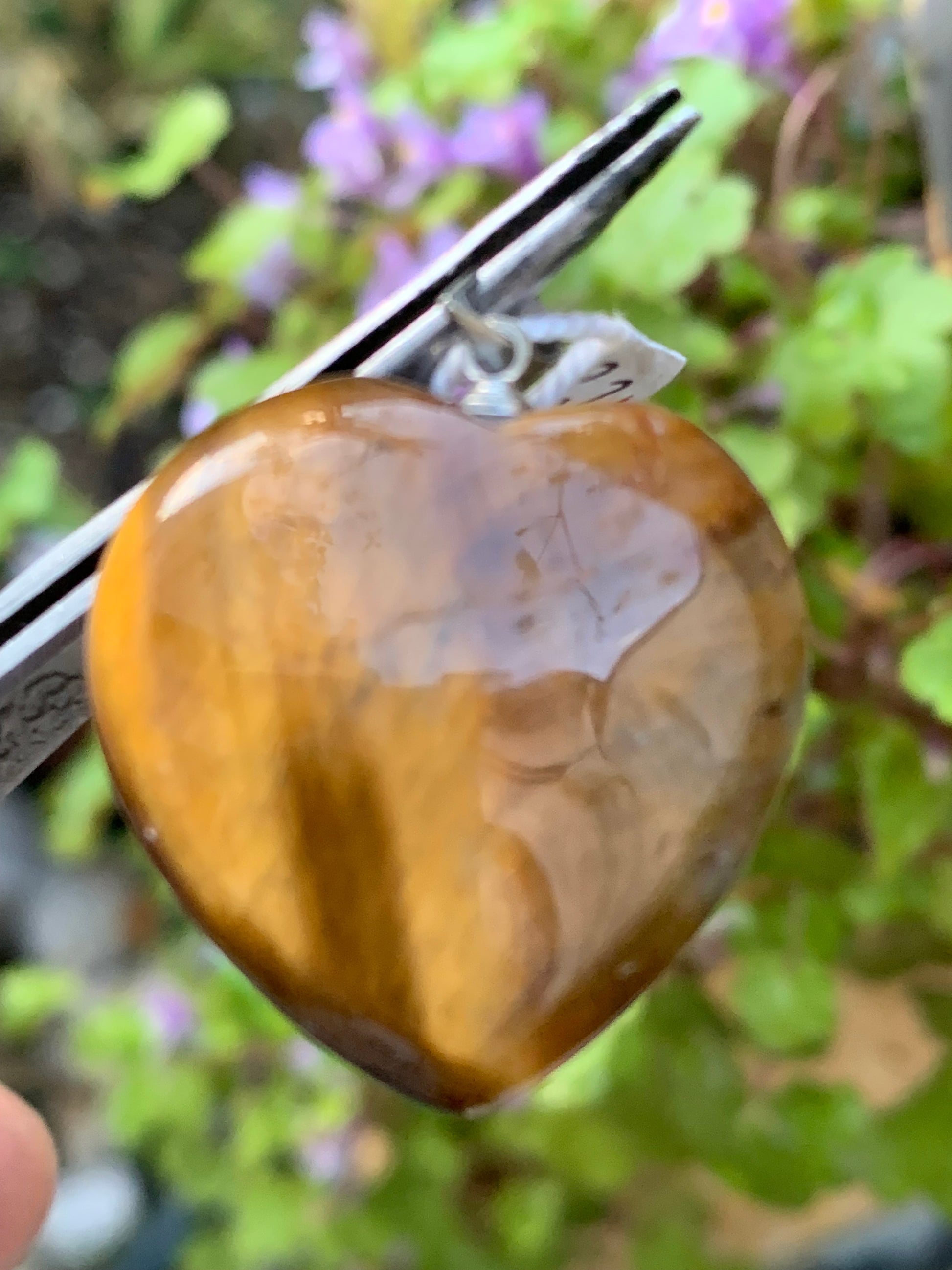 Oeil de tigre, pendentif 'Coeur' en Argent, de 32mm de hauteur x 26 de largeur x 10 d'épaisseur. Vendu avec cordon réglable de couleur noire offert !