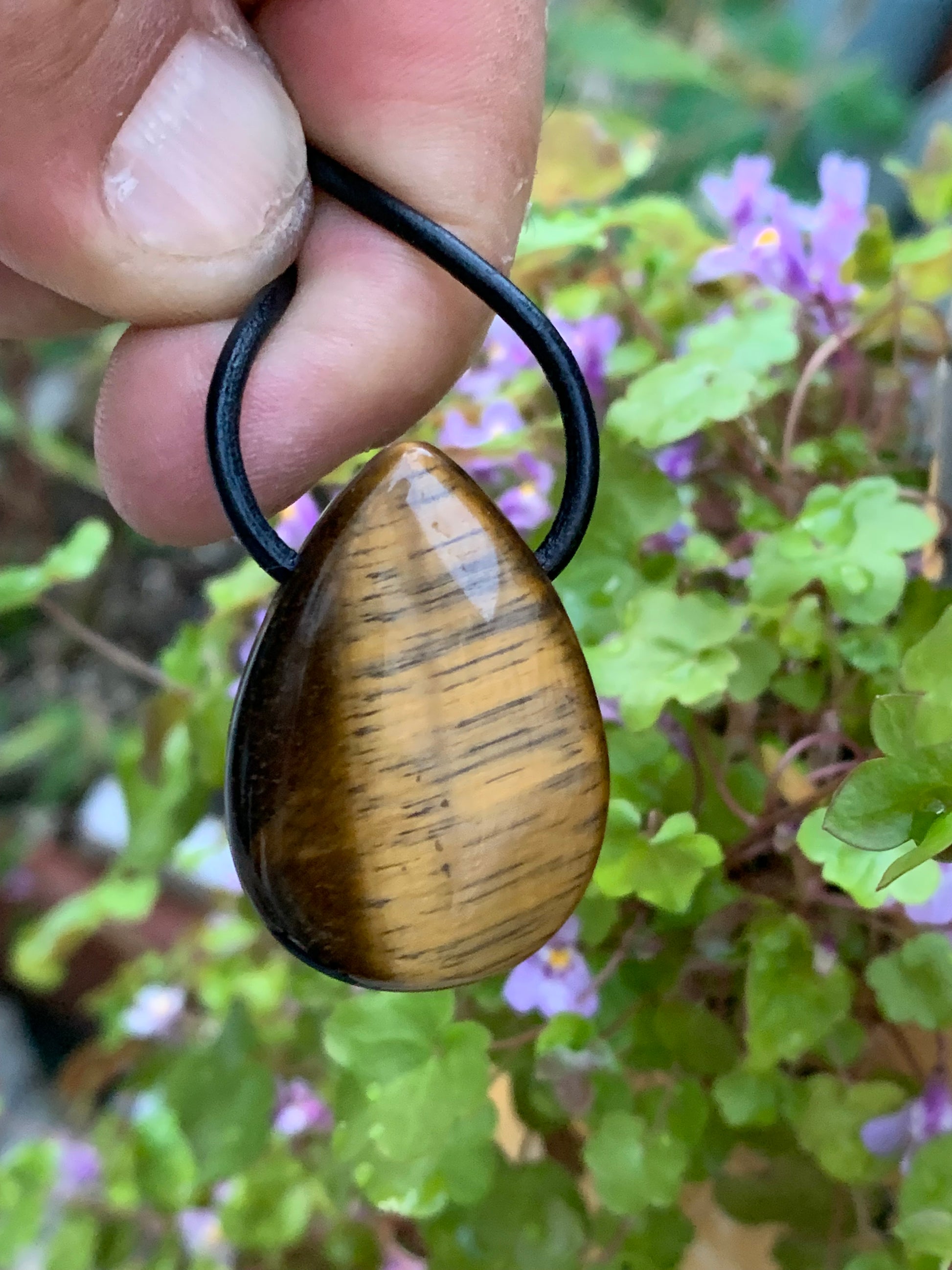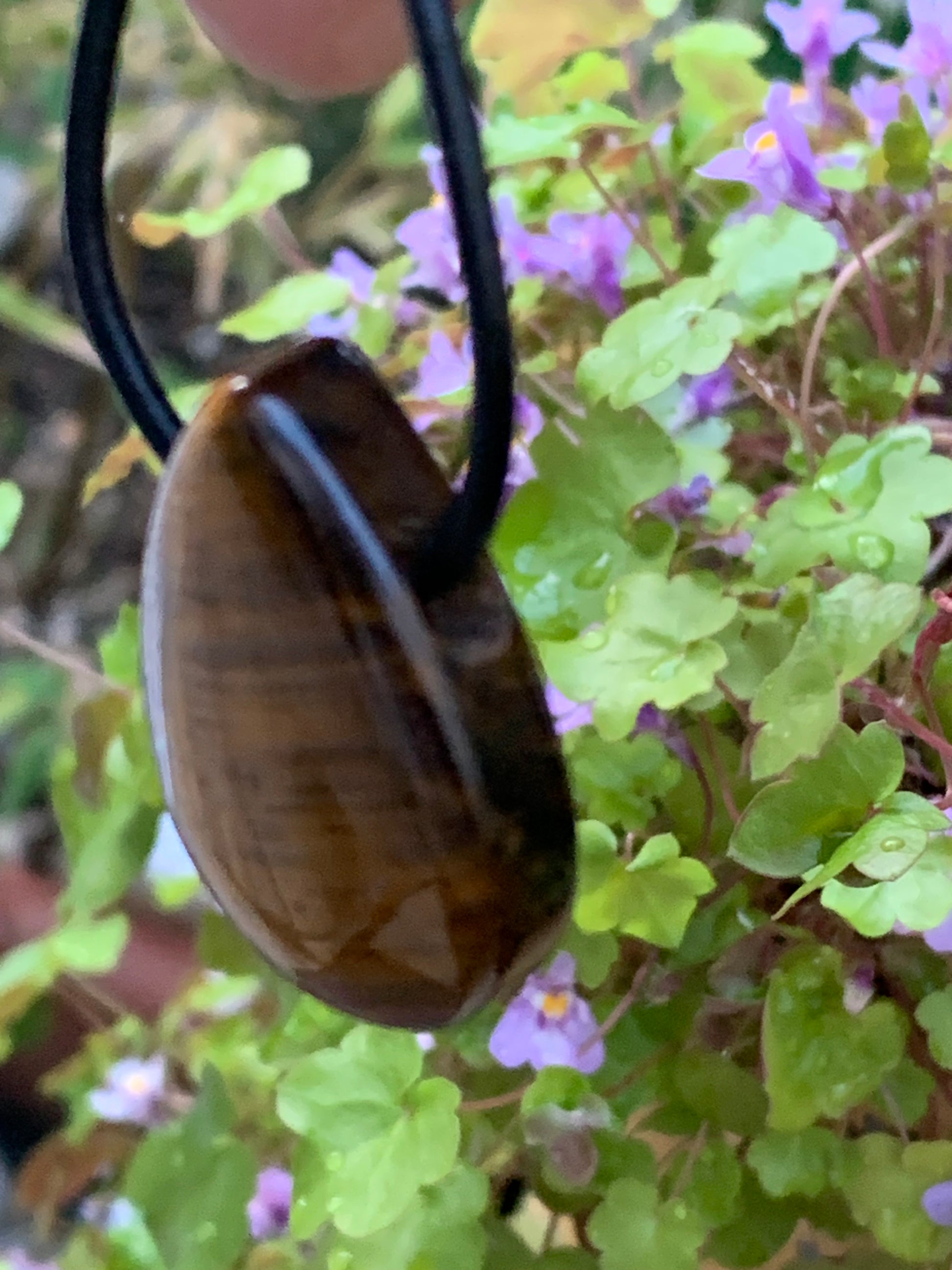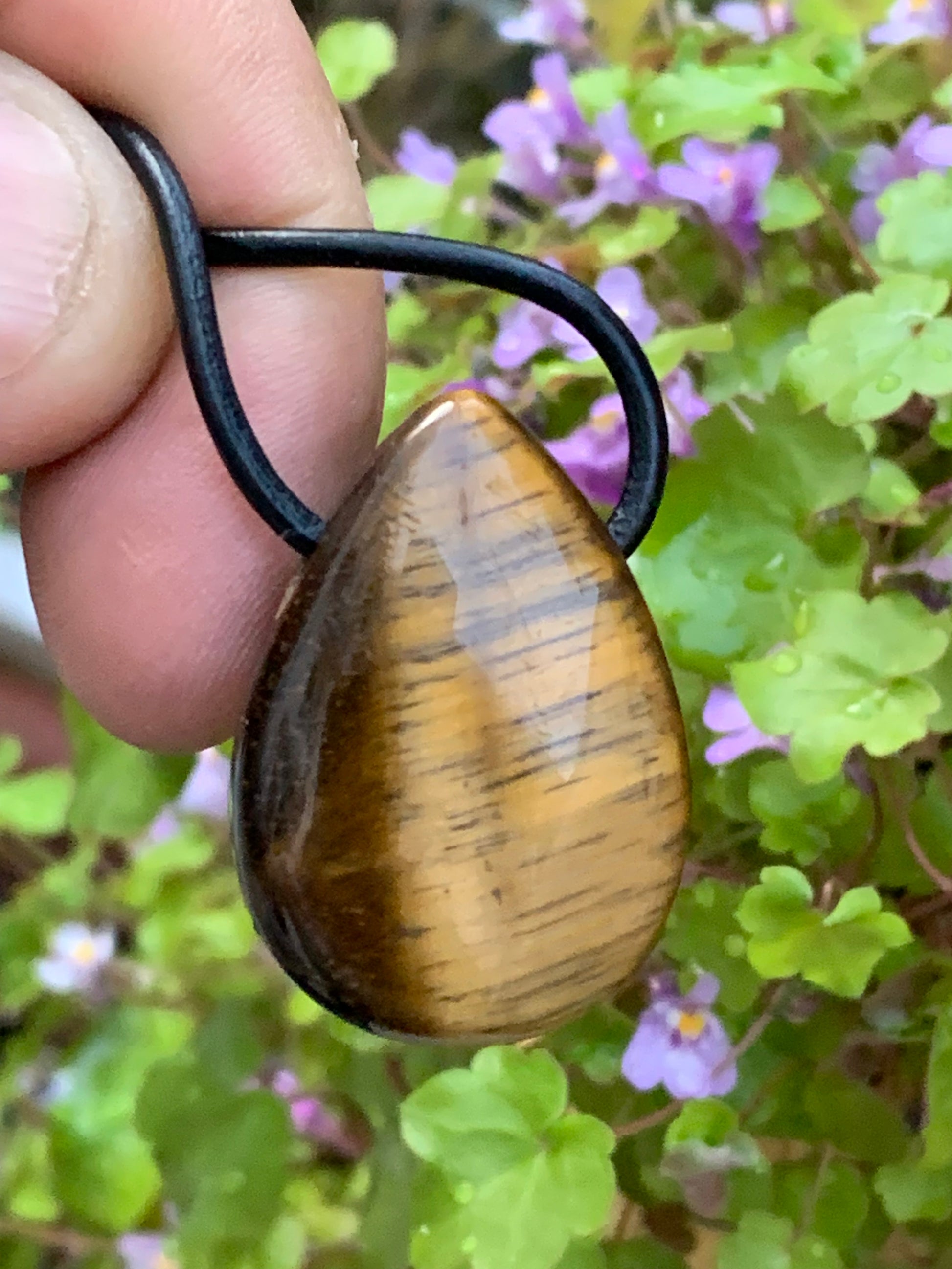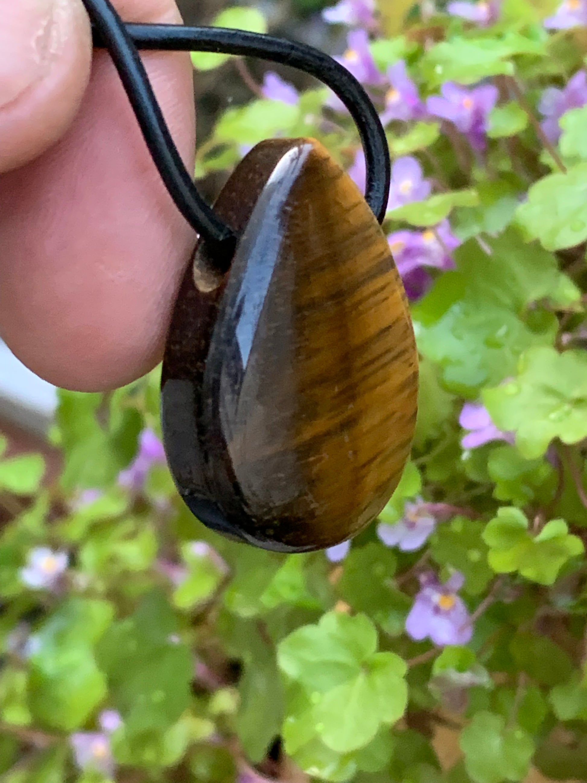 Oeil de tigre, pendentif, de 38 millimètres de hauteur x 24 mm de largeur x 12 millimètres. Vendu avec cordon noir réglable offert !