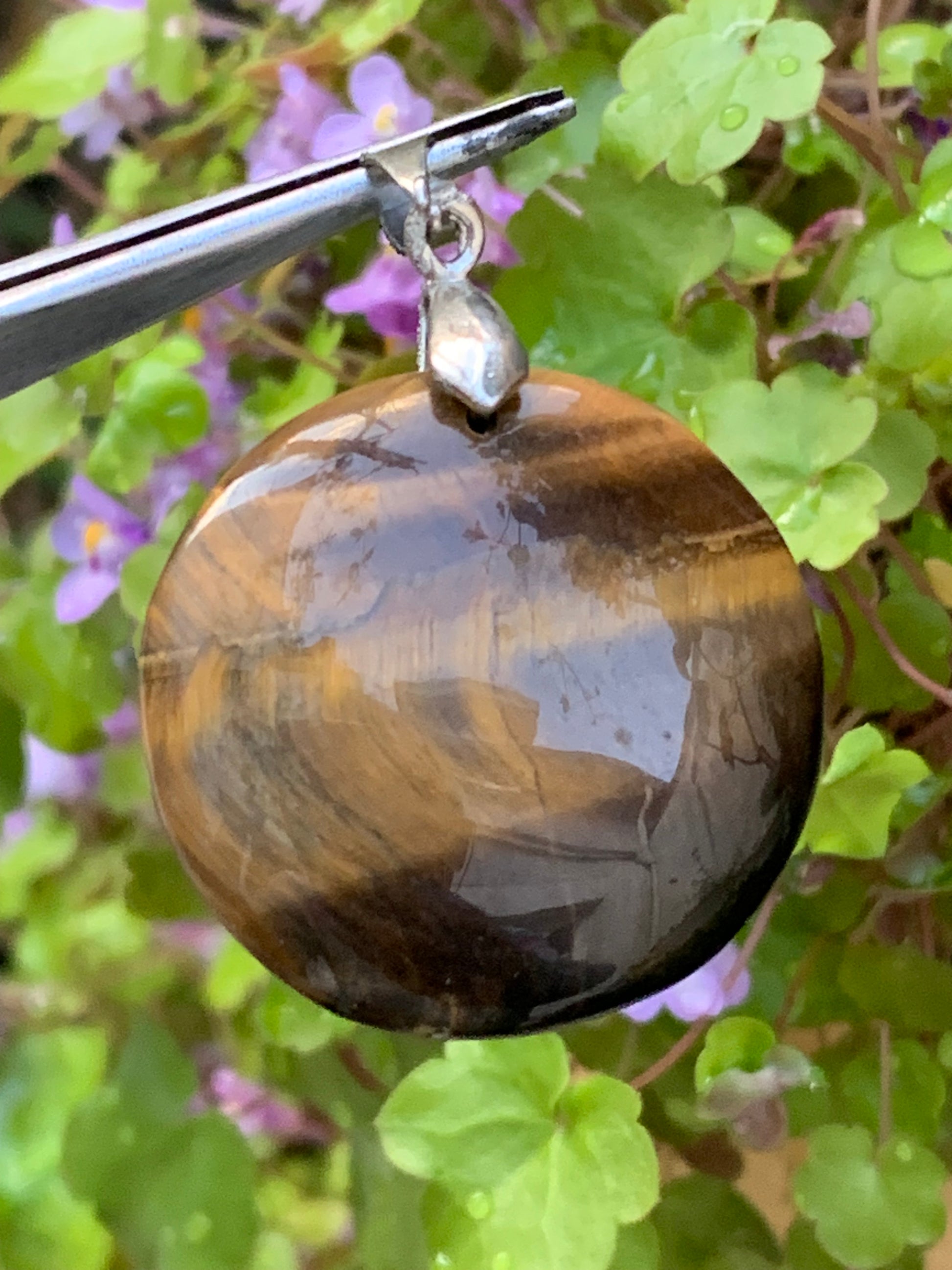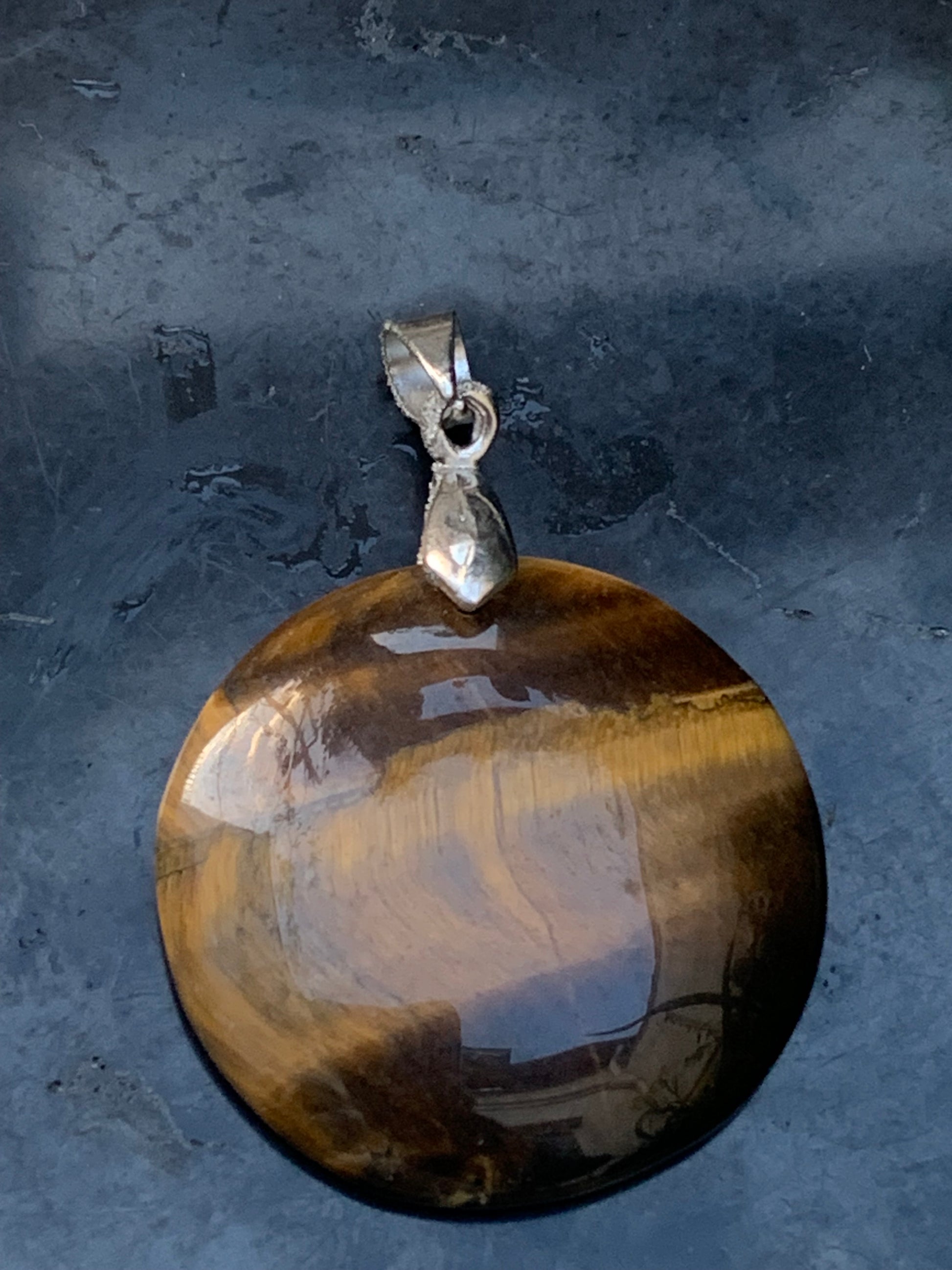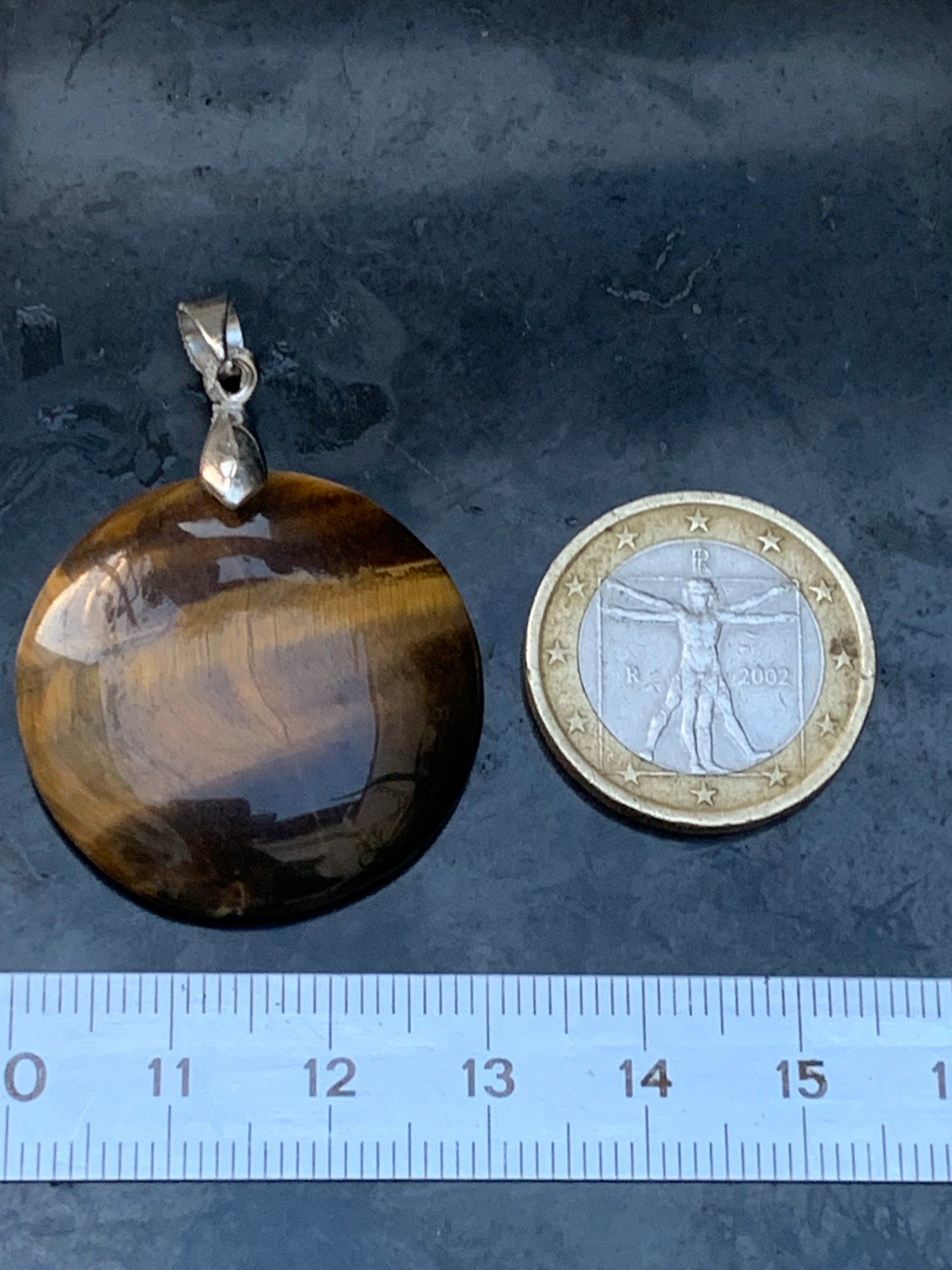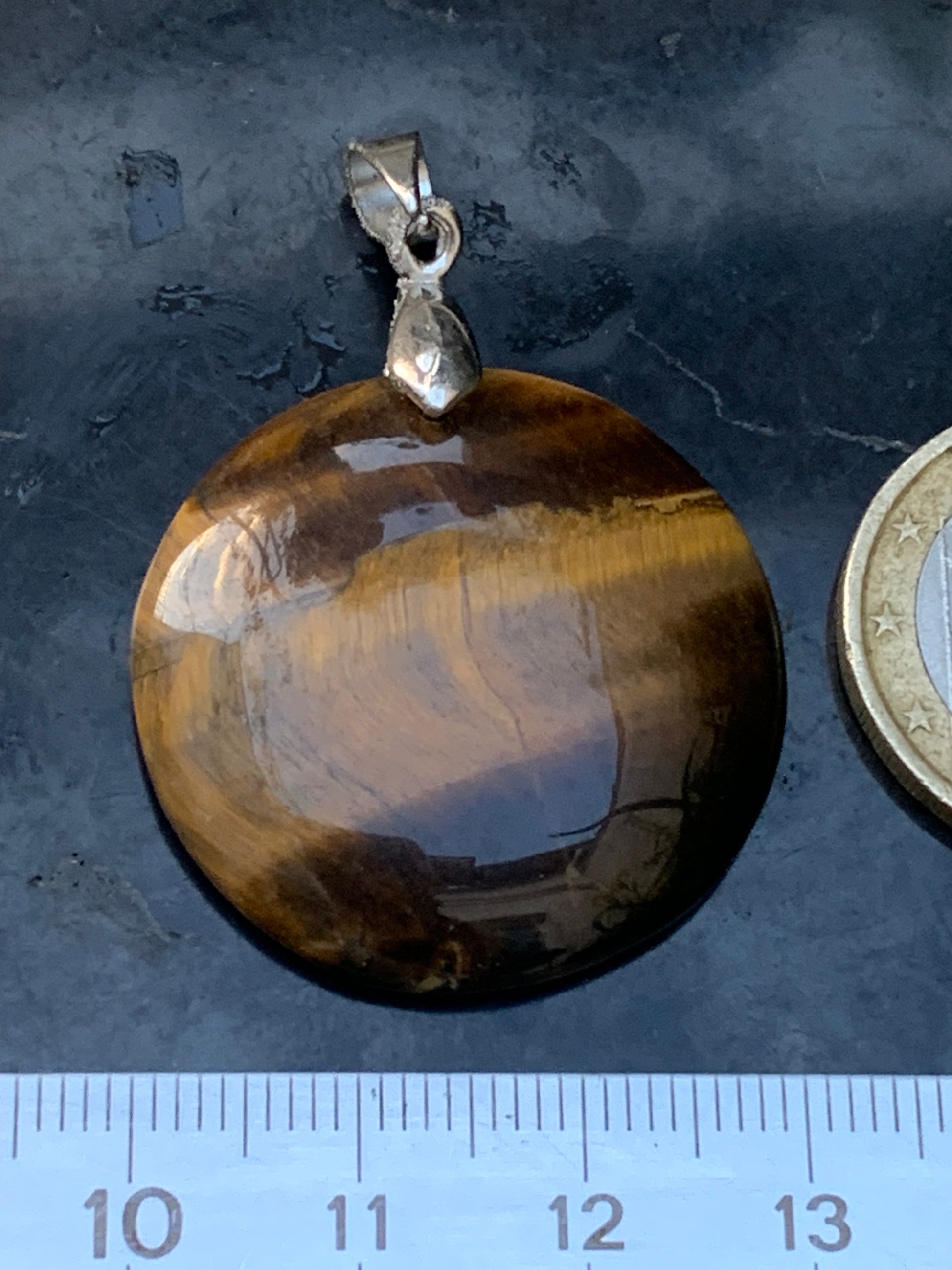 Oeil de tigre, pendentif de 40mm de hauteur x 30 de largeur x 7 d'épaisseur. Vendu avec cordon réglable de couleur noire offert !