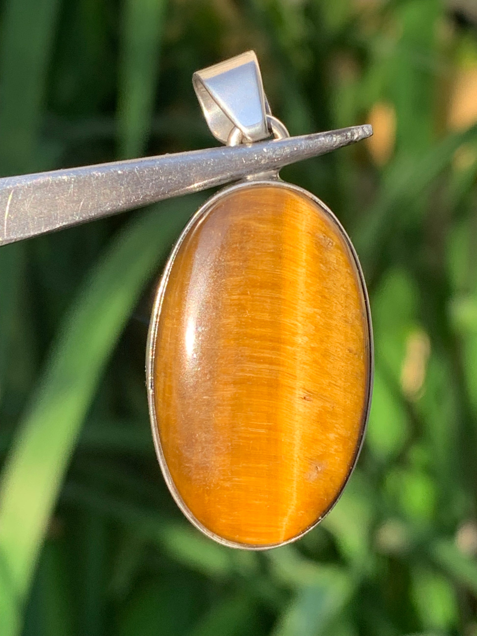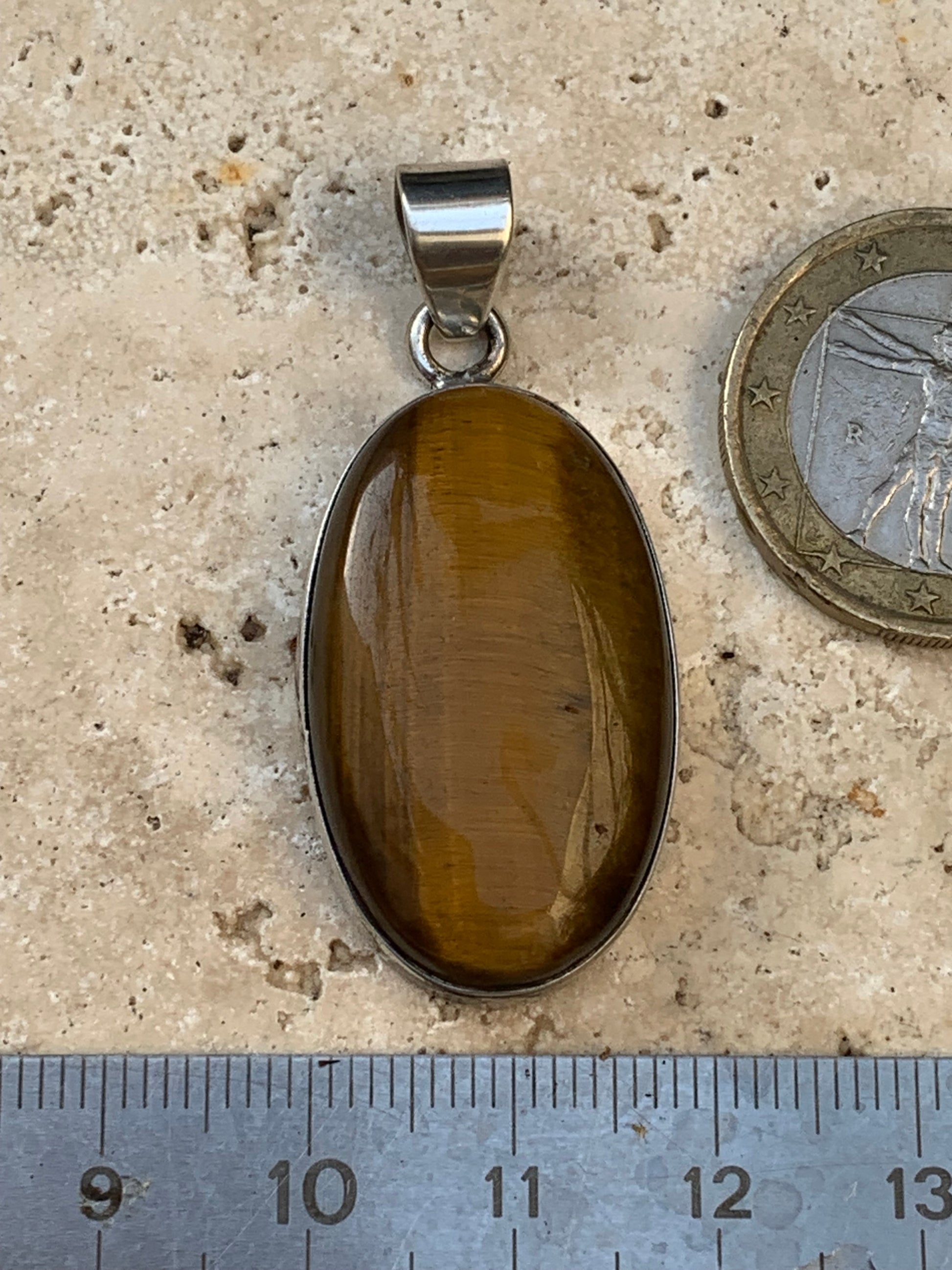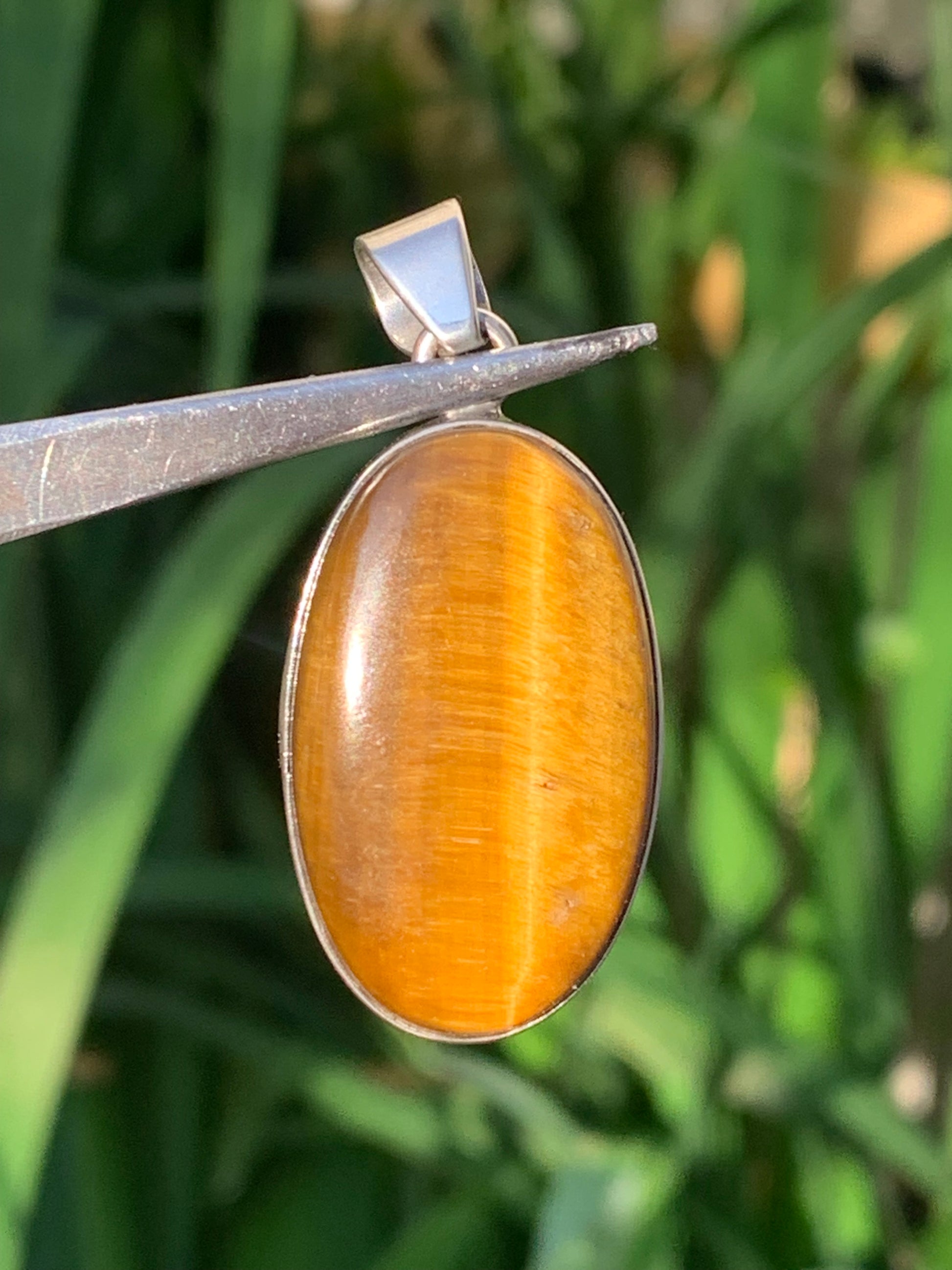 Oeil de tigre, pendentif en Argent de 42mm de hauteur x 20 de largeur x 8 d'épaisseur. Vendu avec cordon réglable !