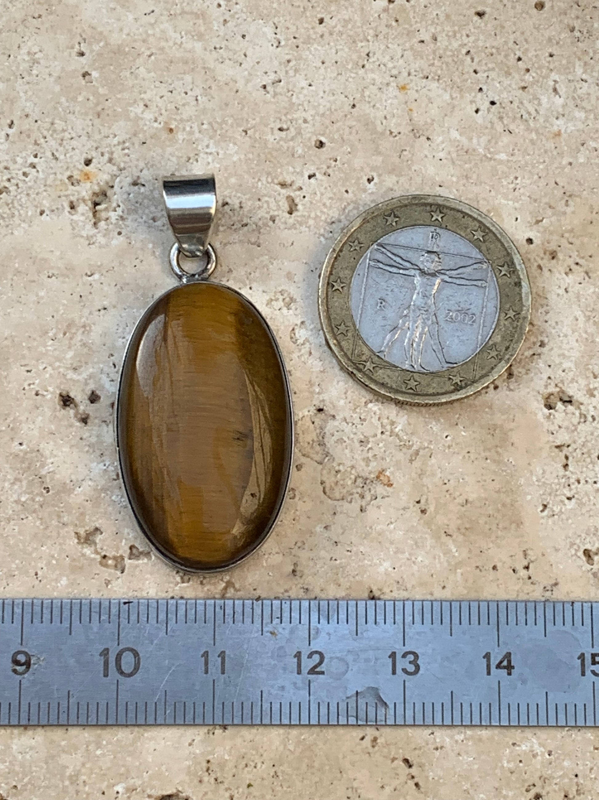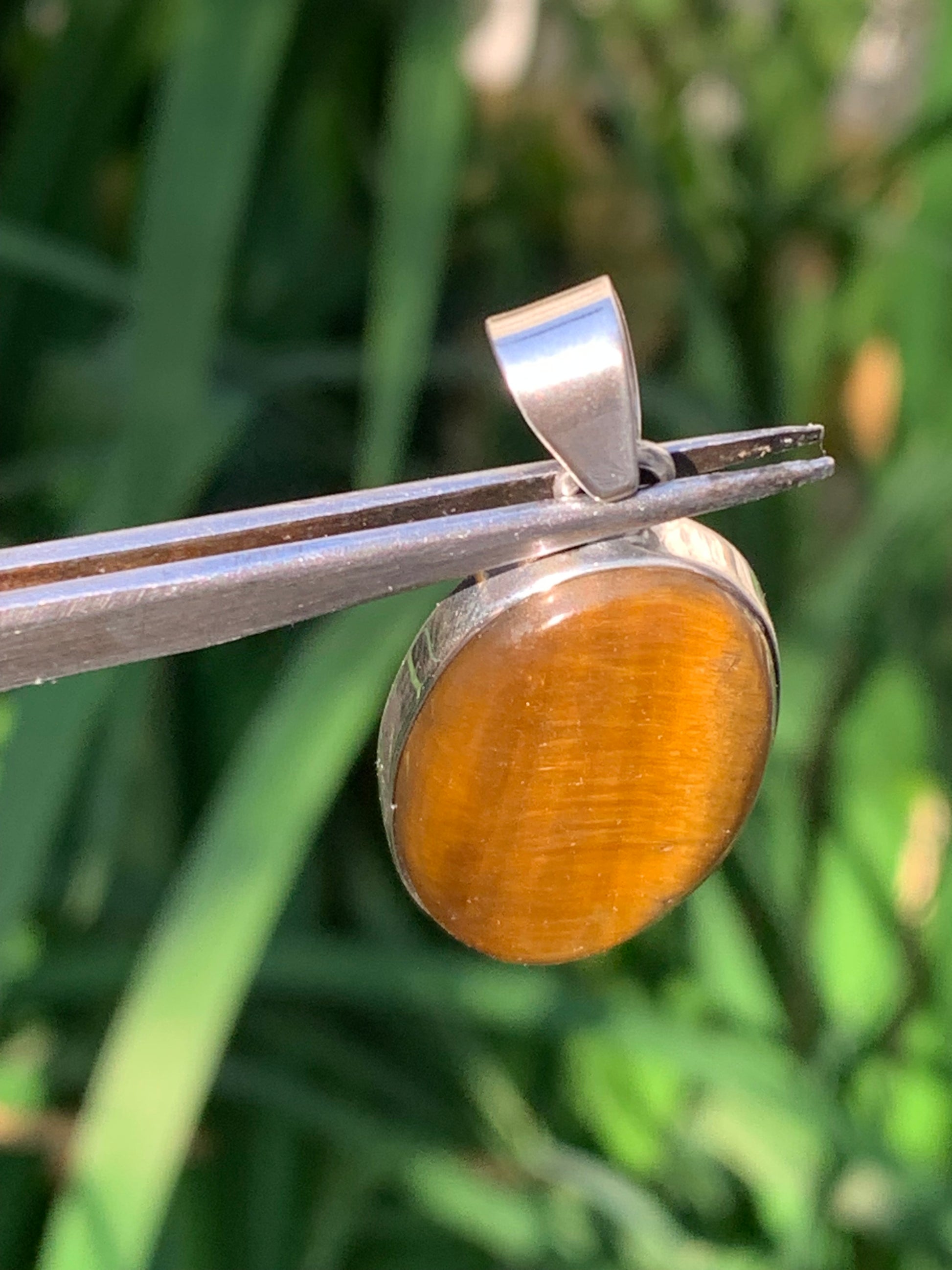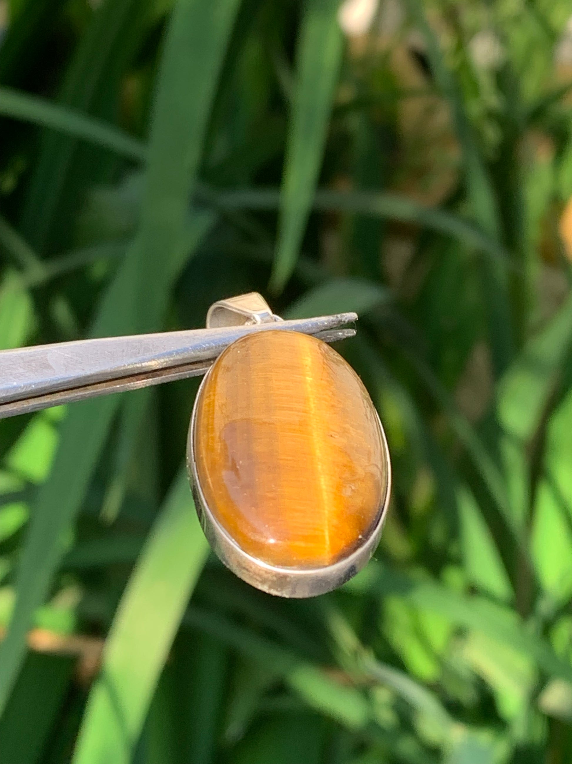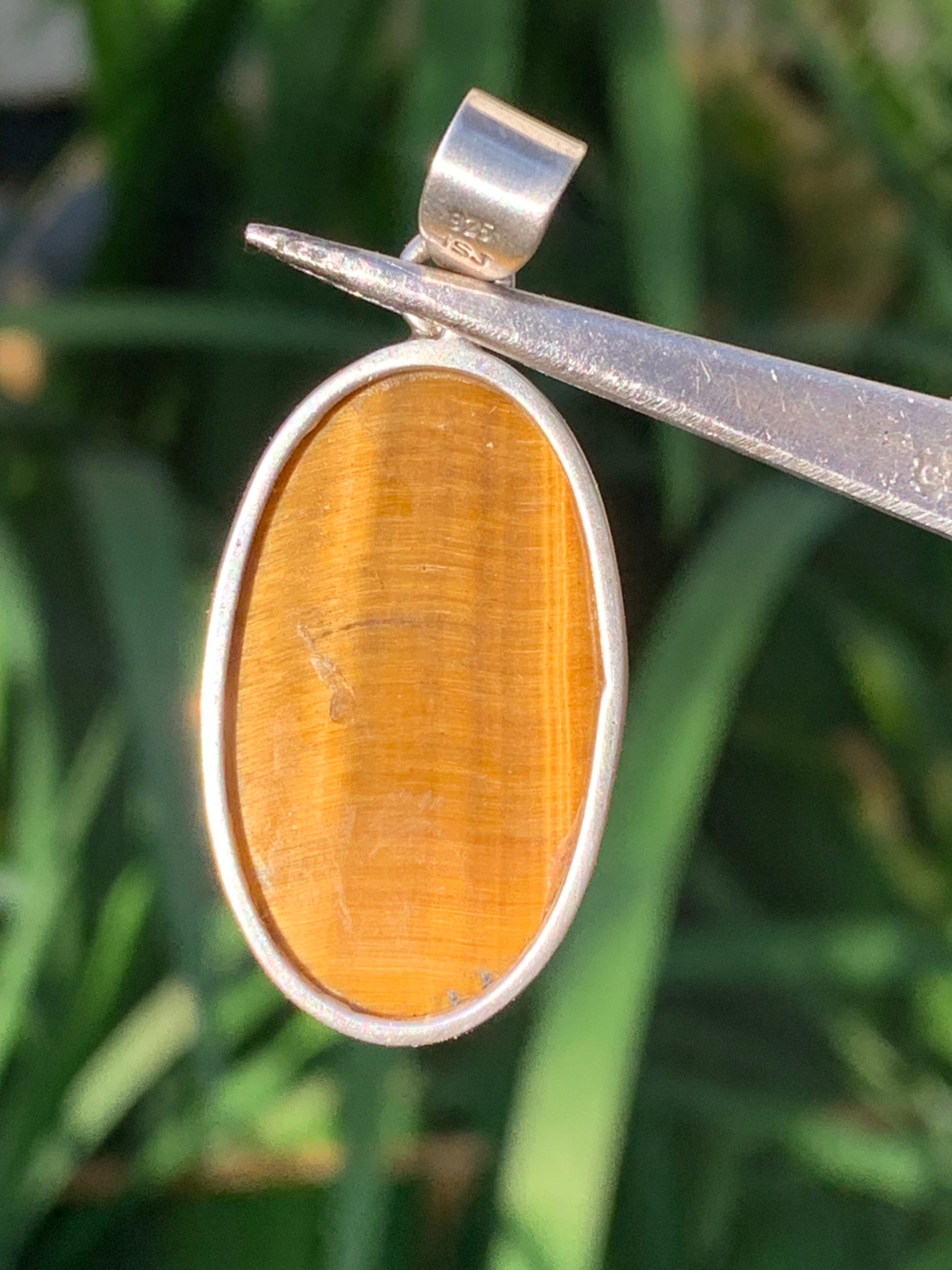 Oeil de tigre, pendentif en Argent de 42mm de hauteur x 20 de largeur x 8 d'épaisseur. Vendu avec cordon réglable !