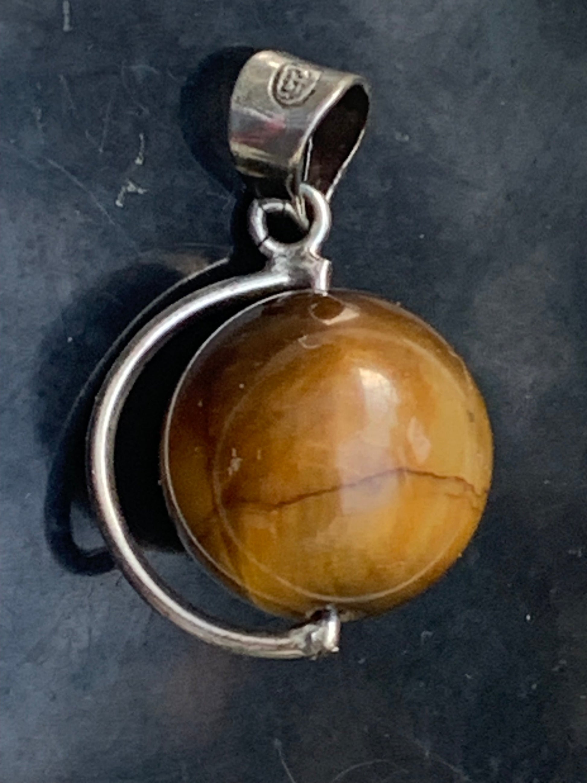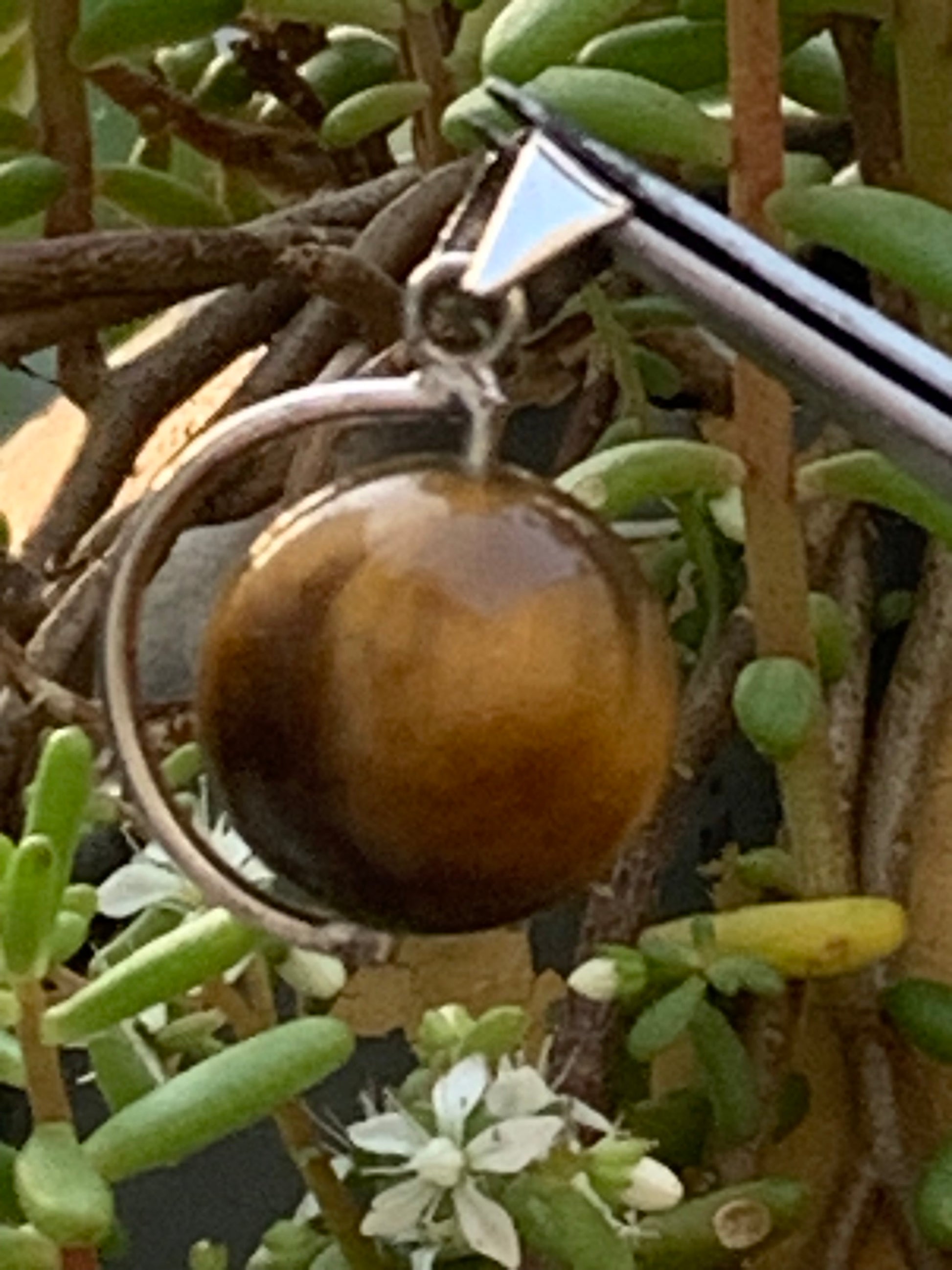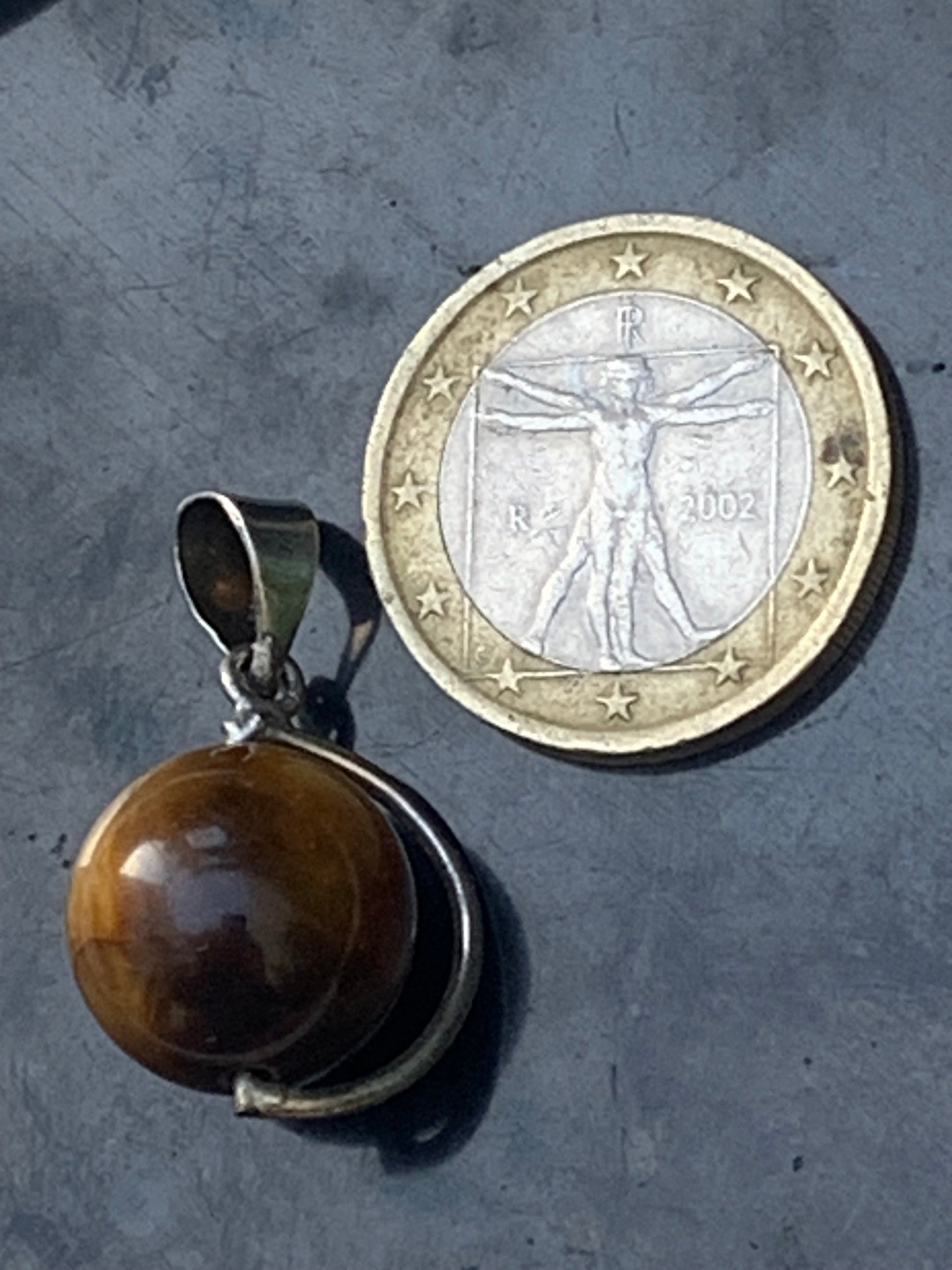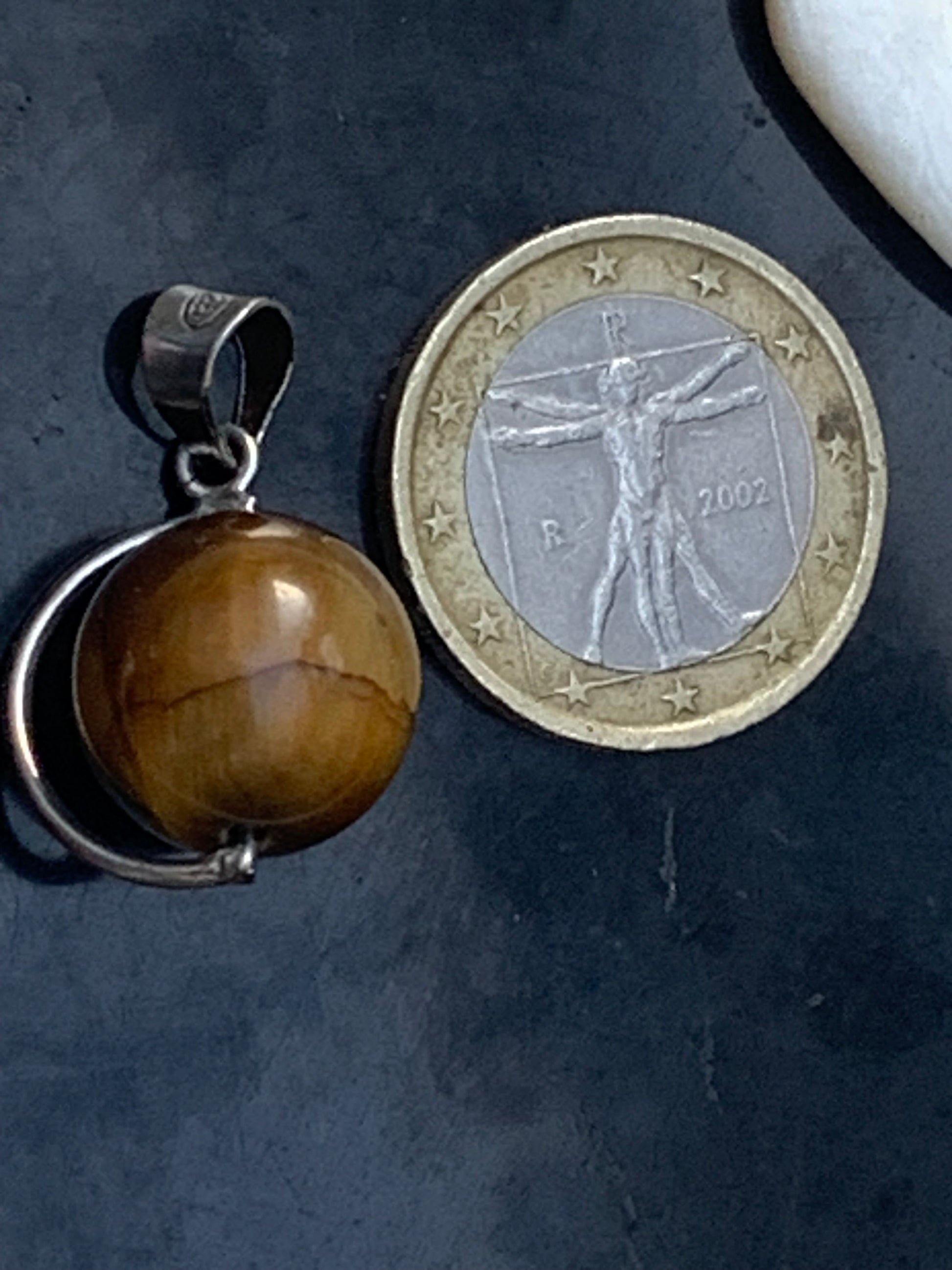 Oeil de tigre, pendentif 'Globe' en Argent, de 28mm de hauteur x 17 de largeur x 14 d'épaisseur. Vendu avec cordon réglable de couleur noire offert !