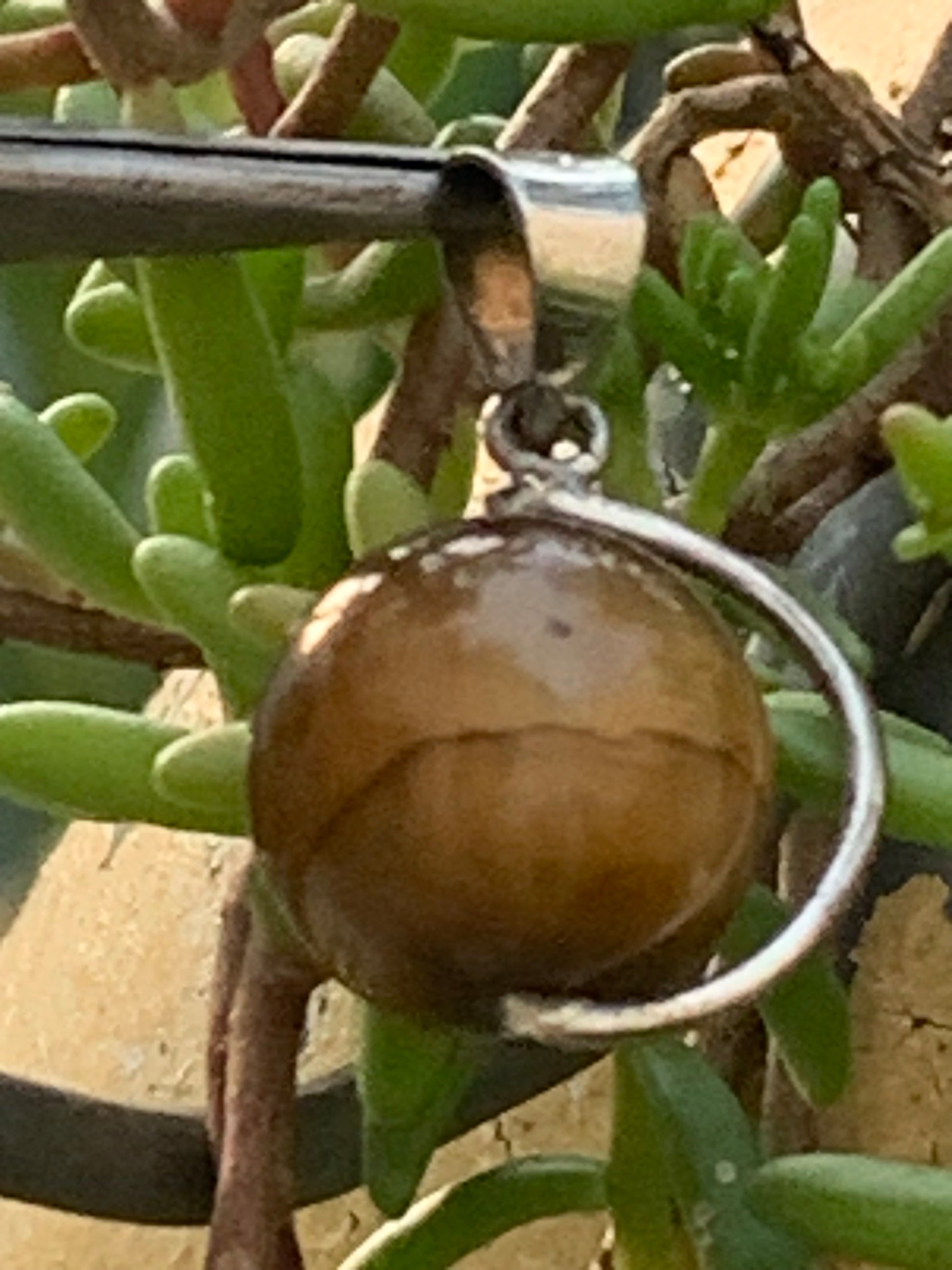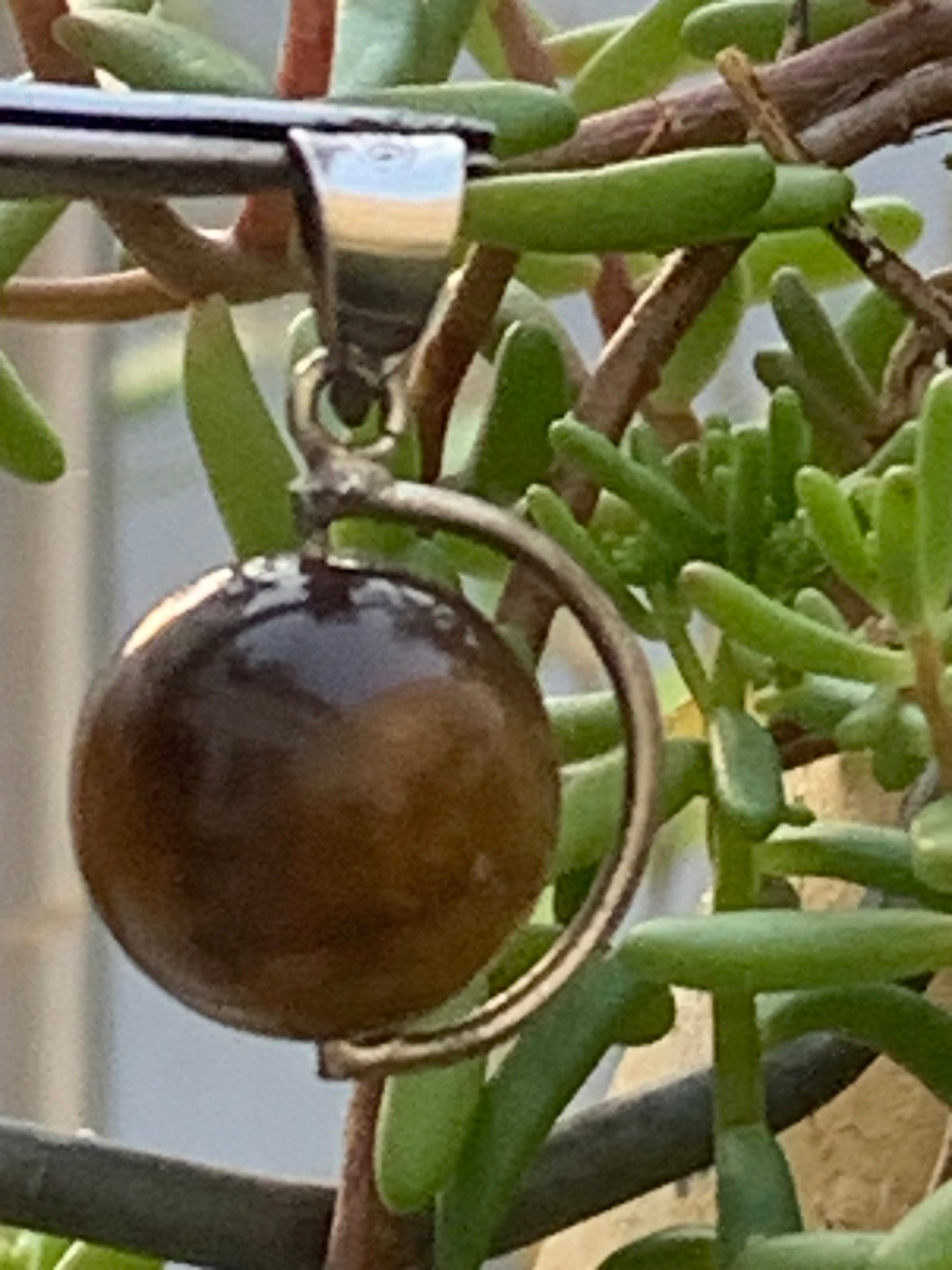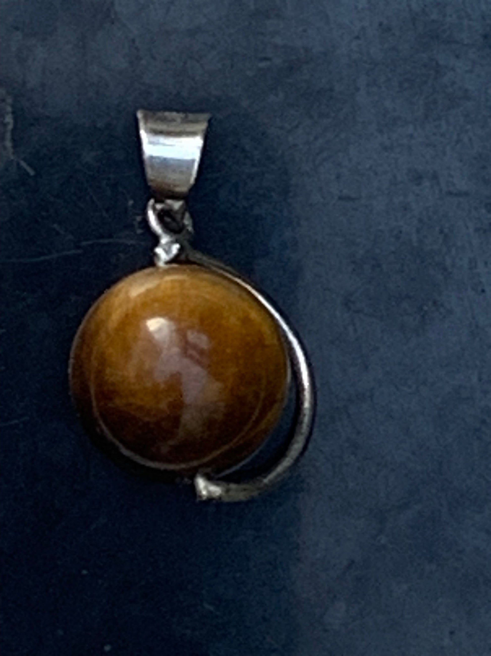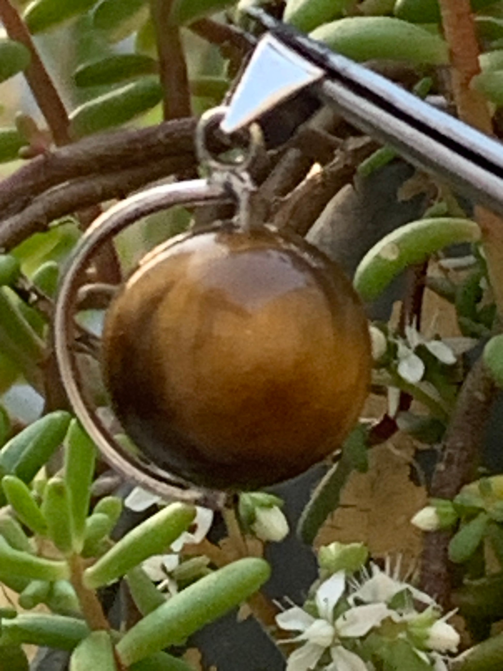 Oeil de tigre, pendentif 'Globe' en Argent, de 28mm de hauteur x 17 de largeur x 14 d'épaisseur. Vendu avec cordon réglable de couleur noire offert !