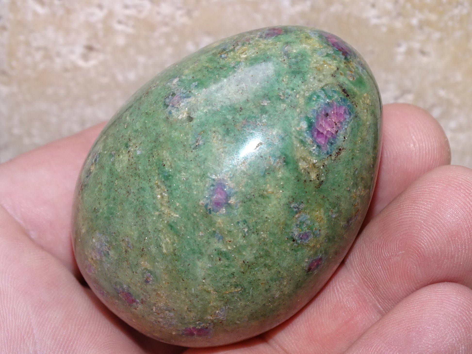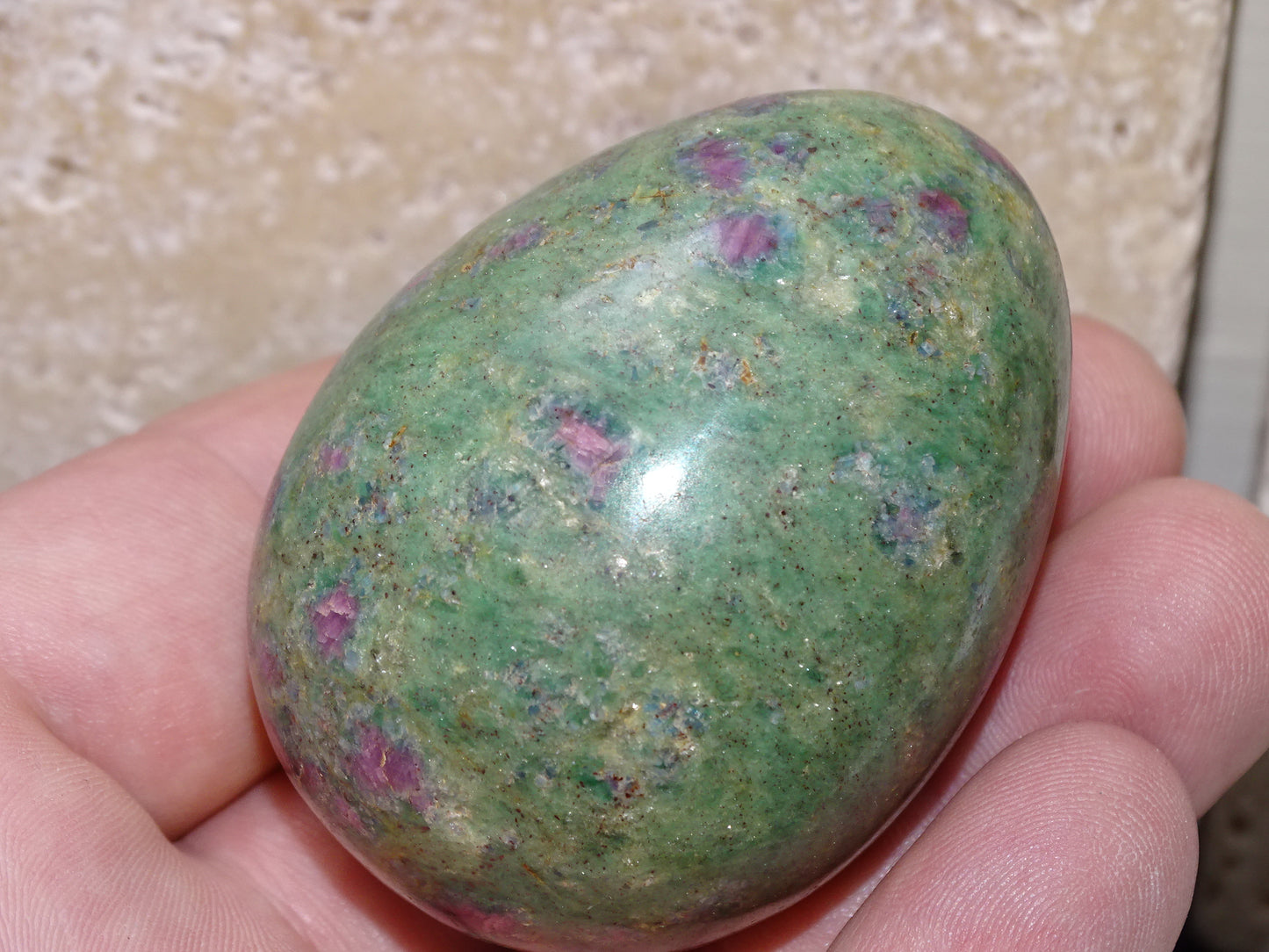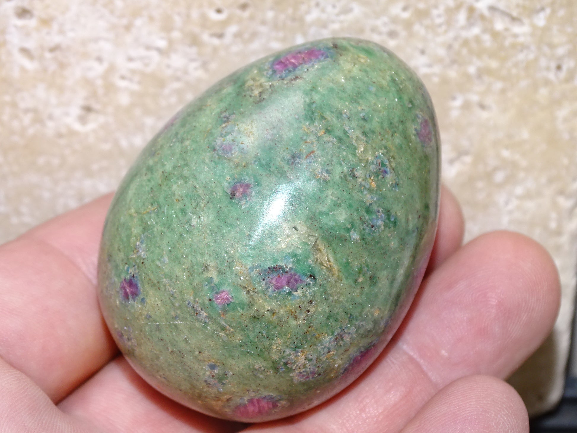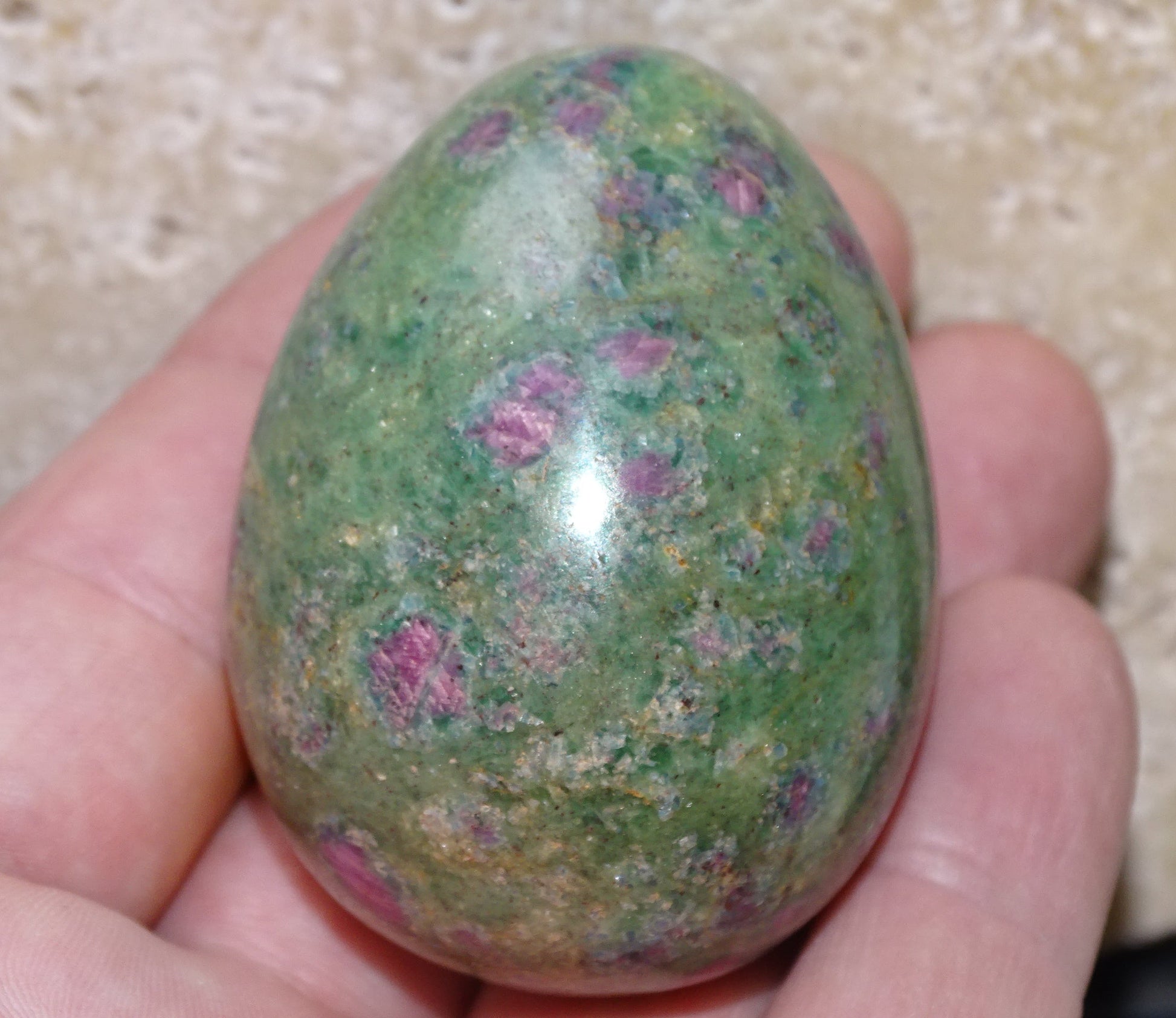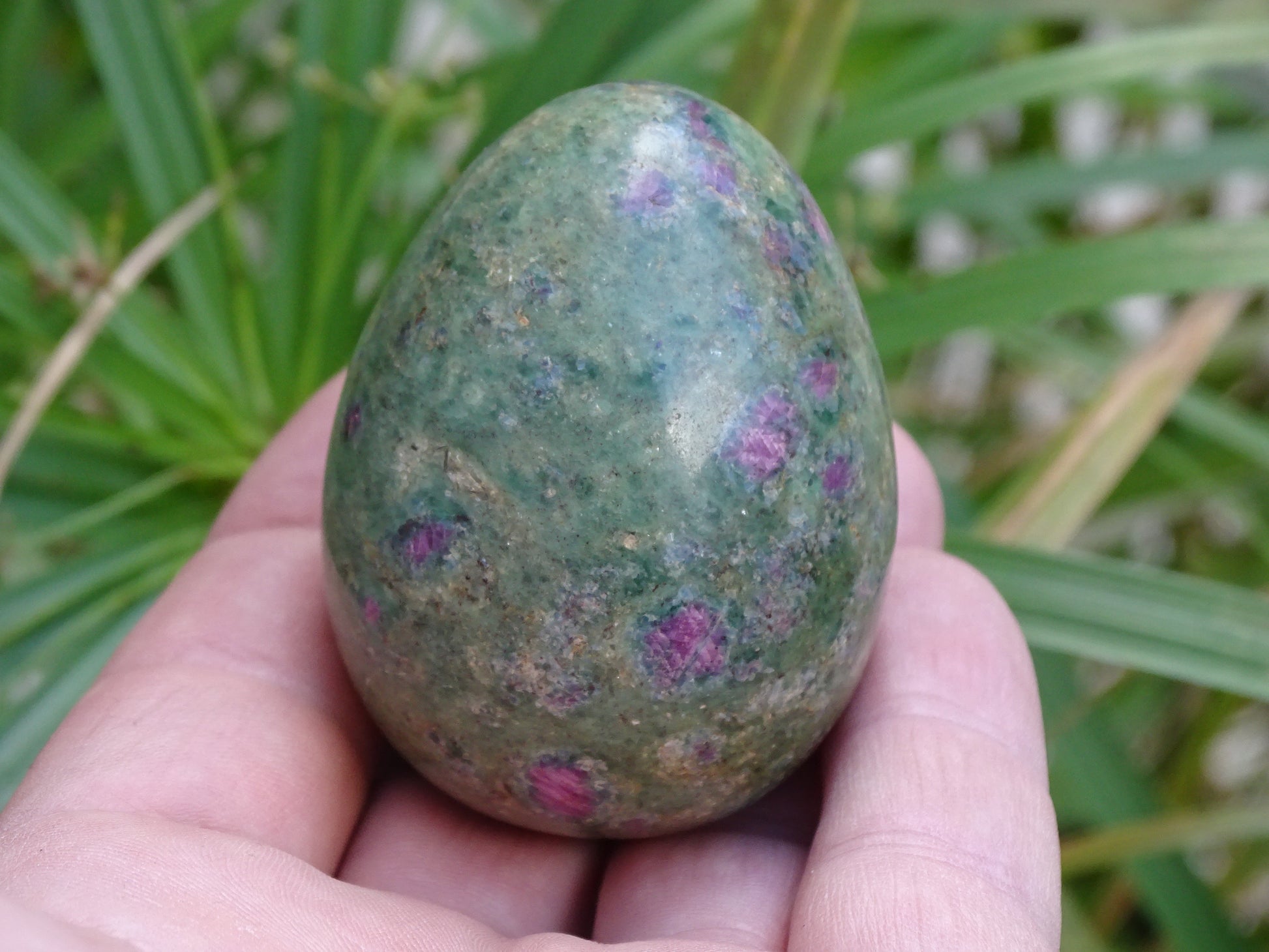 Oeuf en rubis fuchsite de 60 millimètres de hauteur x 4,8 mm de diamètre - 323 grammes. Très belle qualité, parfait pour une collection !