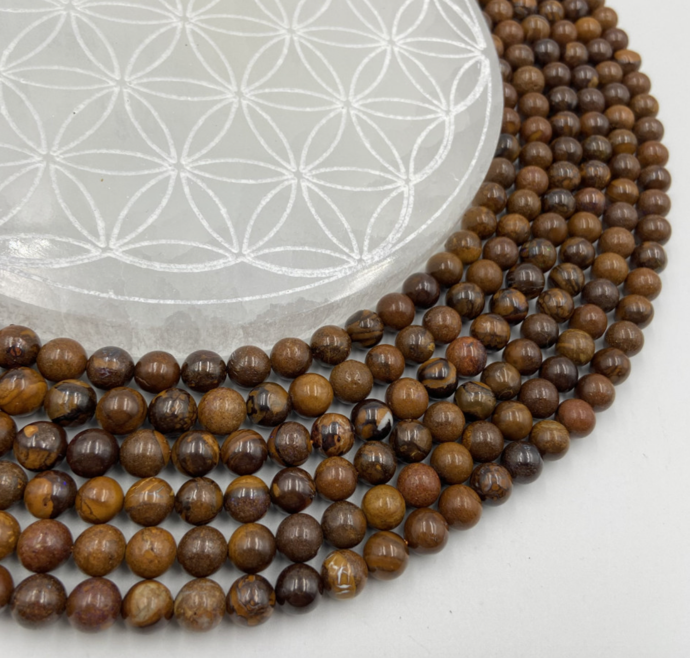 Opale Boulder d'Australie, perles rondes de 6 ou 8 mm. Vendu en fil de perle 38/39 cm, en bracelet de 17 à 21cm, en collier de 45 ou sautoir de 60cm. Qualité AA à AAA !