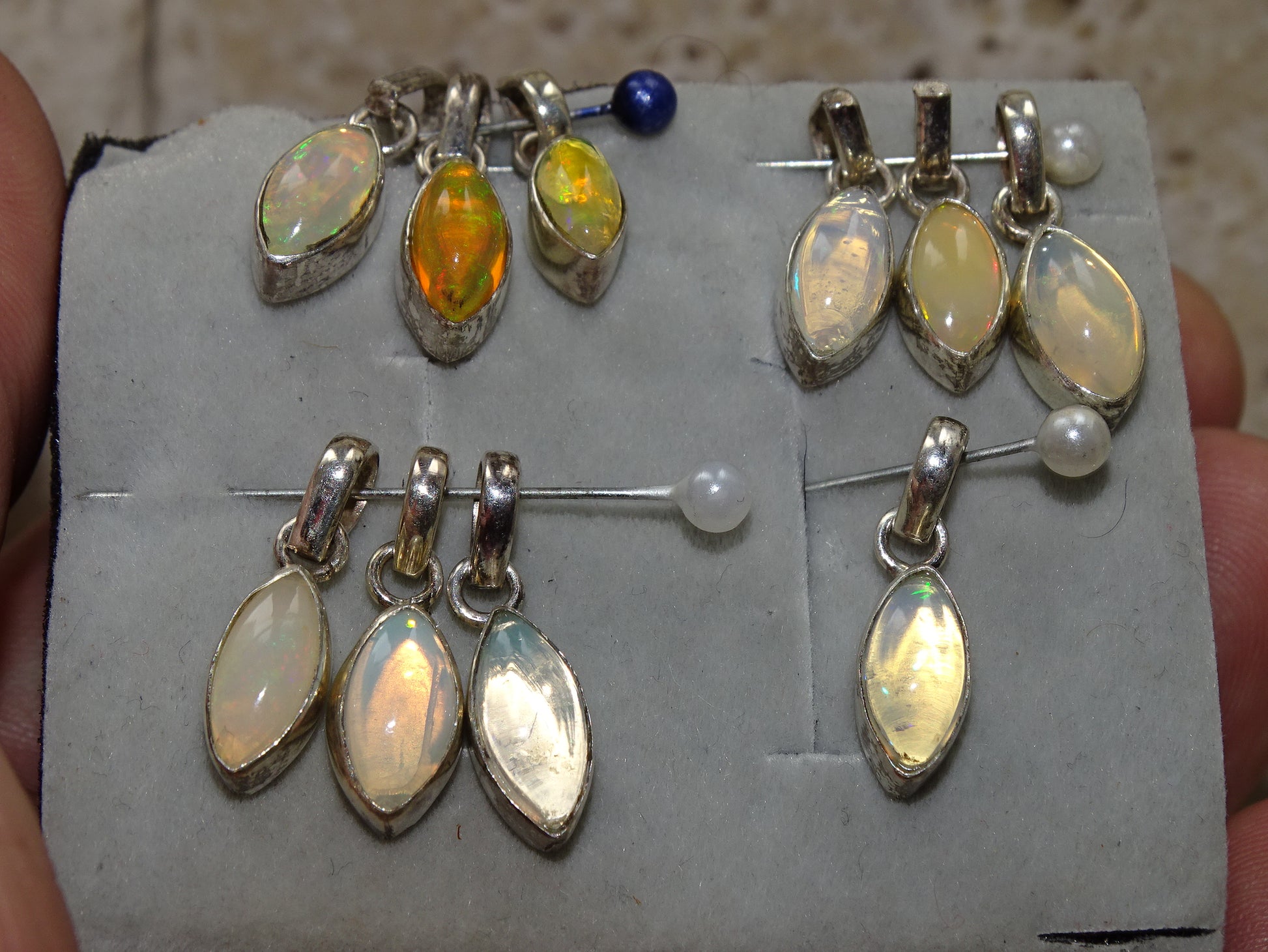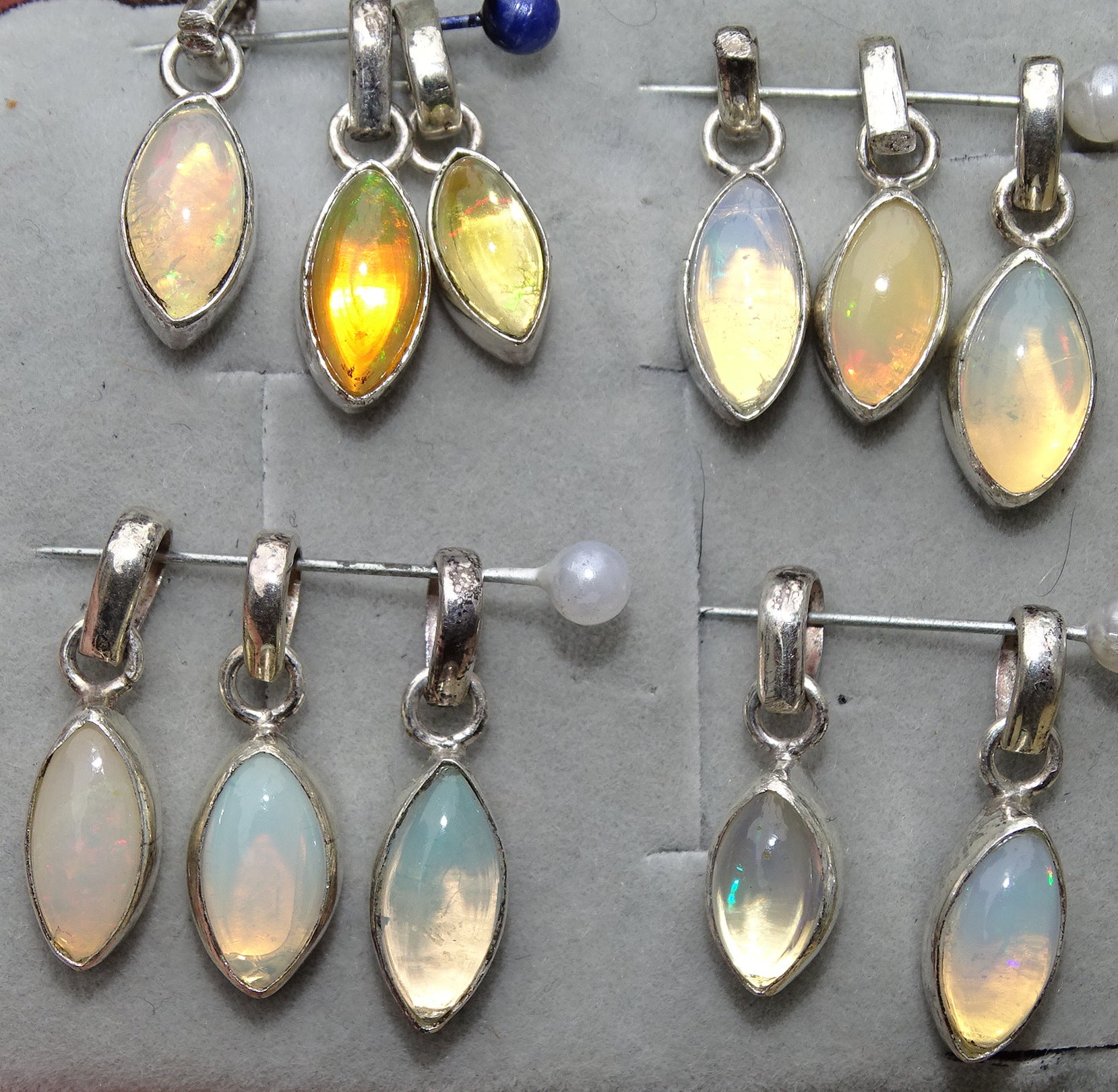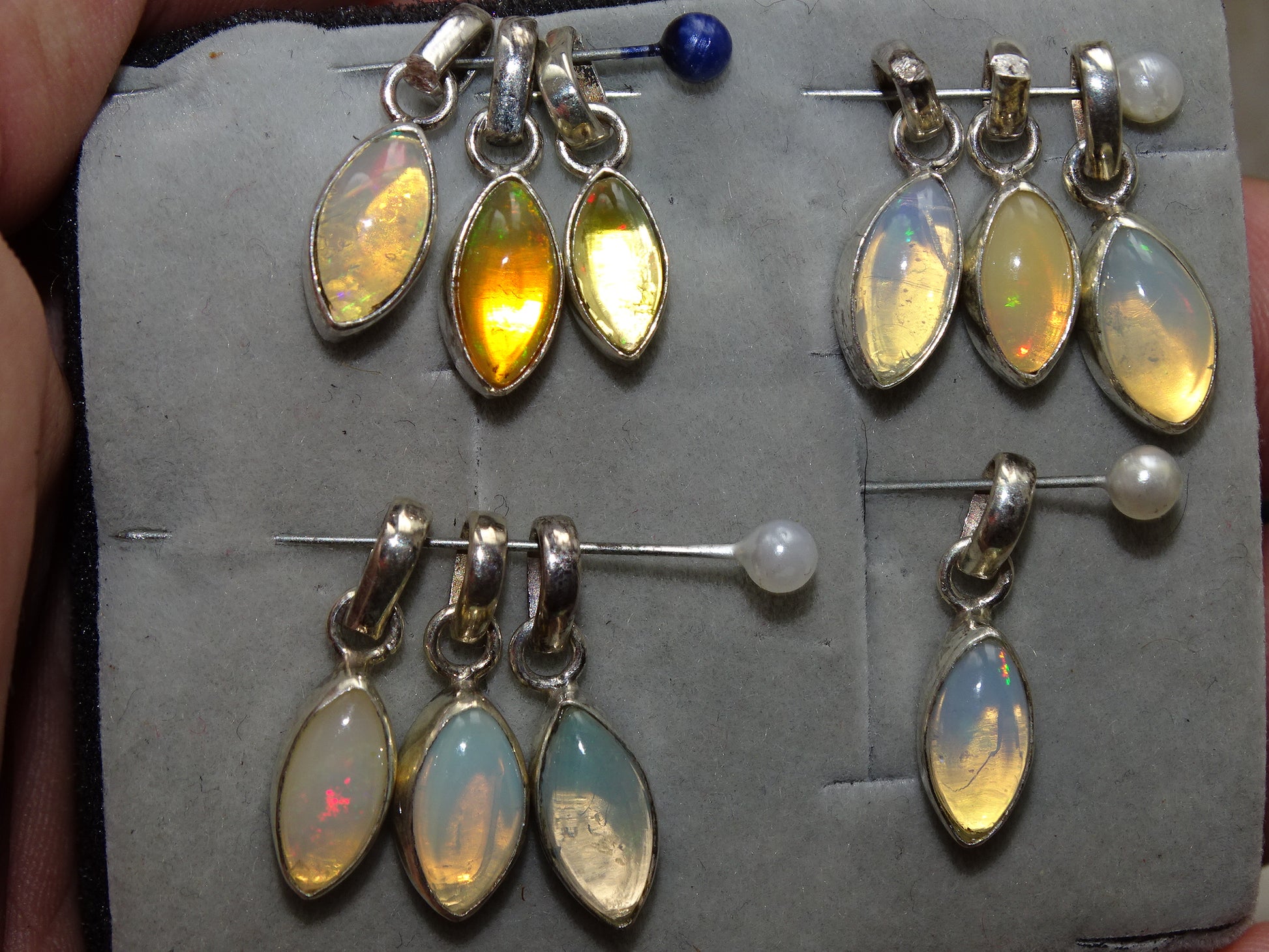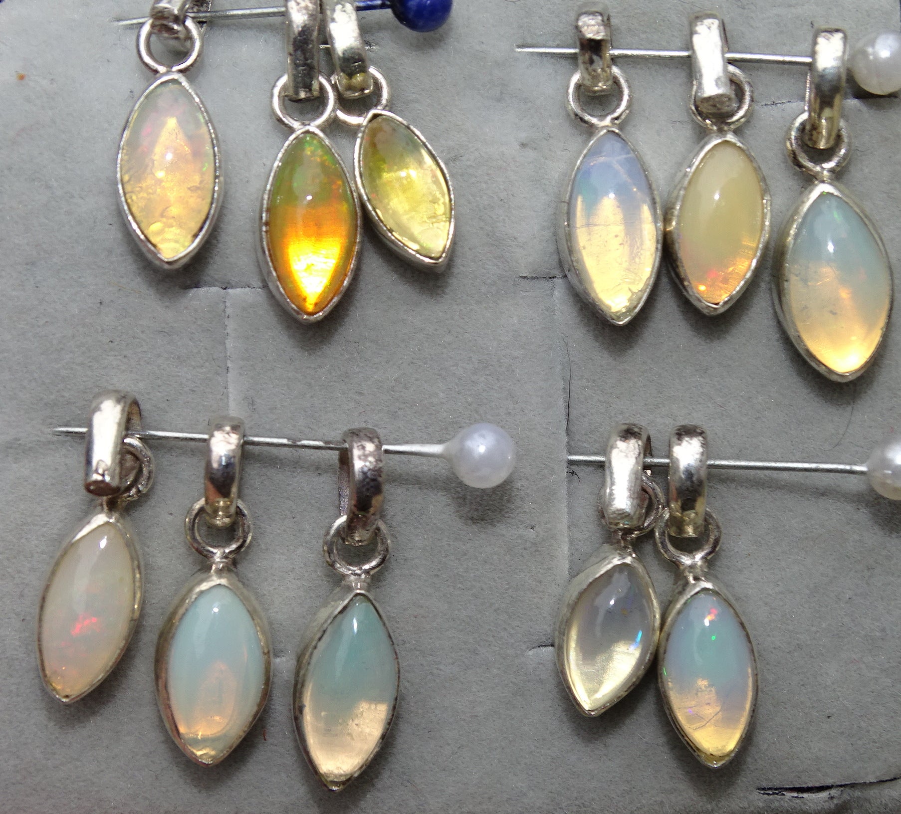 Aspect | Cabochons, pierres roulées, nodules, opales de feu, opales nobles iridescentes |