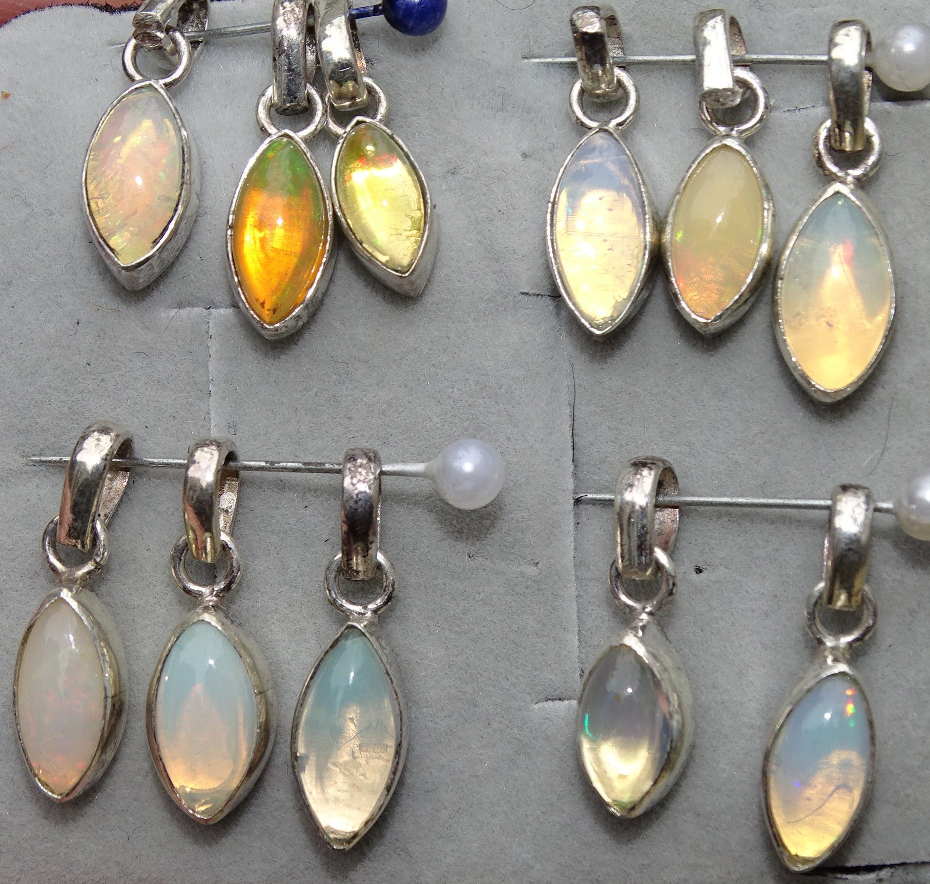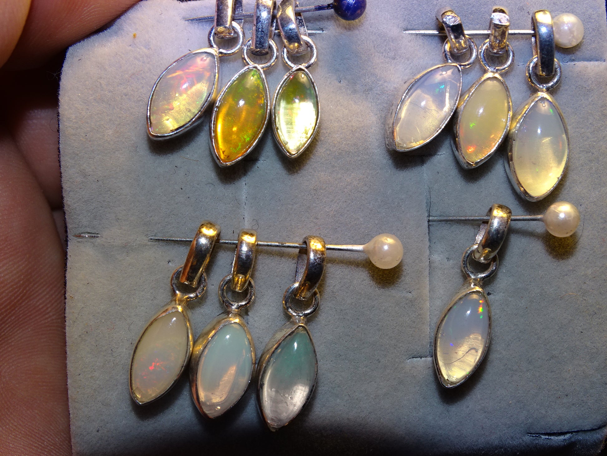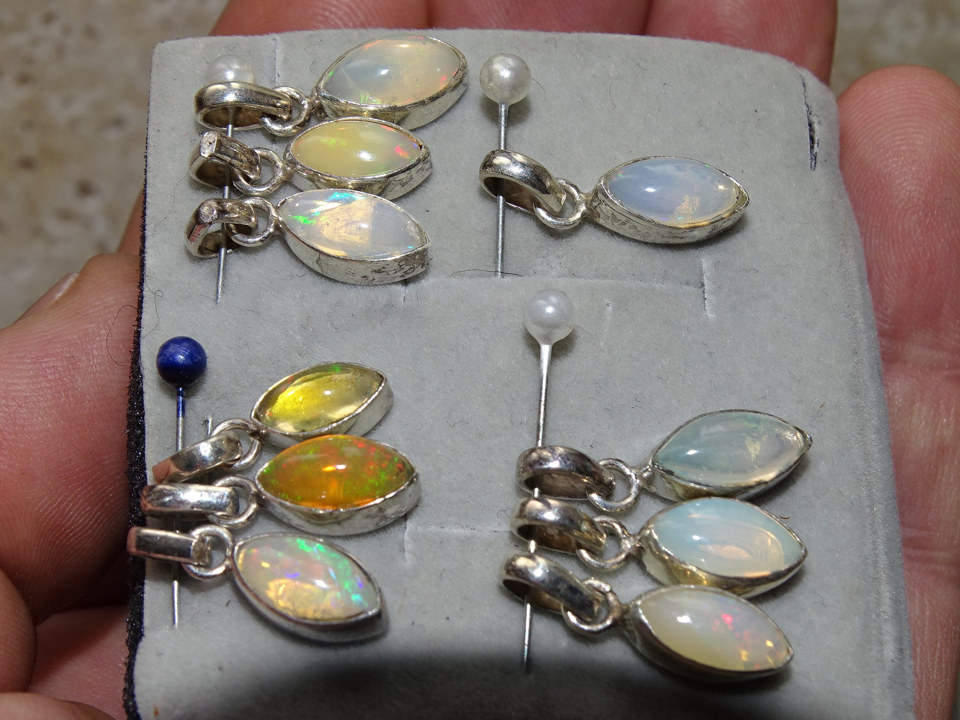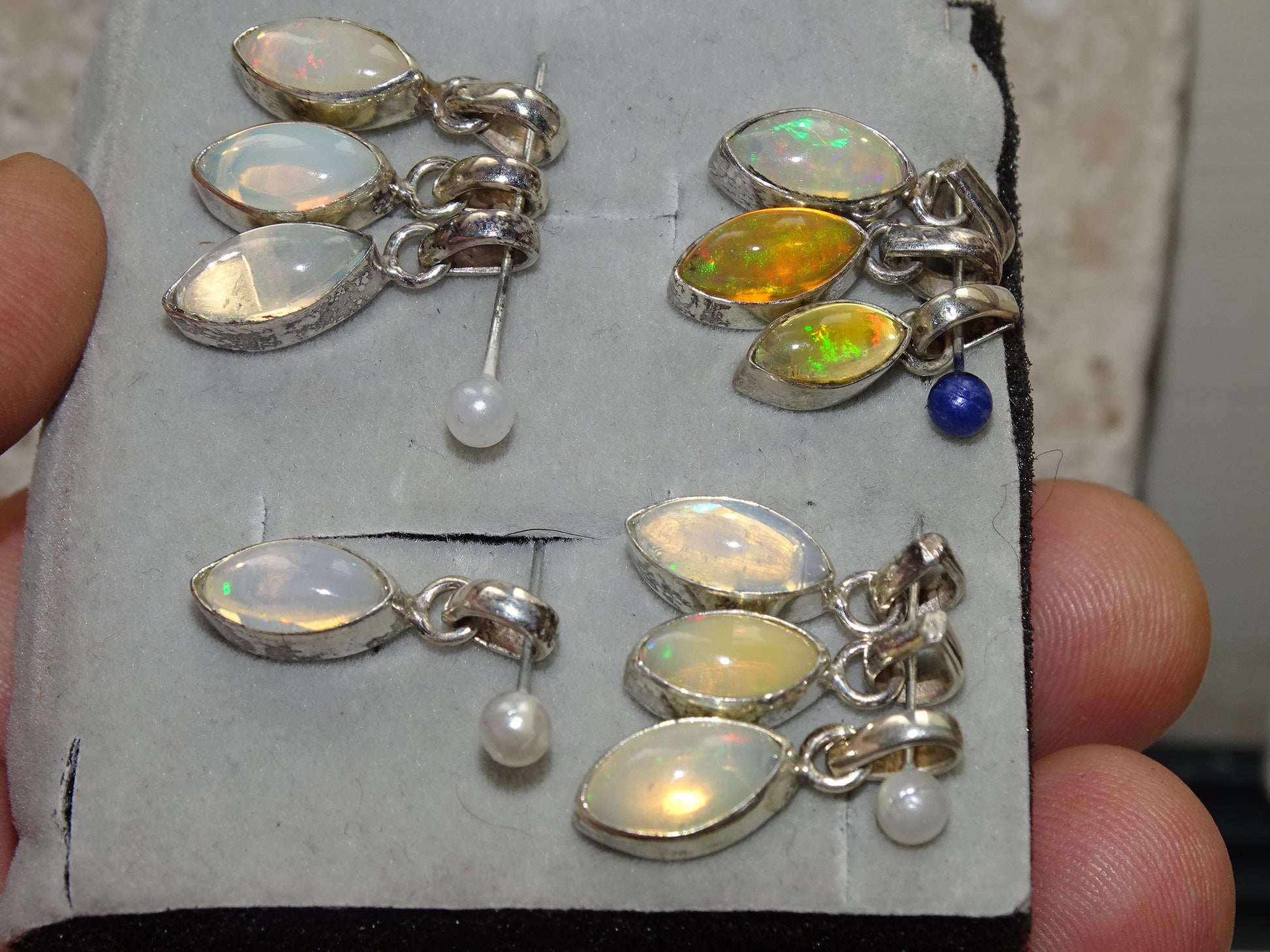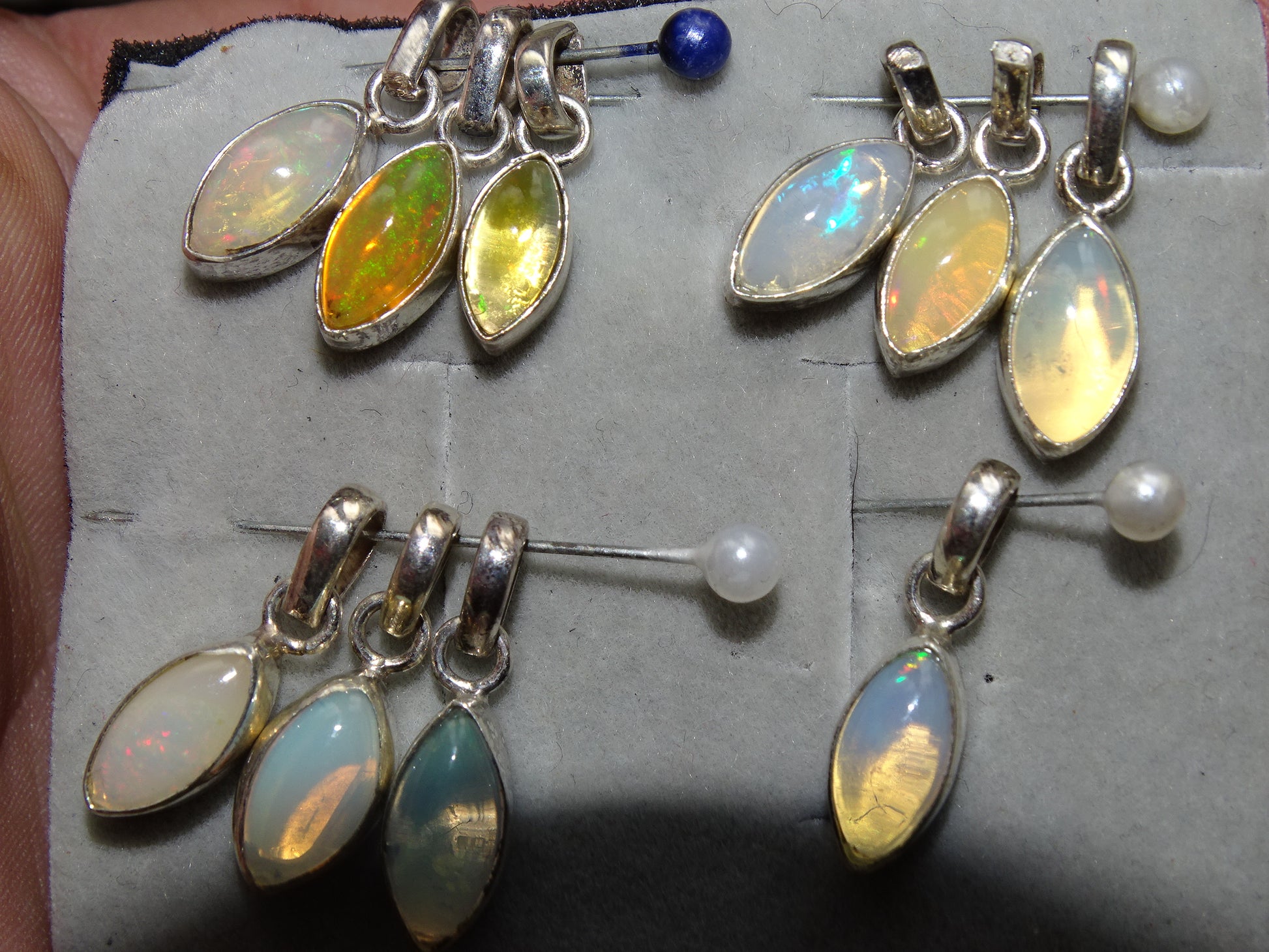 Aspect | Cabochons, pierres roulées, nodules, opales de feu, opales nobles iridescentes |