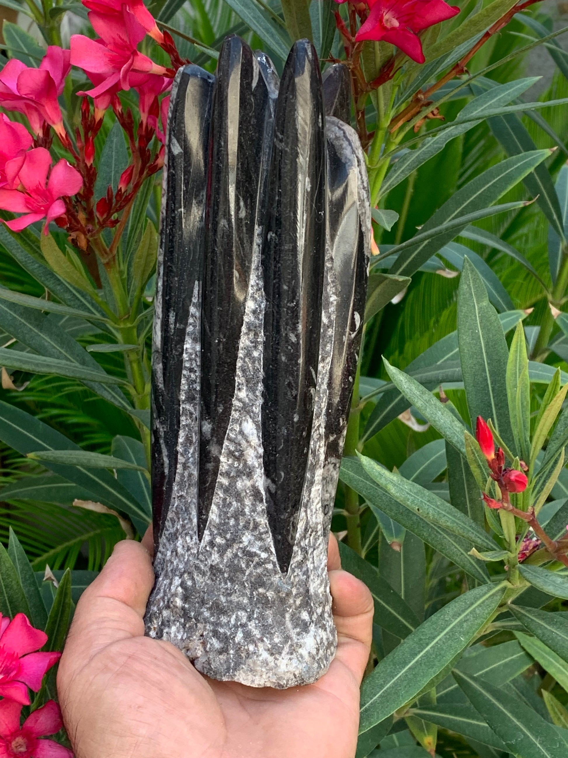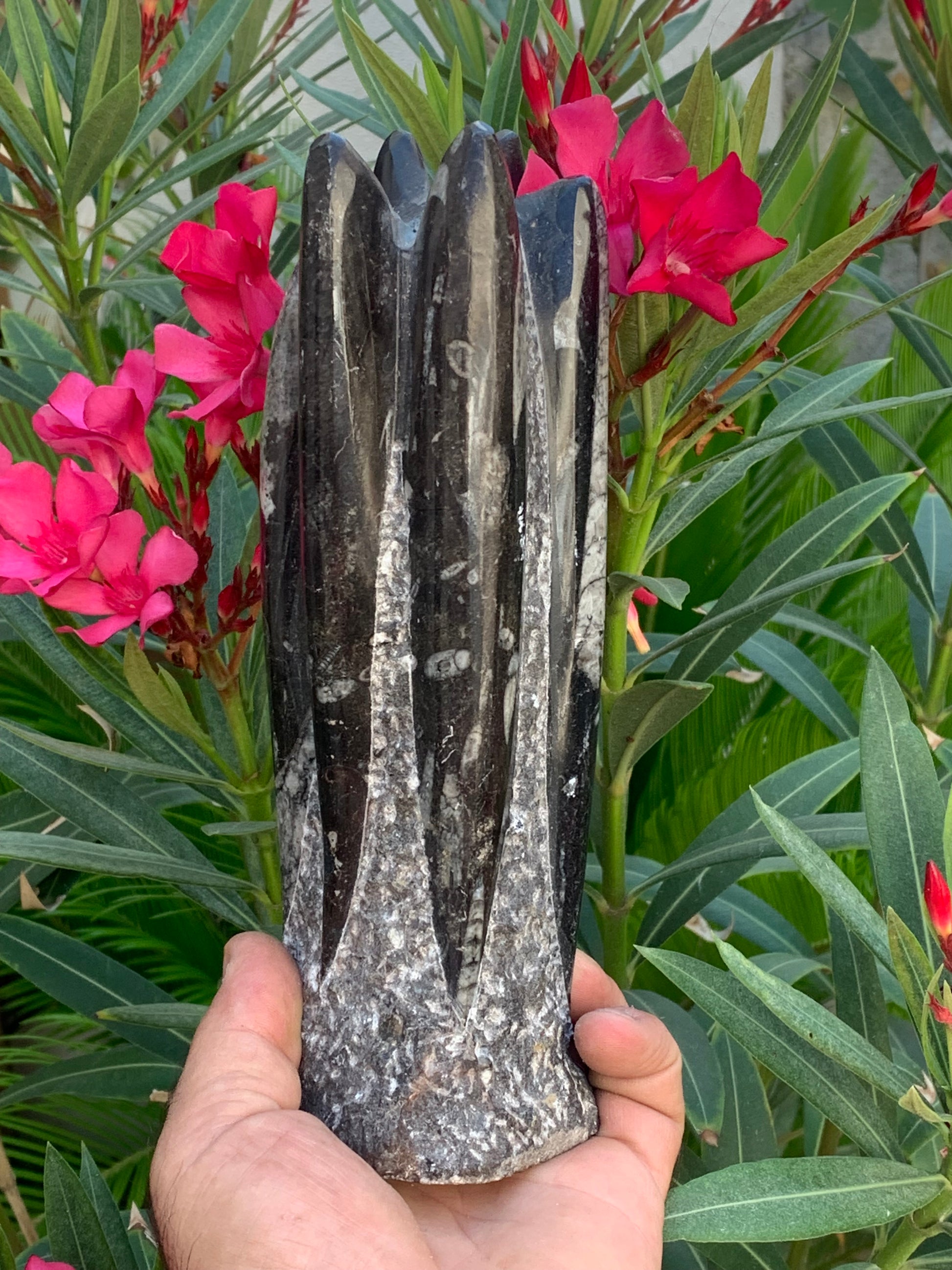 Petite histoire / Anecdote Orthoceras signifie « corne droite » en grec. Ces fossiles sont très prisés au Maroc, souvent polis en décorations ou en pierres semi-précieuses.