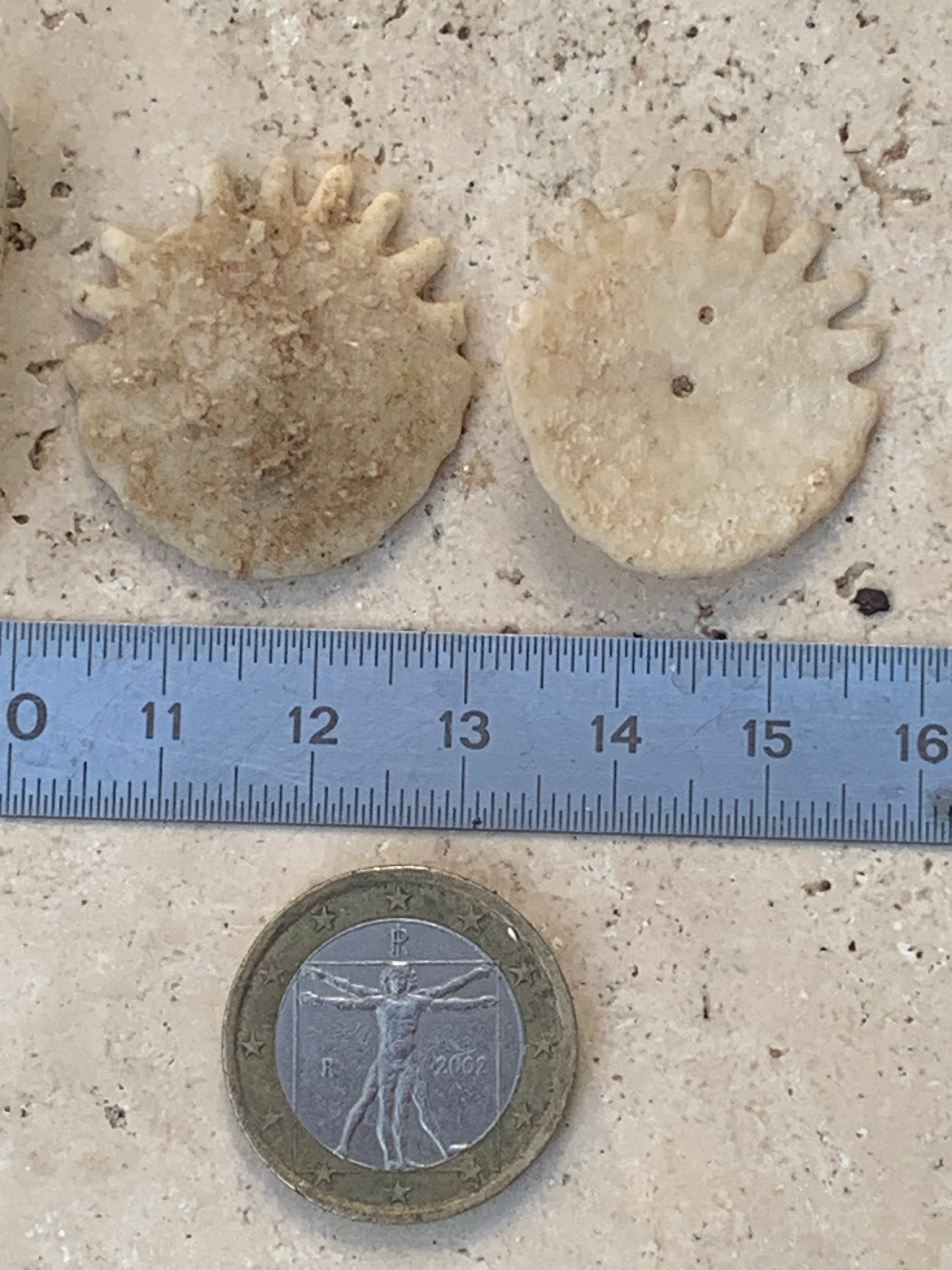 Particularité | Fossile typique du Crétacé marin, souvent pentamère, avec plaques et tubercules bien conservés |