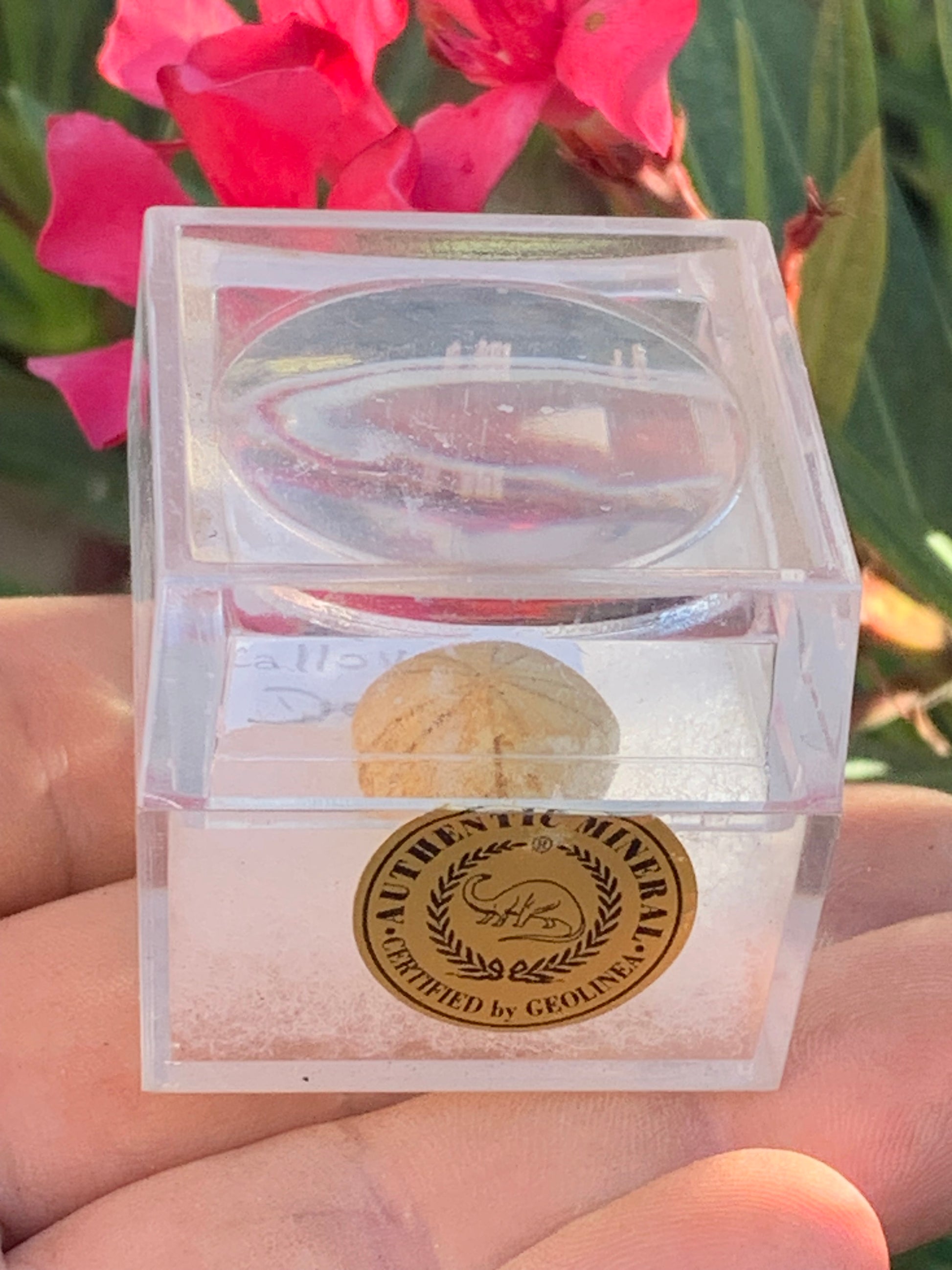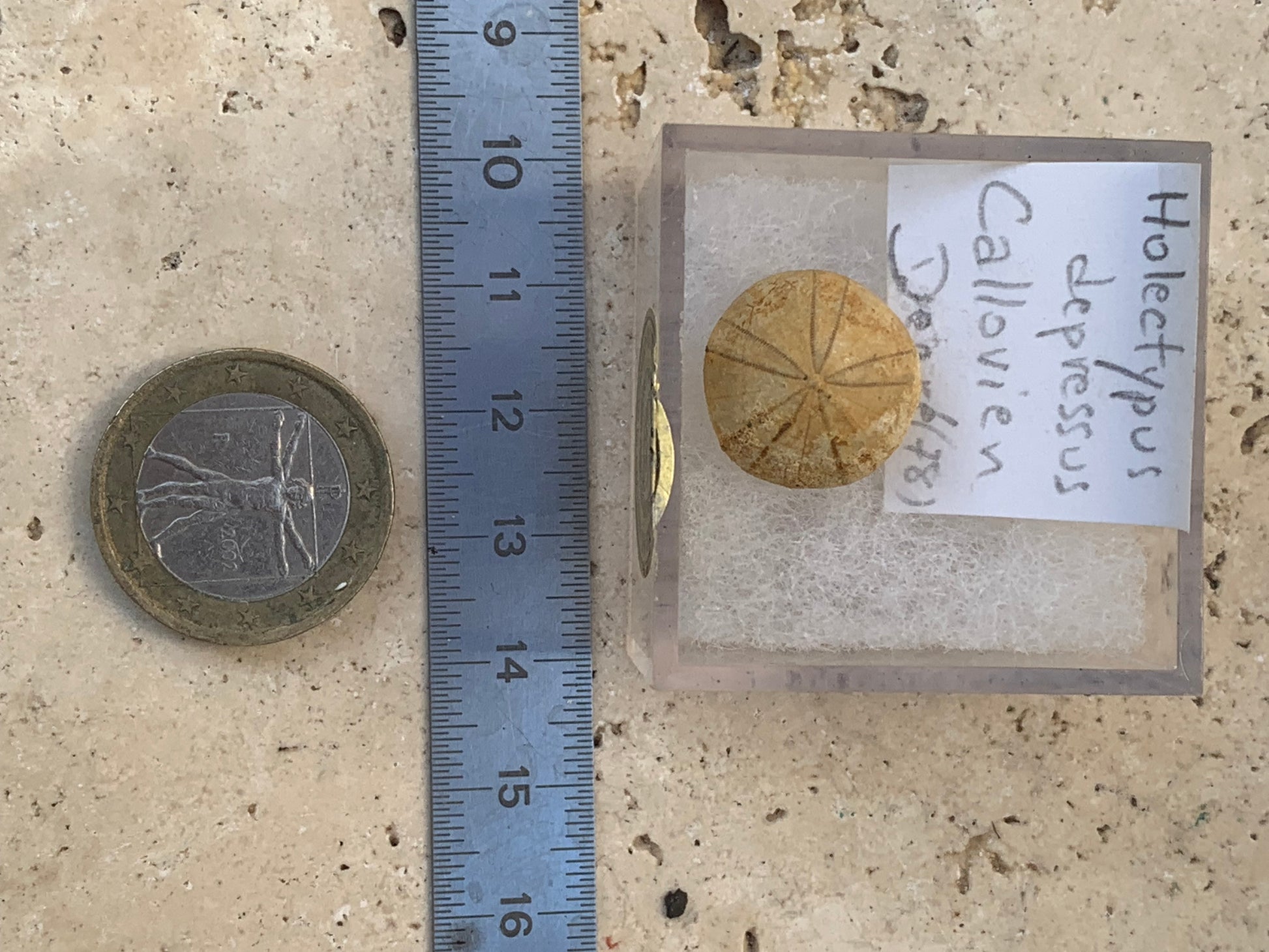 Oursin fossilisé aussi appelé 'échinide fossile', de 16 mm de diamètre x 10 - 2,4 grammes. Vendu avec boite 'loupe', parfait pour collection, exposition...