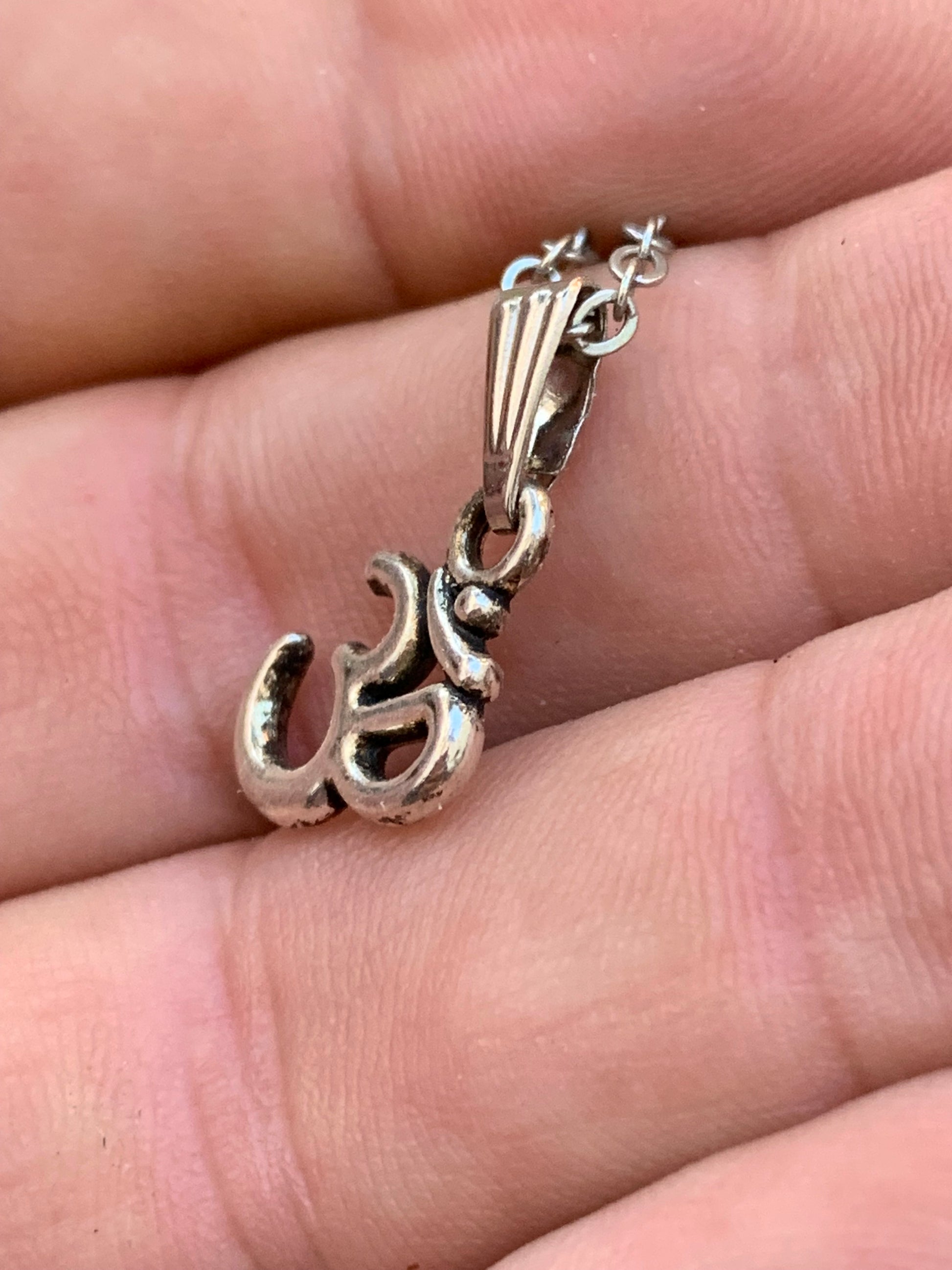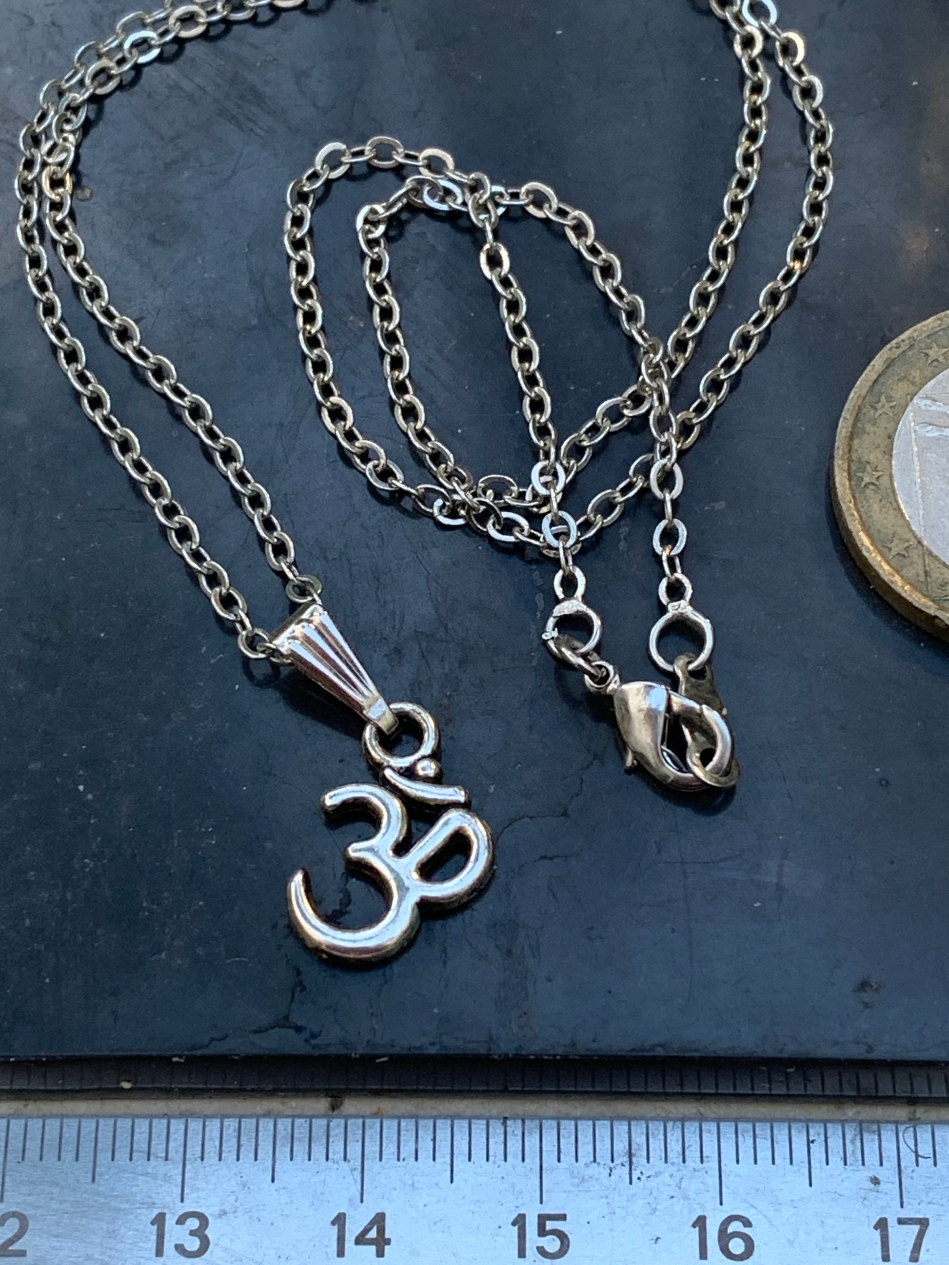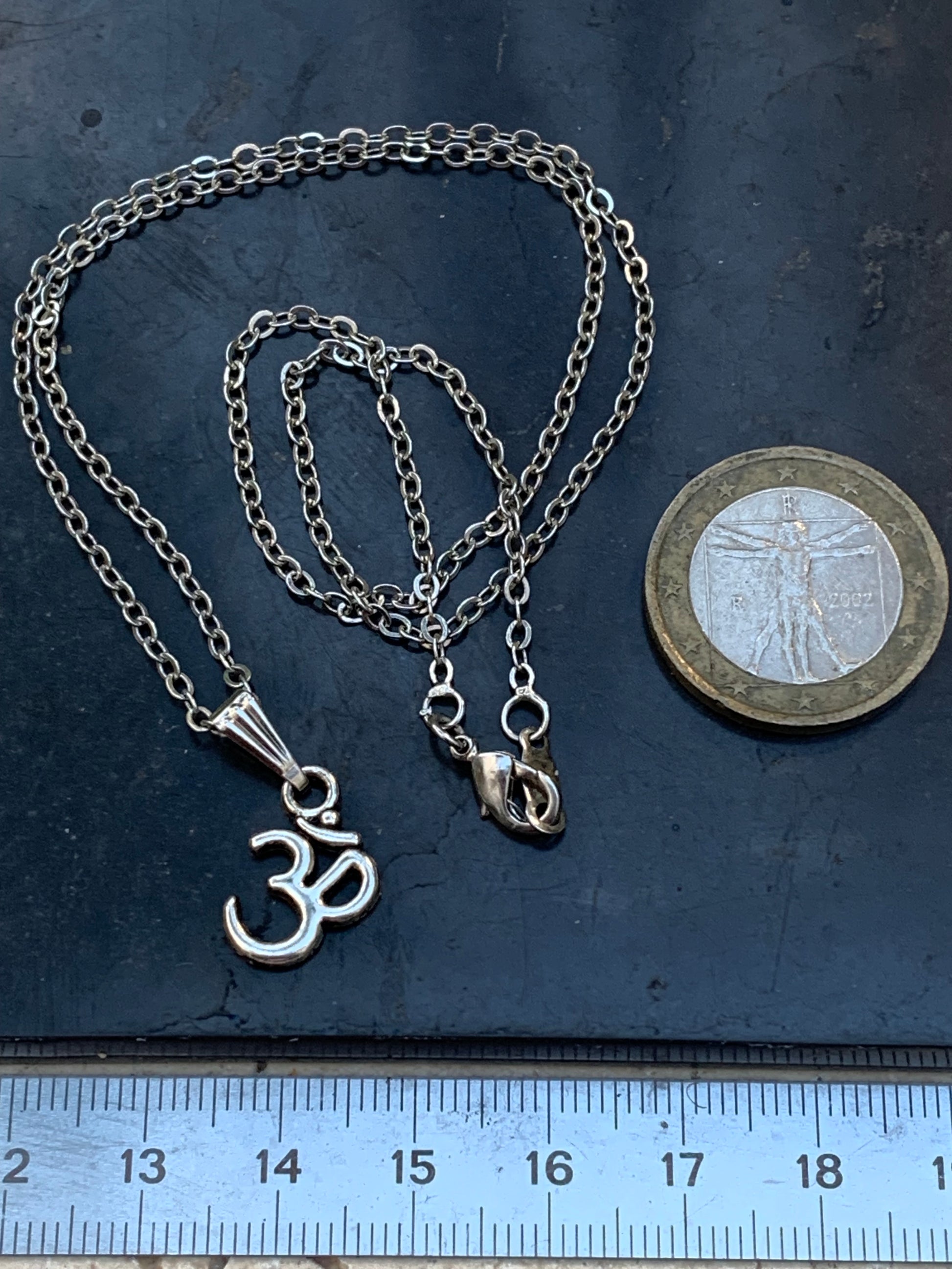 Om, pendentif en laiton argenté, de 23x12x2 millimètres -1,3 gr. Vendu avec cordon noir réglable offert, parfait !