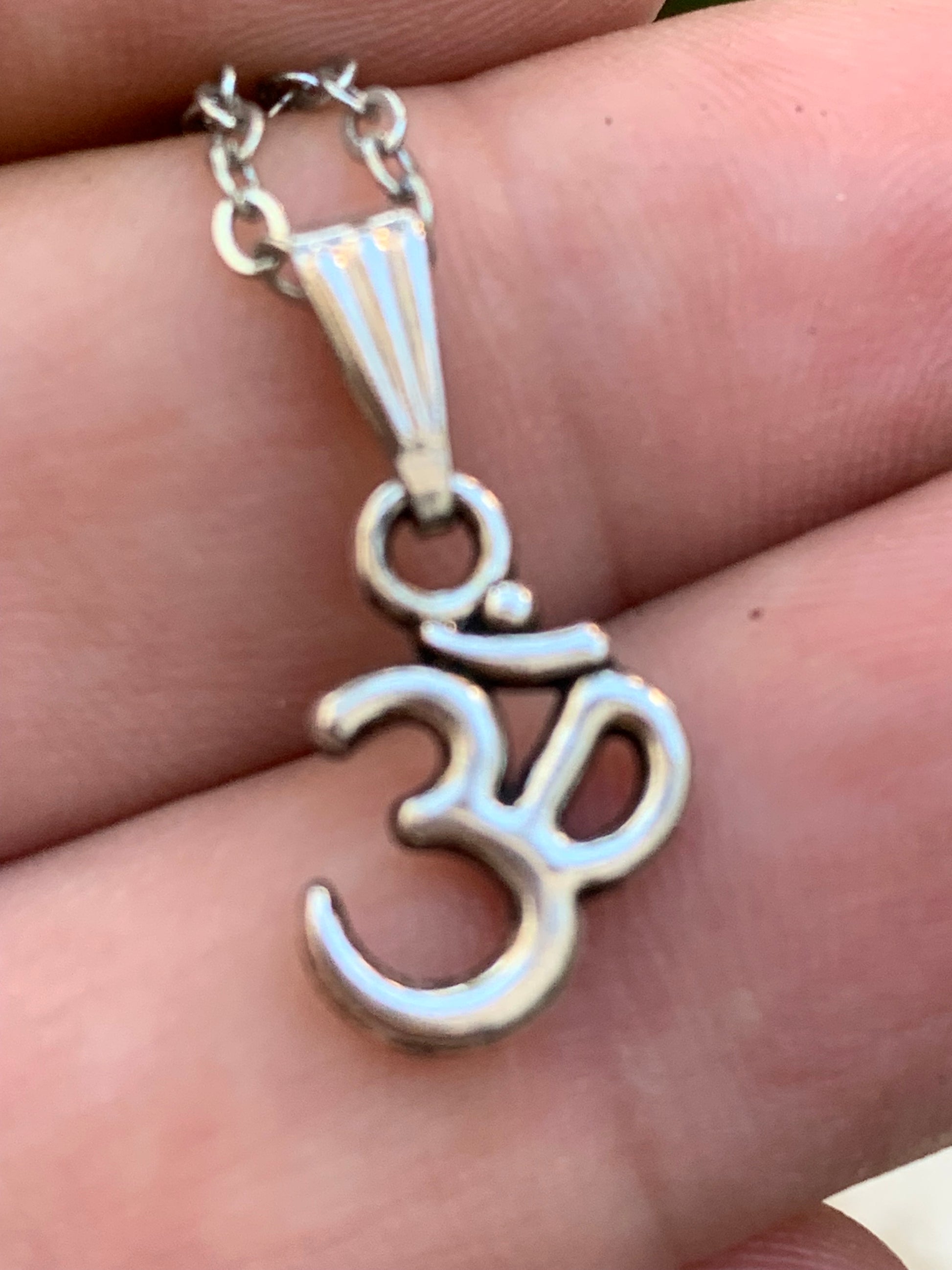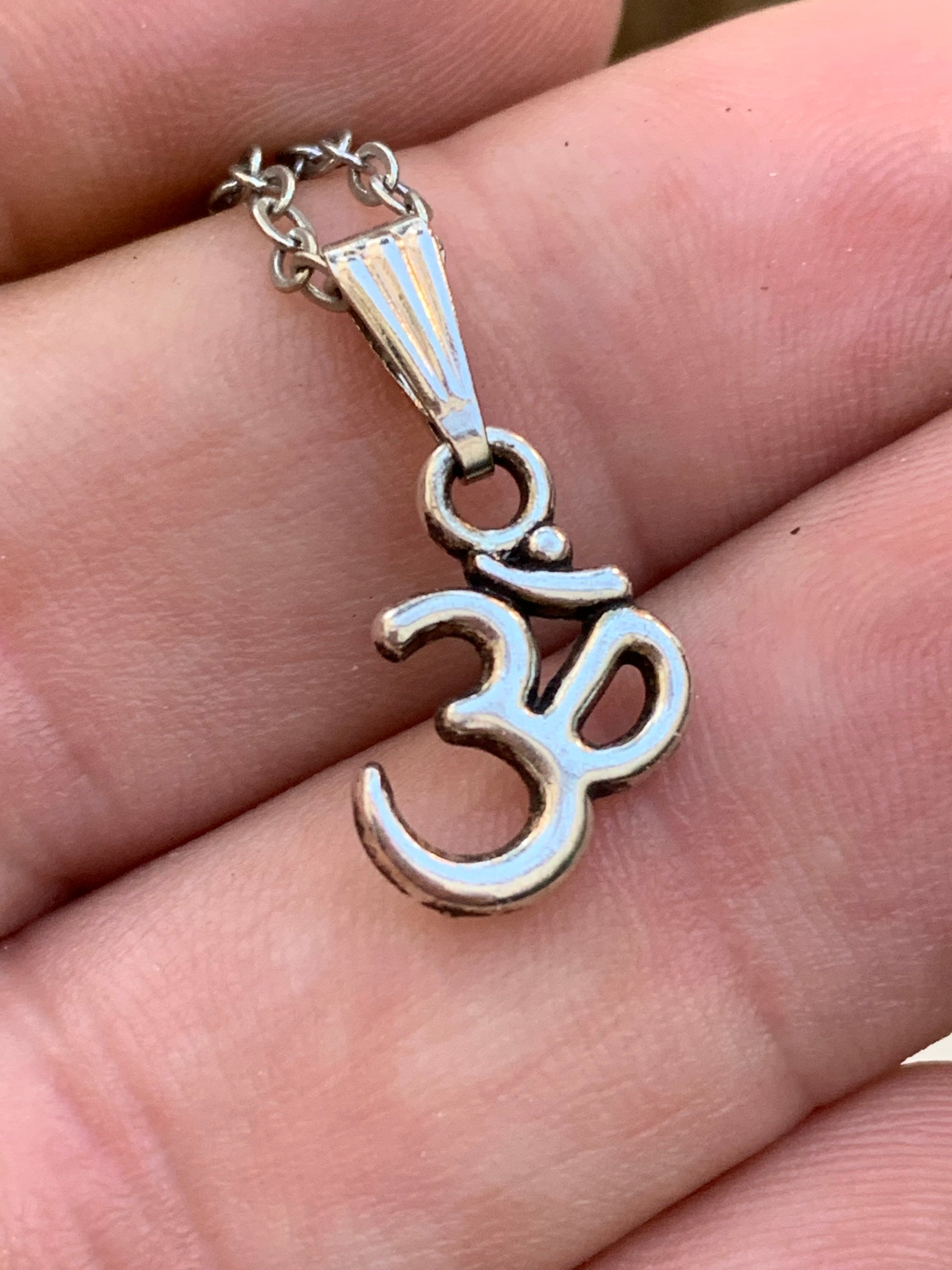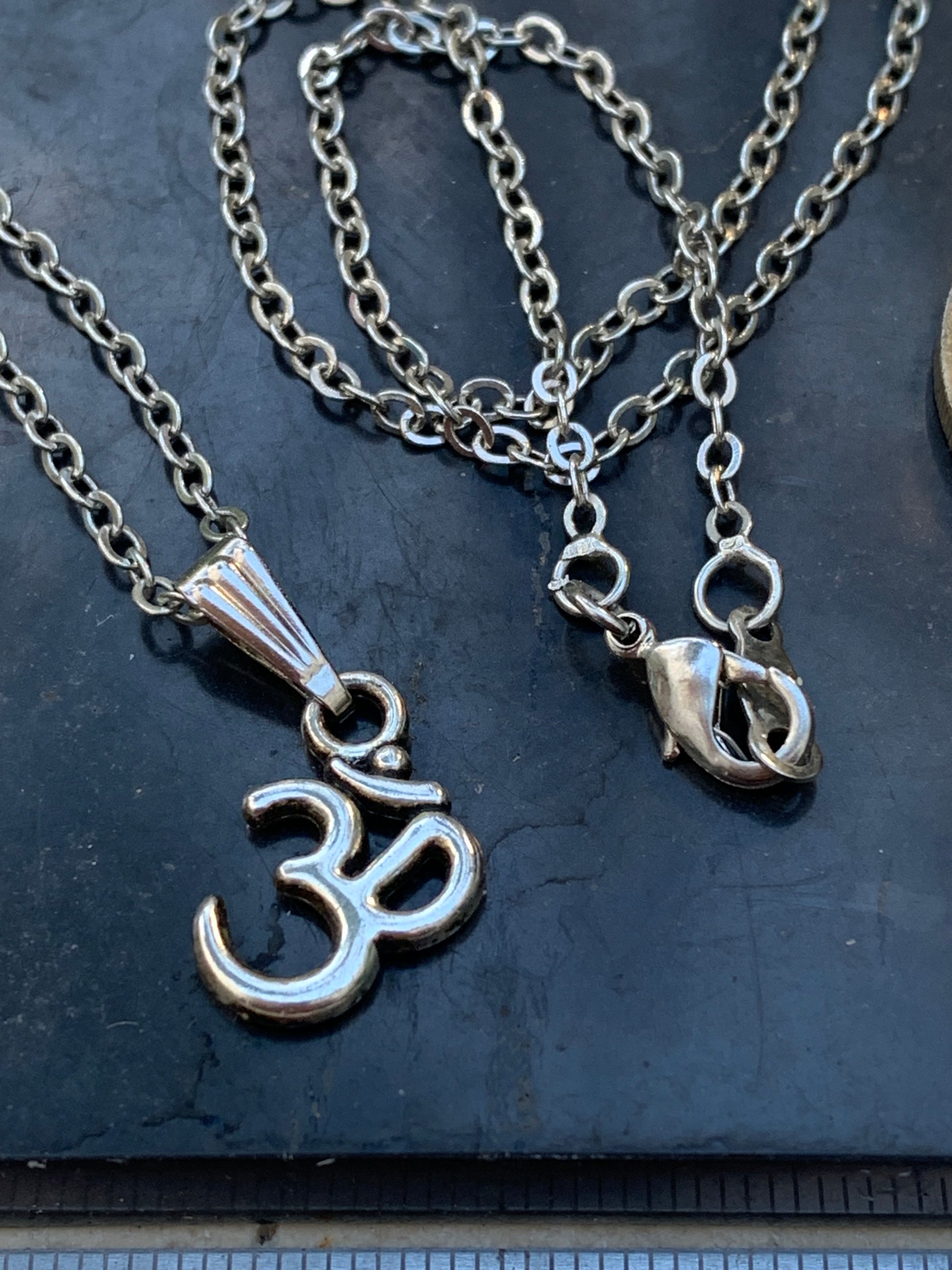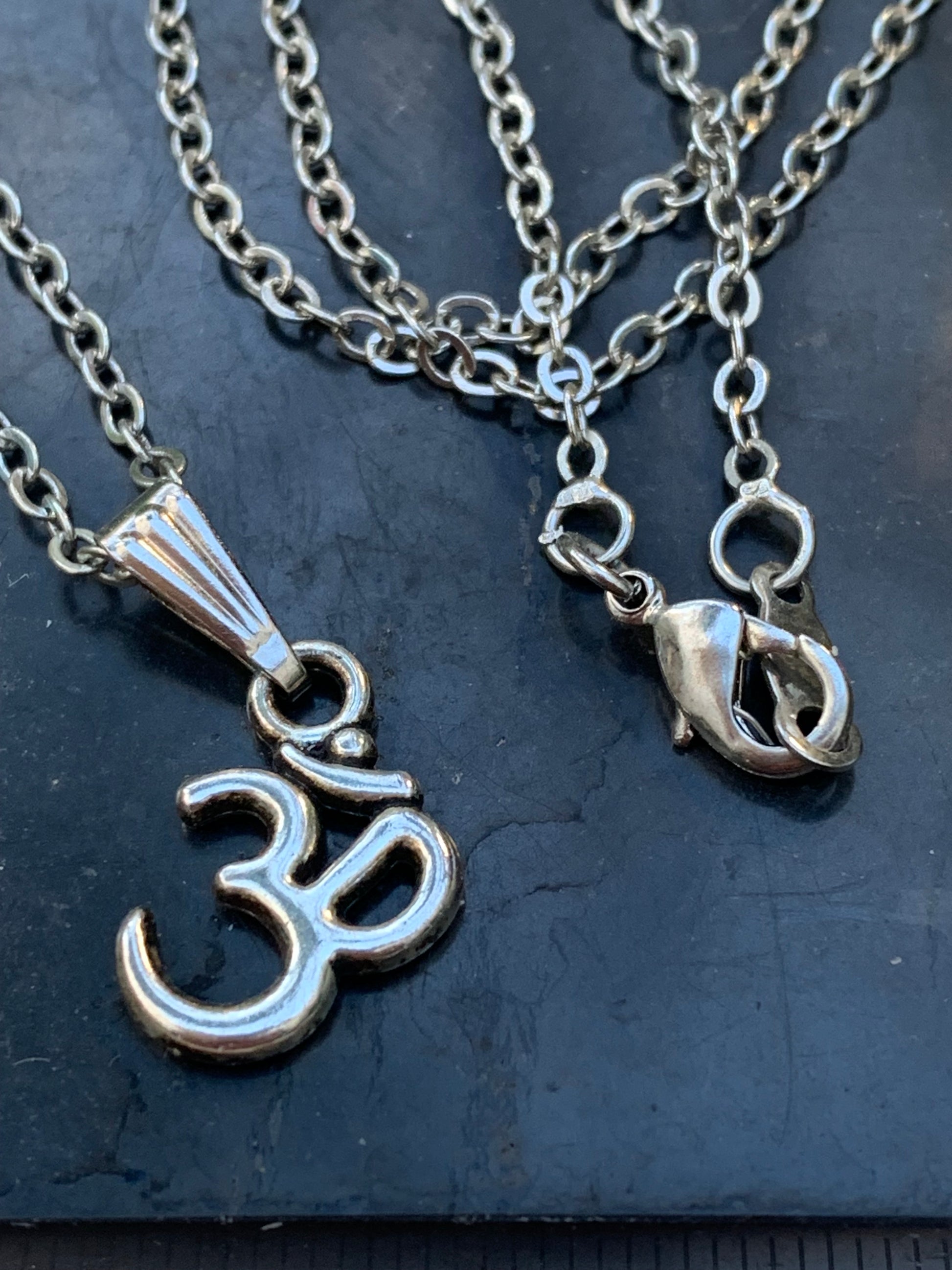 Om, pendentif en laiton argenté, de 23x12x2 millimètres -1,3 gr. Vendu avec cordon noir réglable offert, parfait !