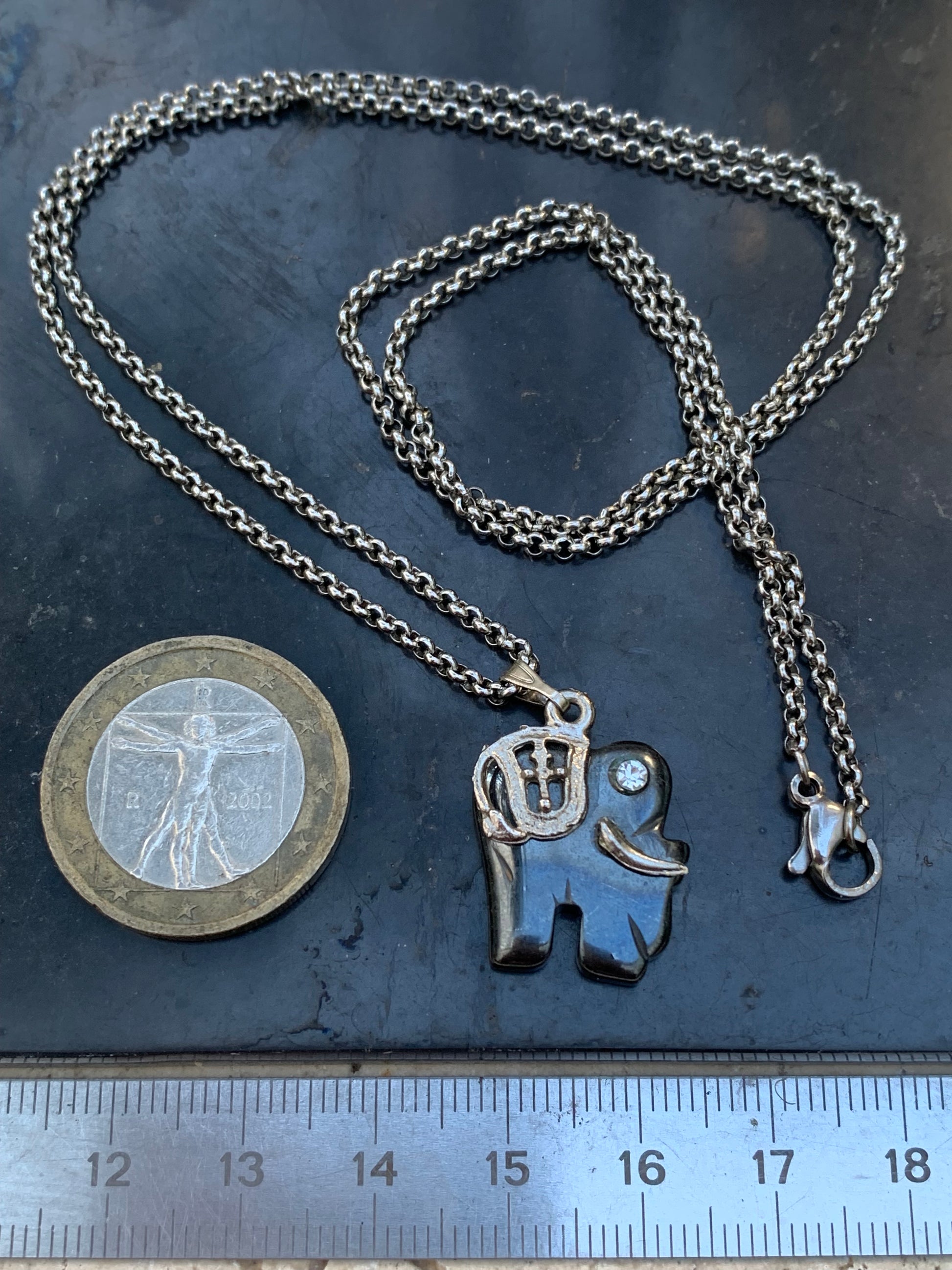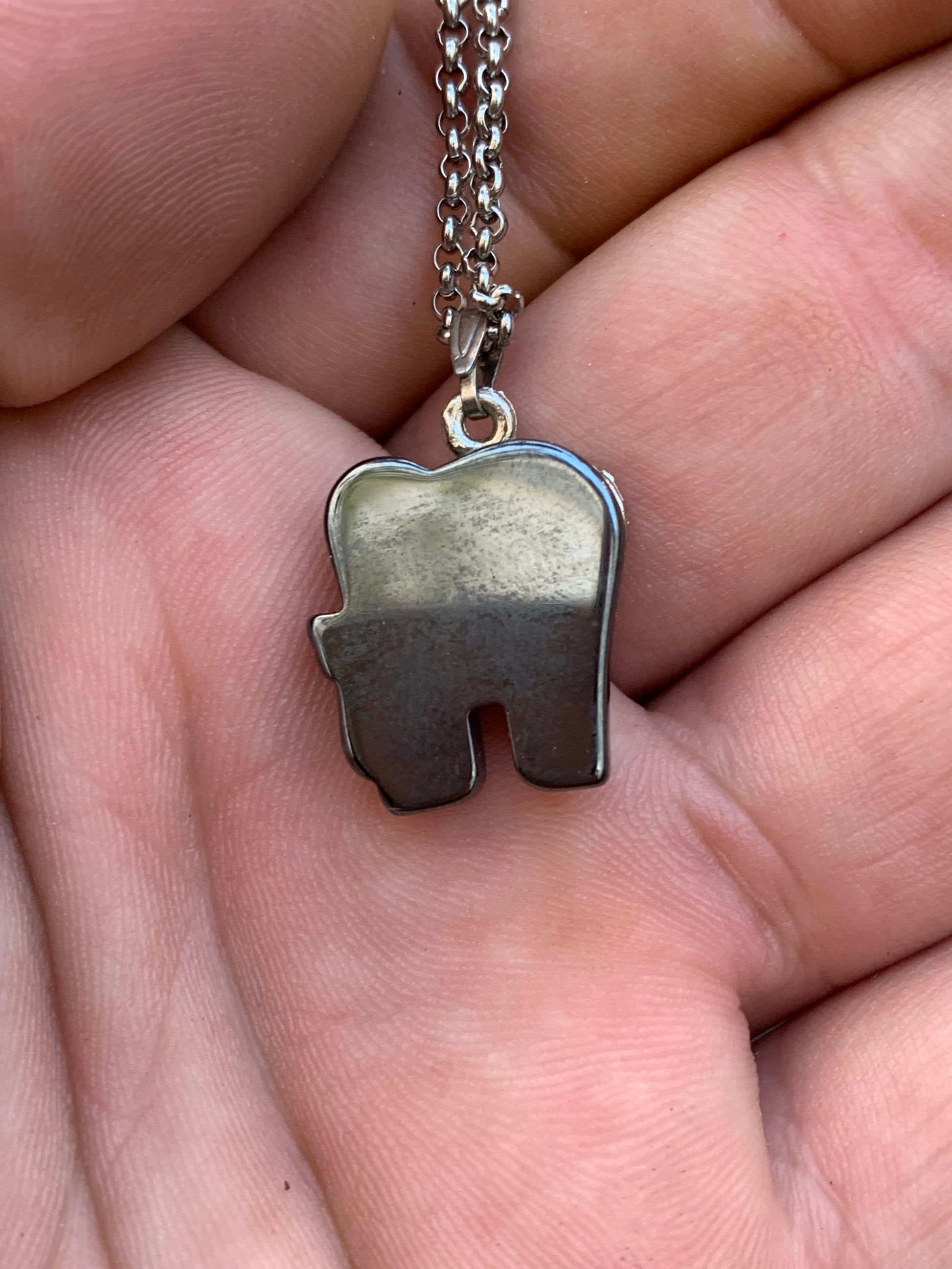 Hématite, pendentif 'Oursin avec Turquoise', de 30x27x8 millimètres - 2,9 gr. Vendu avec cordon noir réglable offert, parfait !endentif 'éléphant'et laiton argenté, de 21x11x5 millimètres - 4,8 gr. Vendu avec cordon noir réglable offert, parfait !
