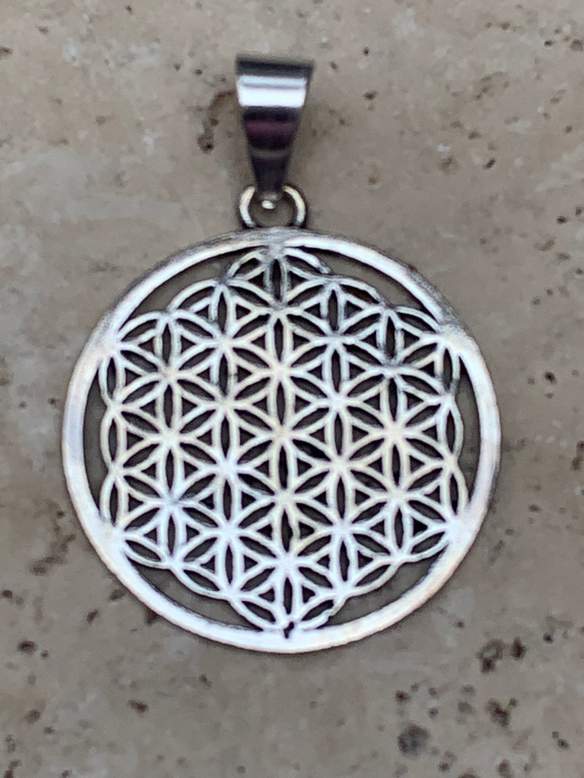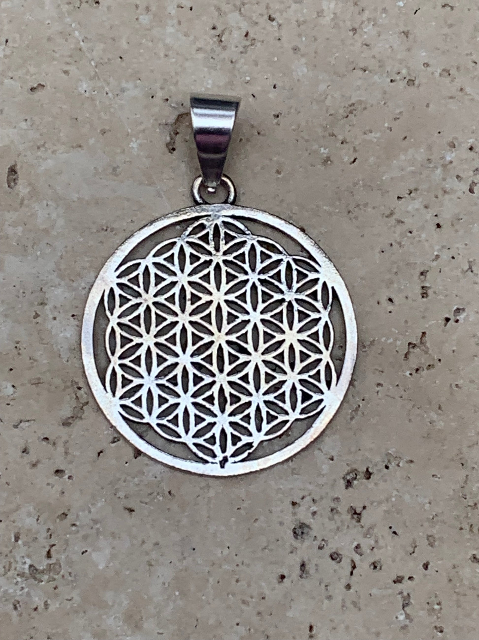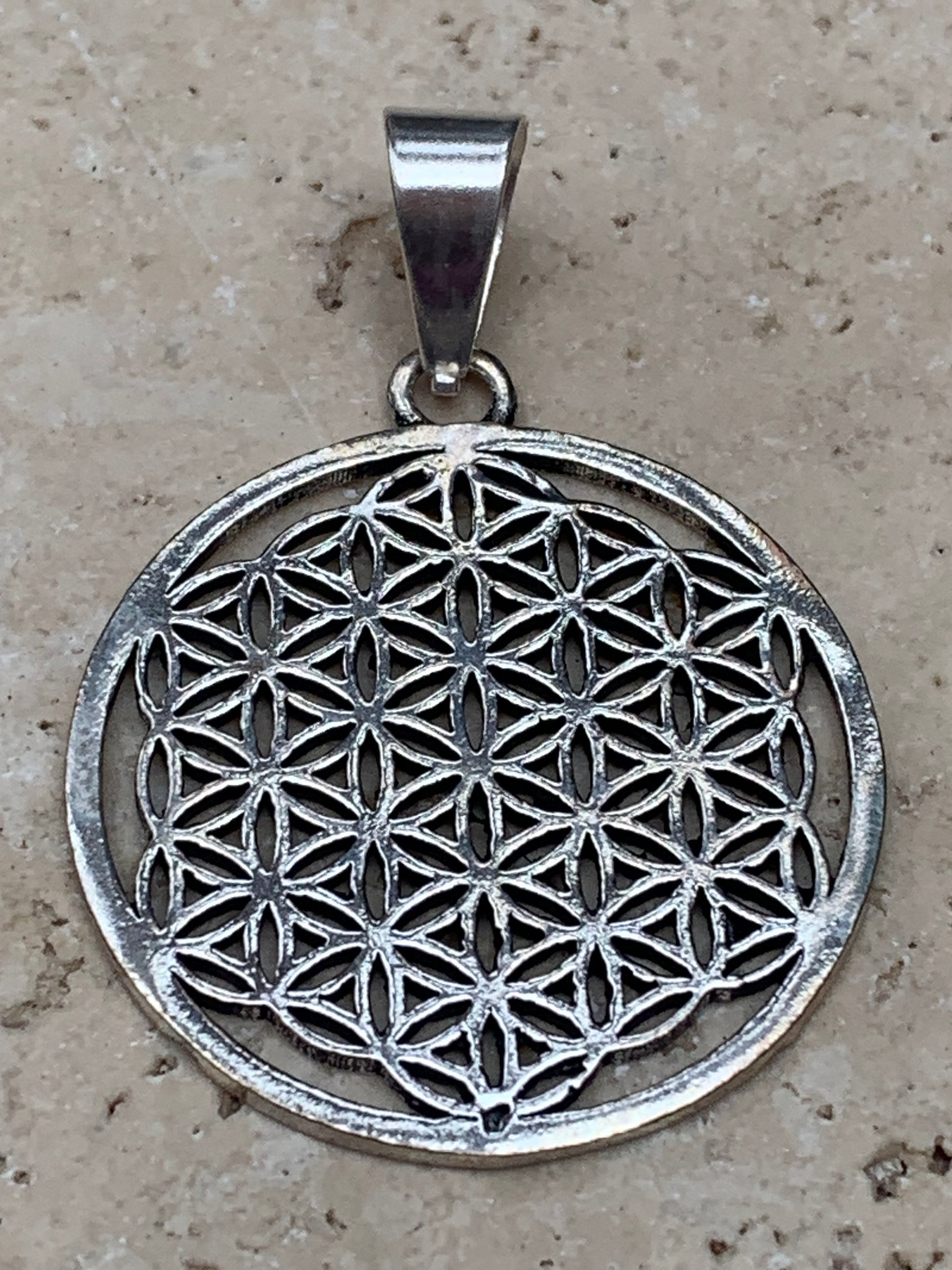 Pendentif en Argent 925 en forme de Fleur de vie, de 30 millimètres de diamètre. Vendu avec cordon noir réglable offert, parfait !