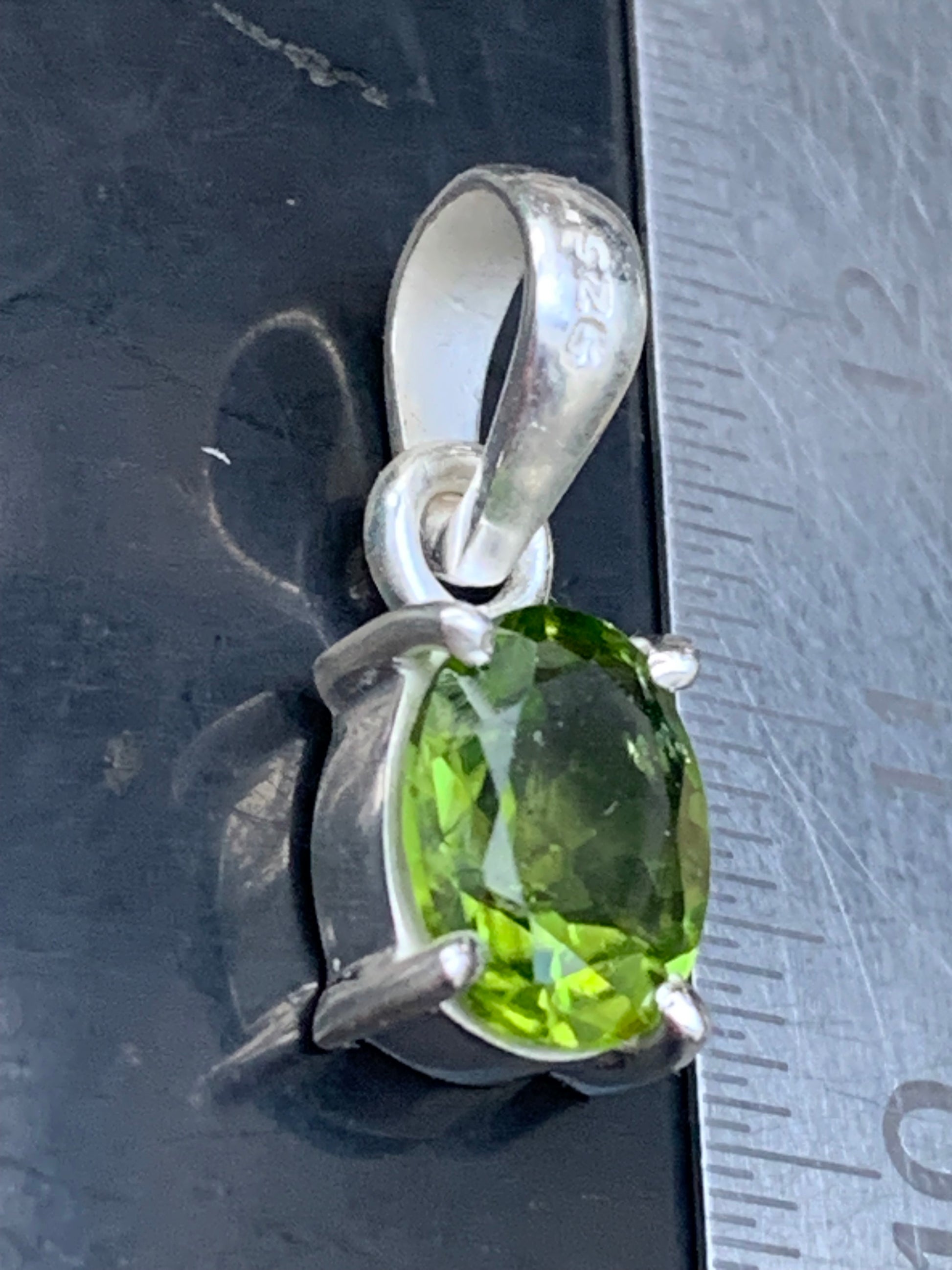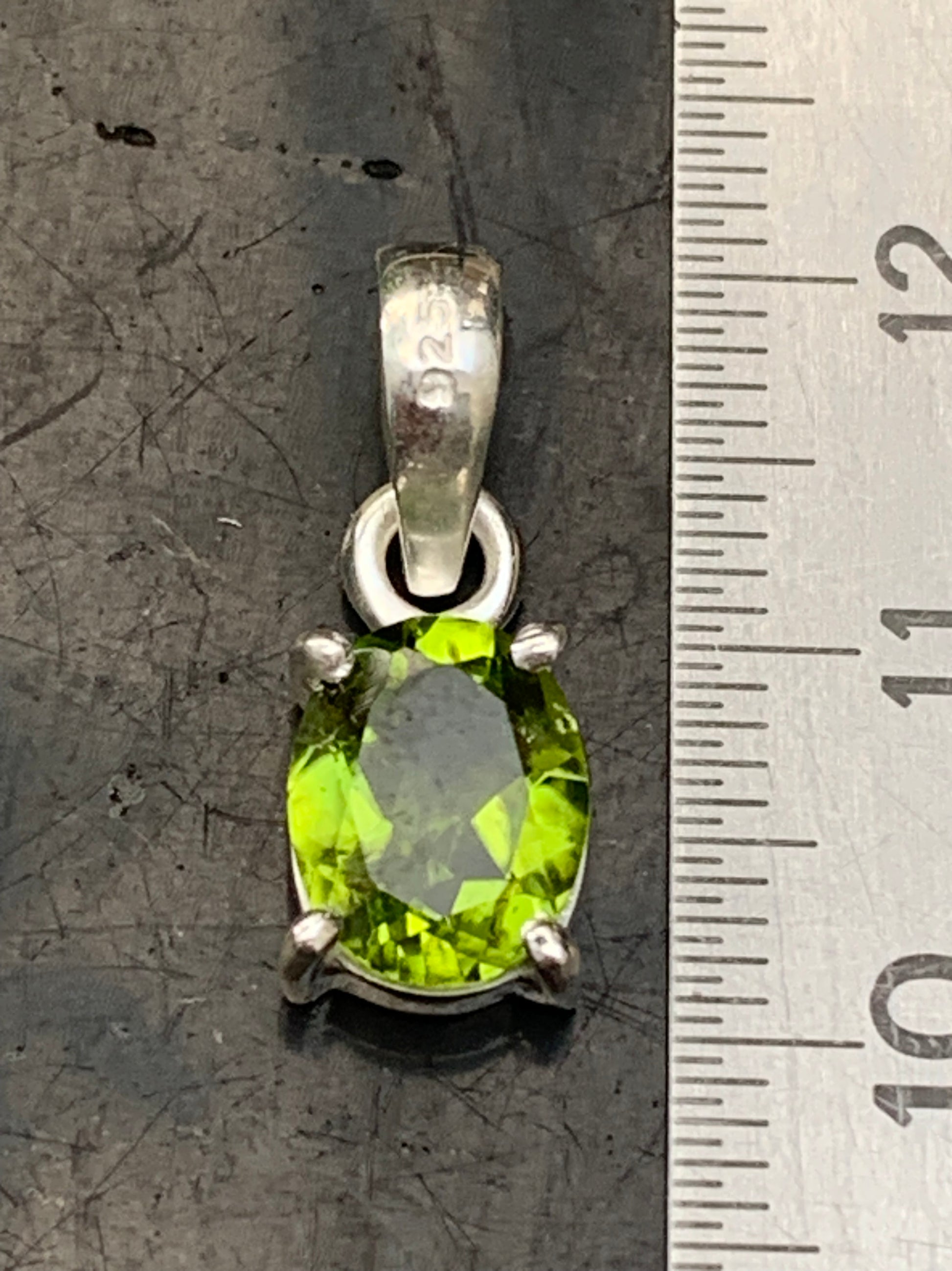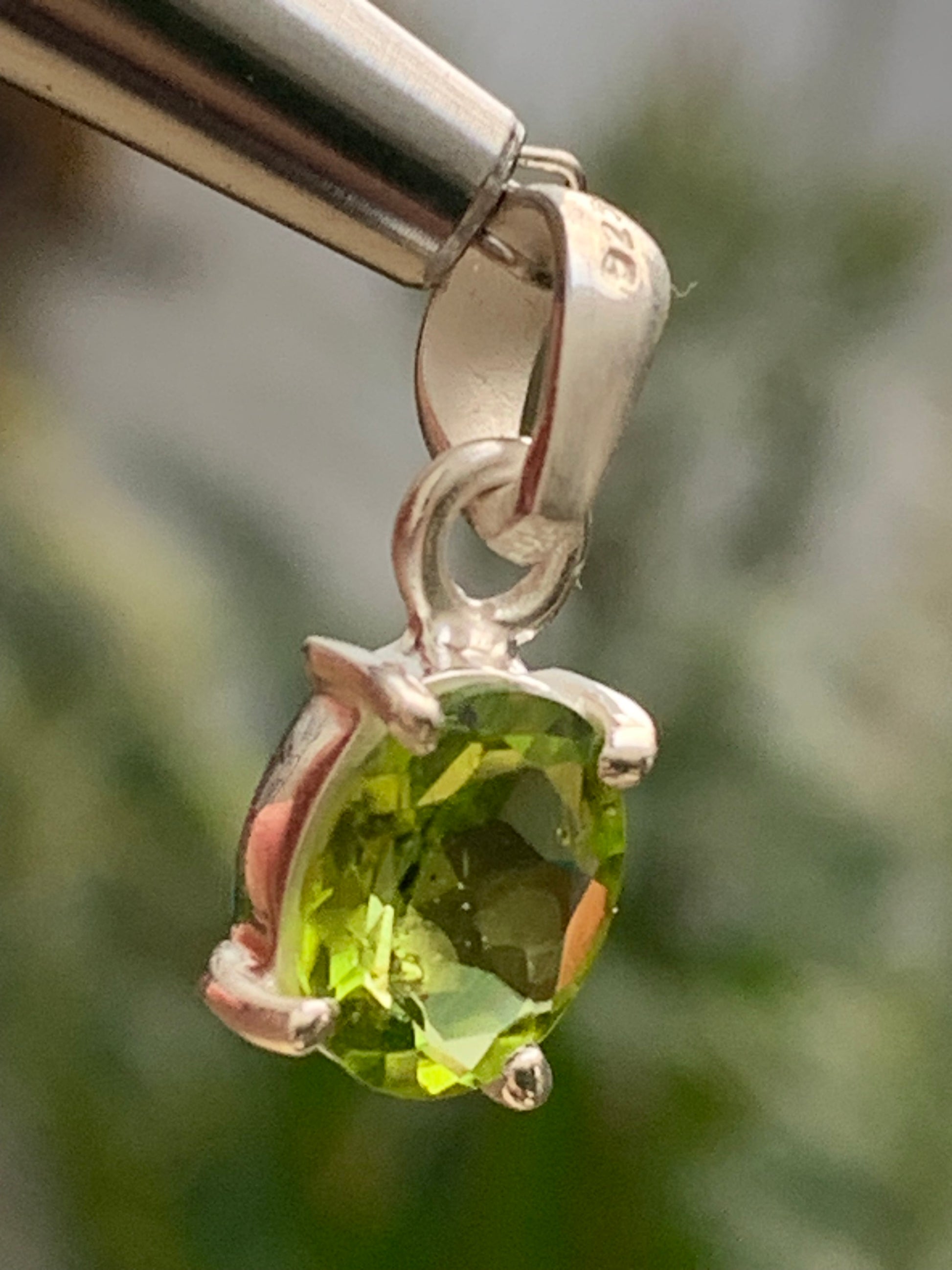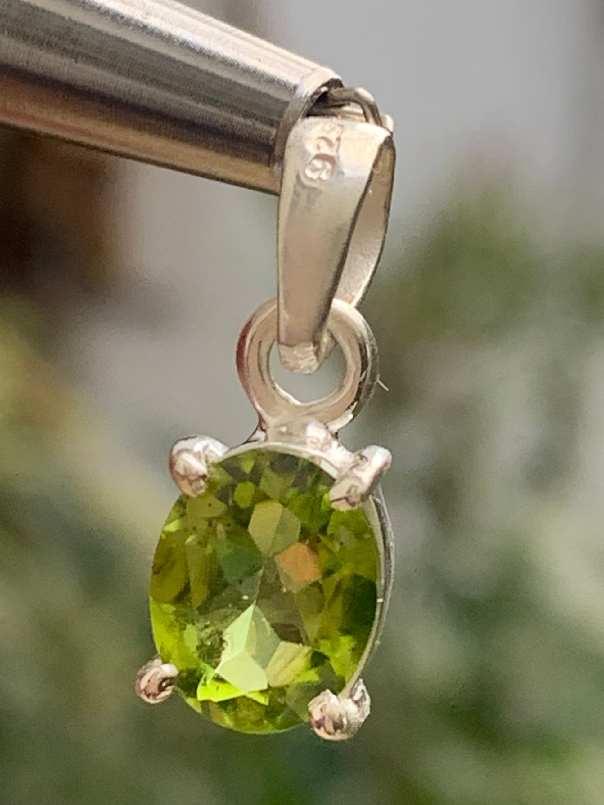 Pendentif ovale en argent avec péridot – Bijou fin et lumineux, dimensions 18 x 8 x 5 mm !