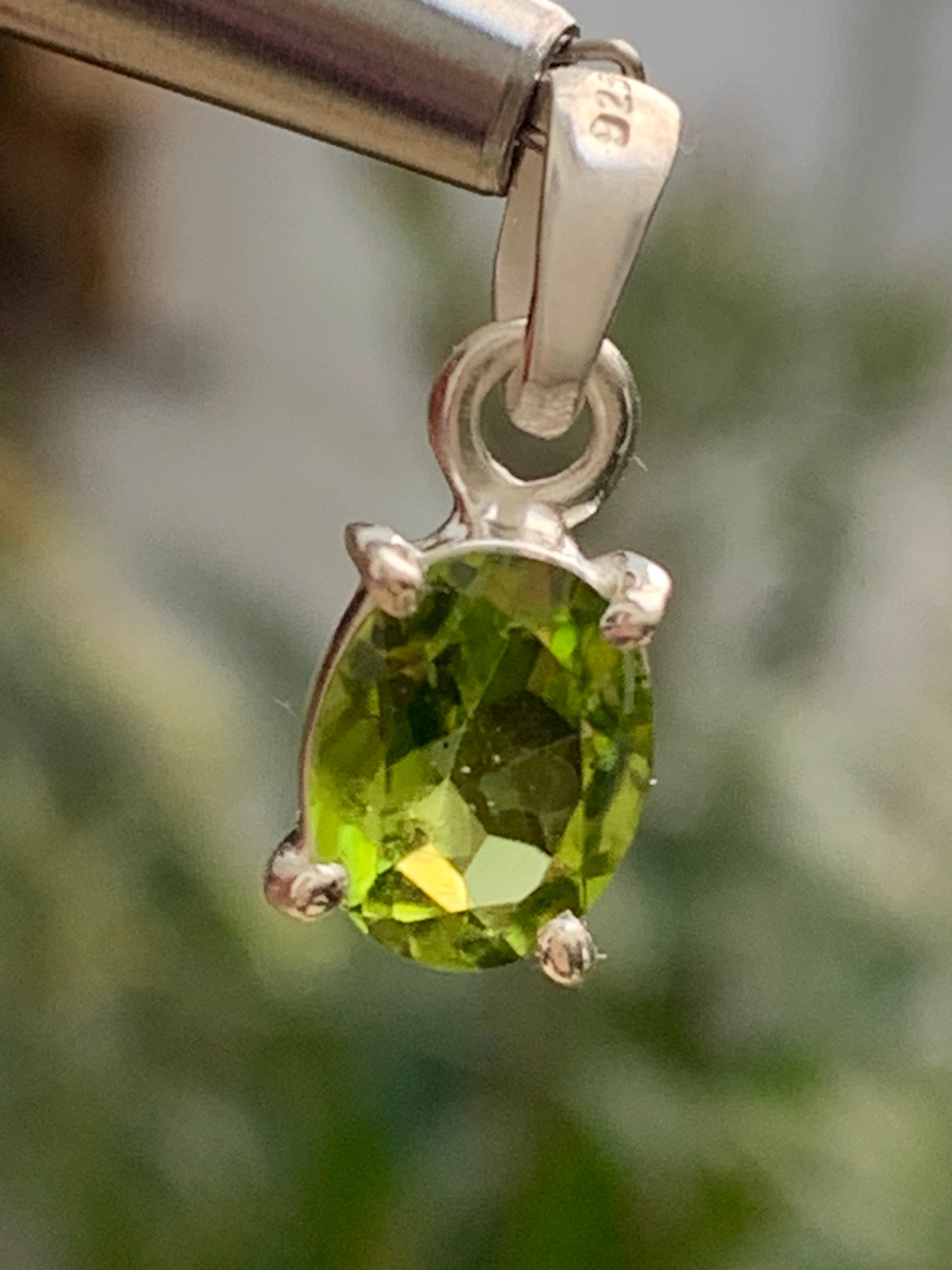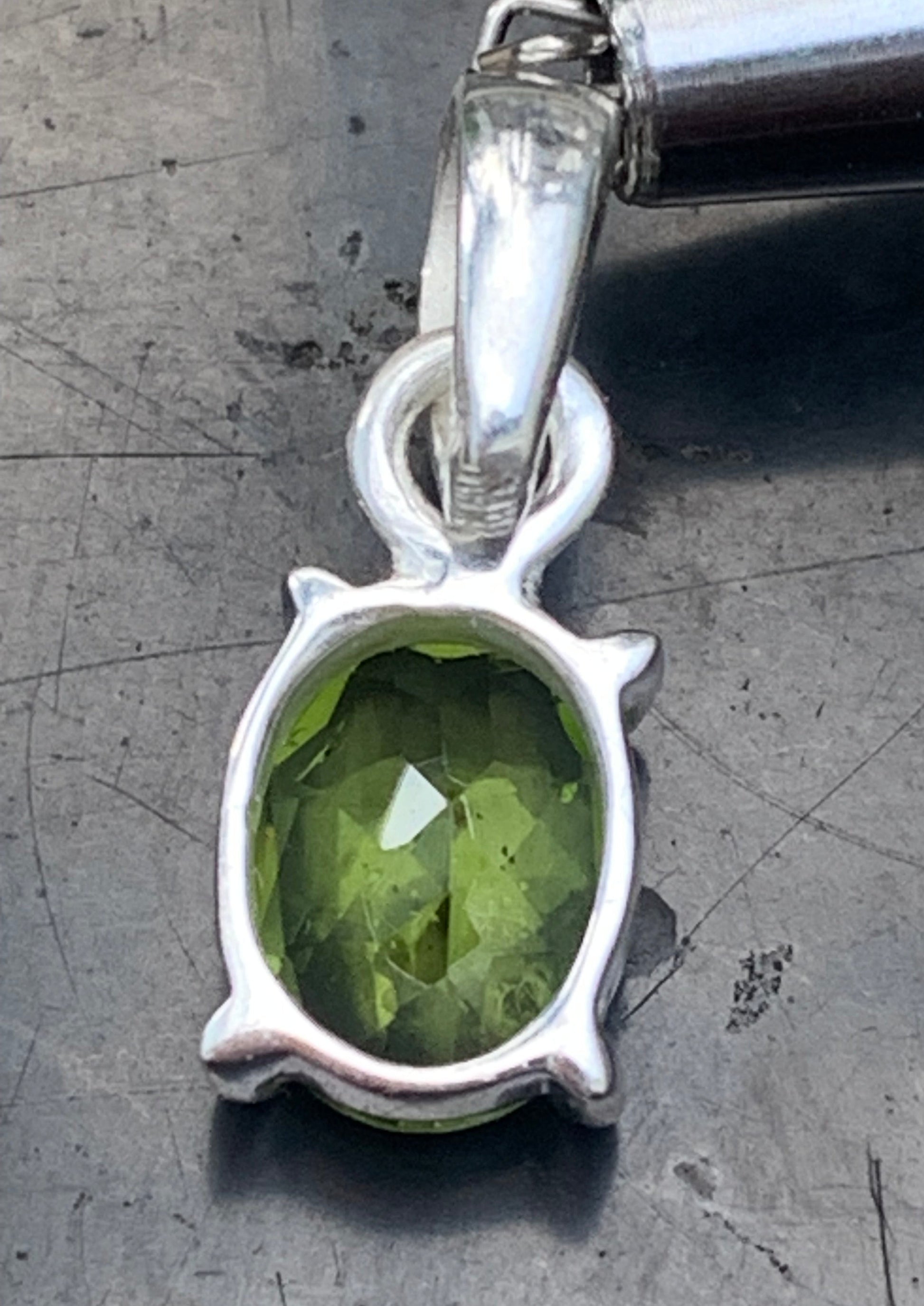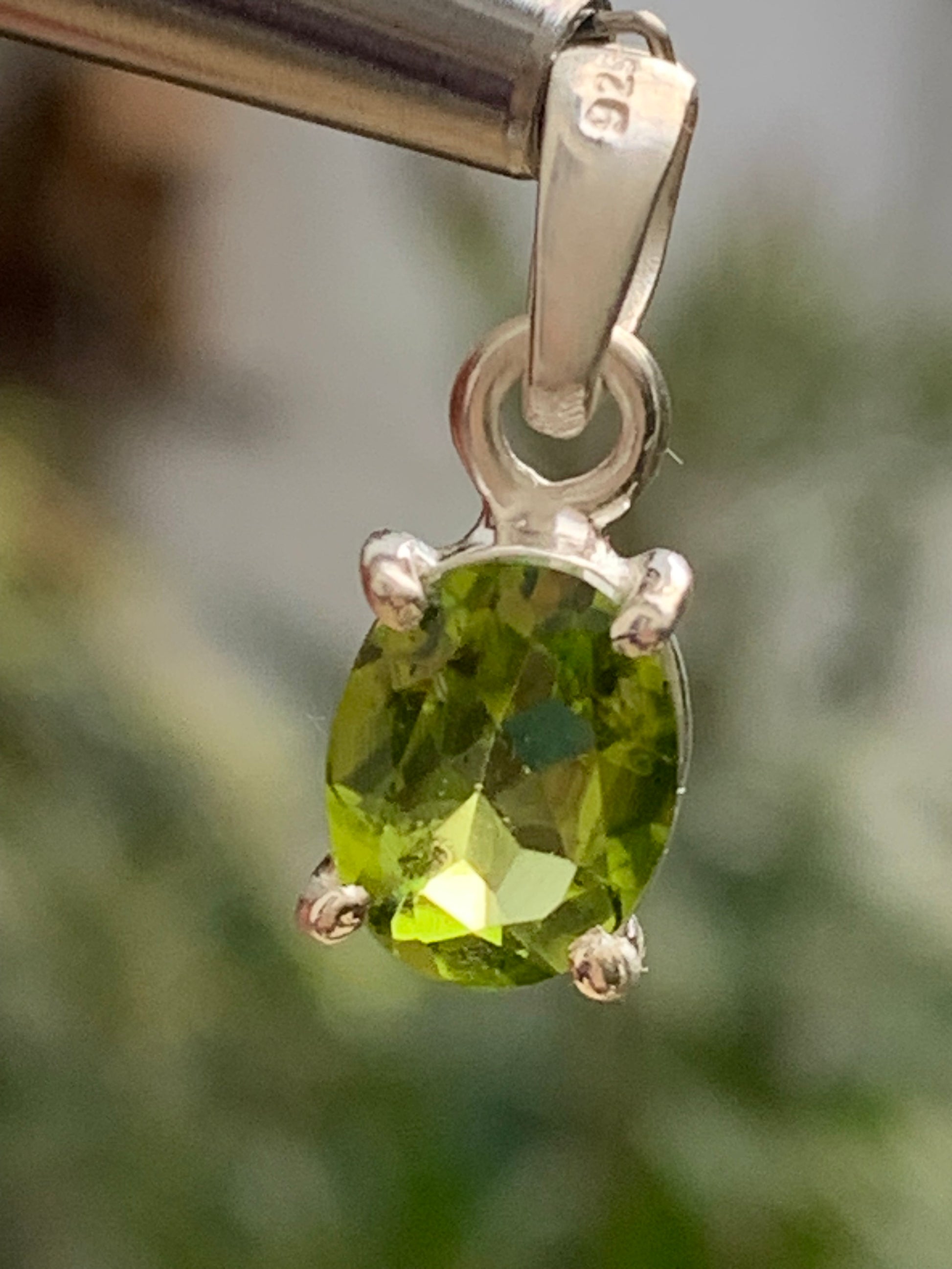 Pendentif ovale en argent avec péridot – Bijou fin et lumineux, dimensions 18 x 8 x 5 mm !