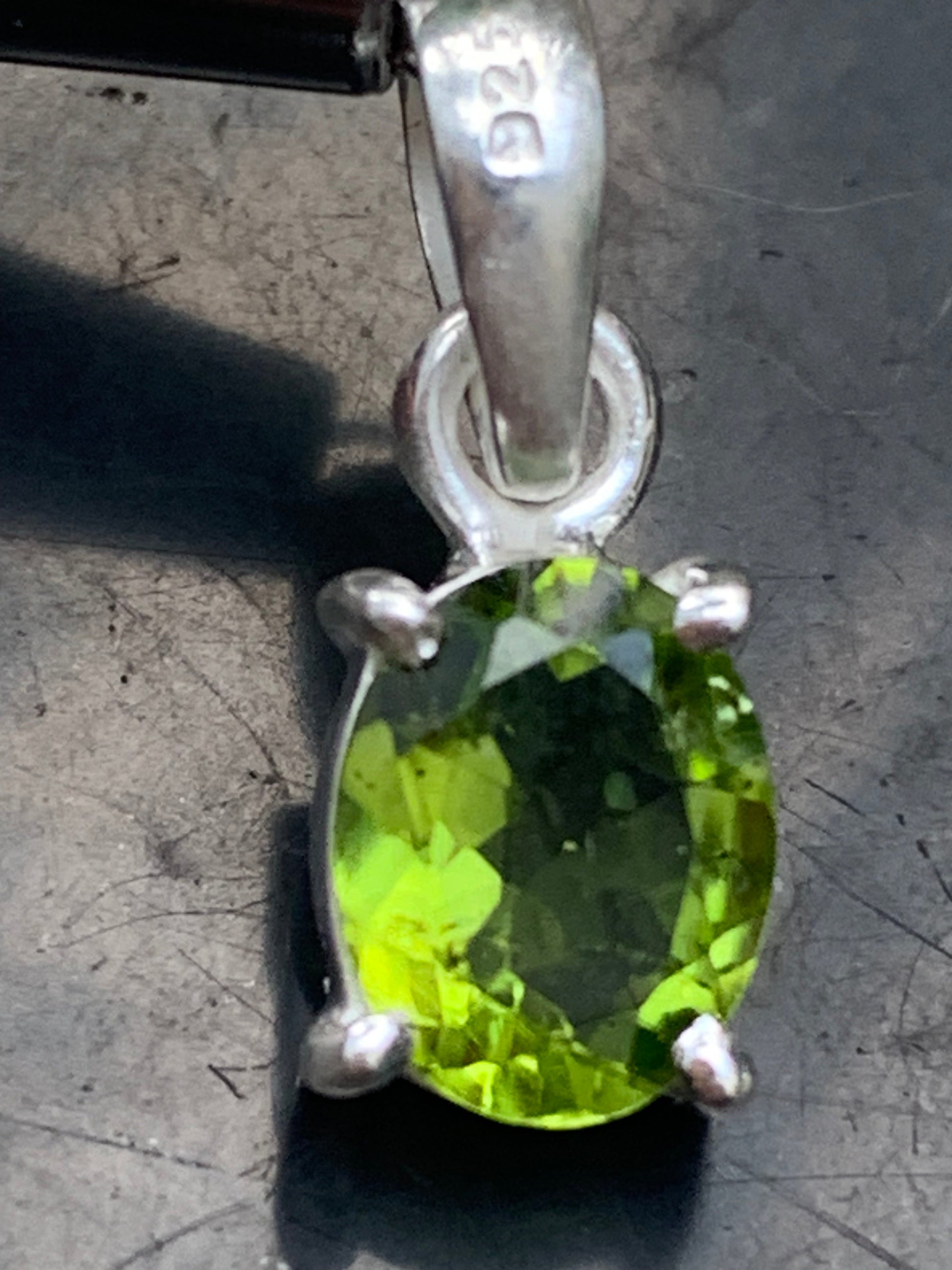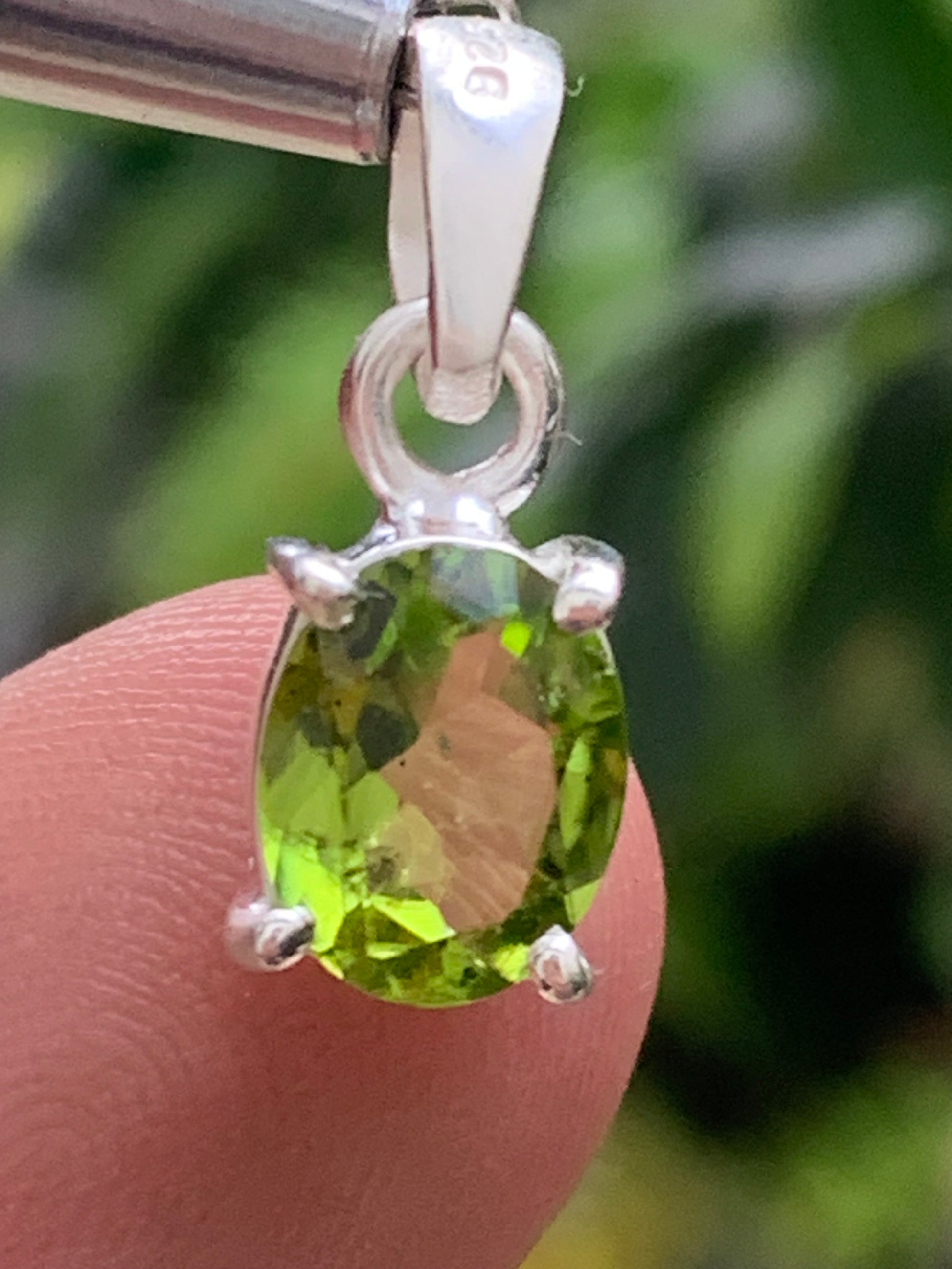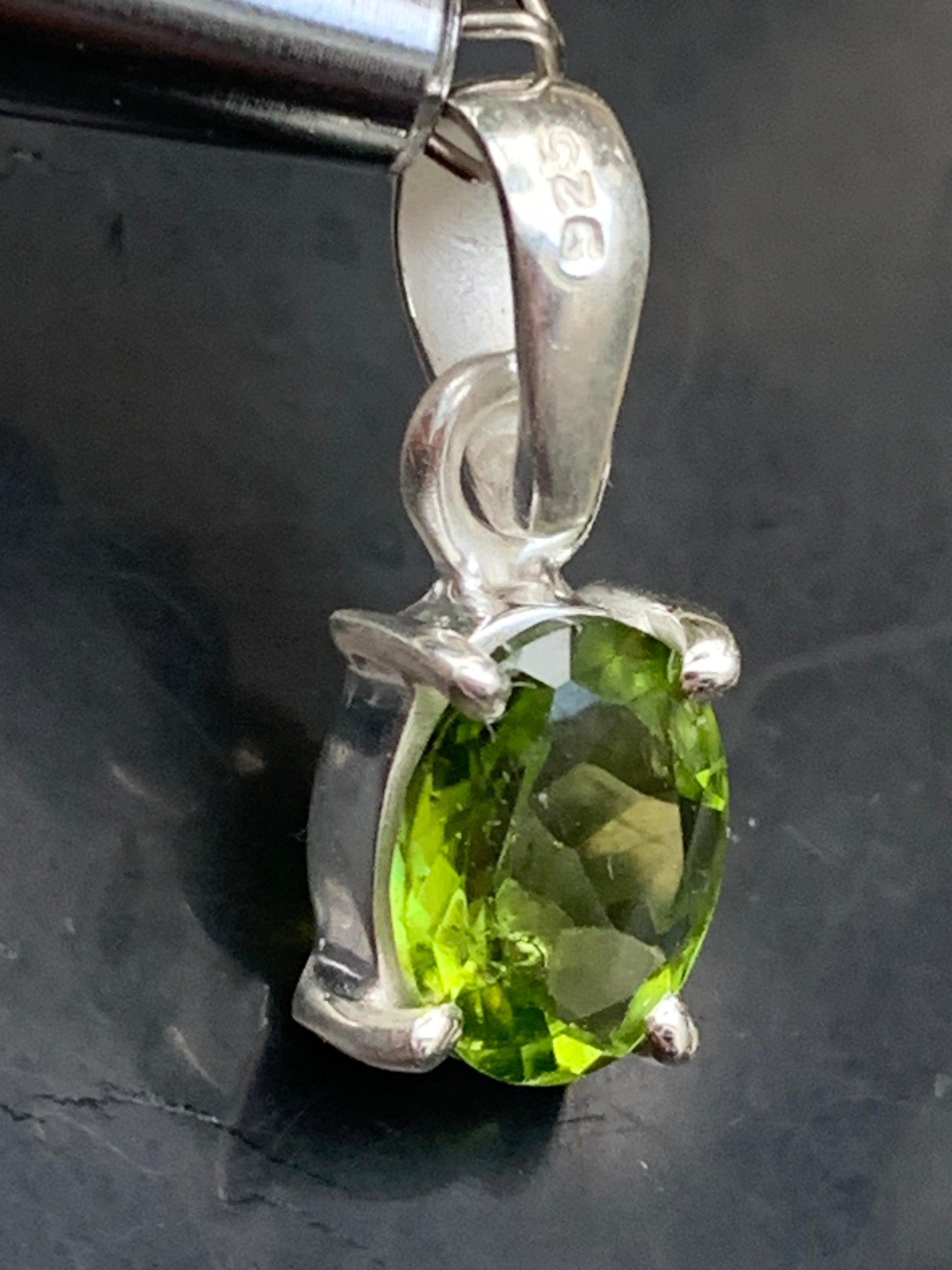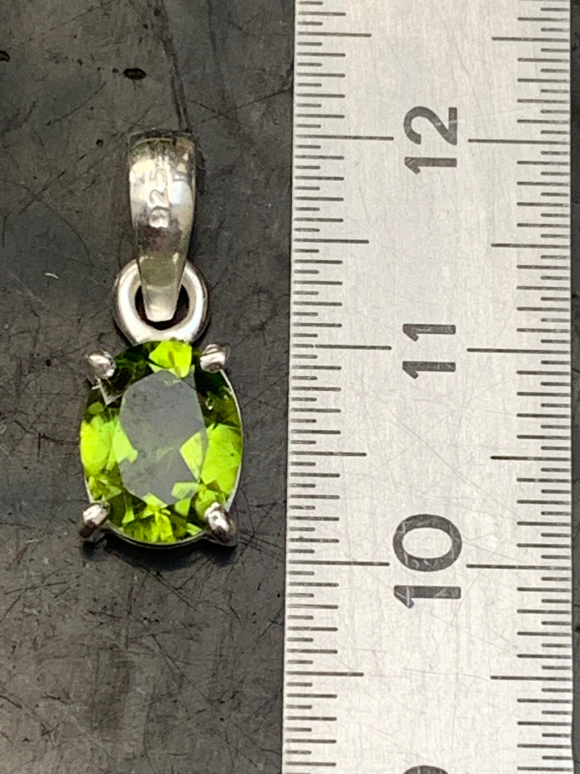 Pendentif ovale en argent avec péridot – Bijou fin et lumineux, dimensions 18 x 8 x 5 mm !