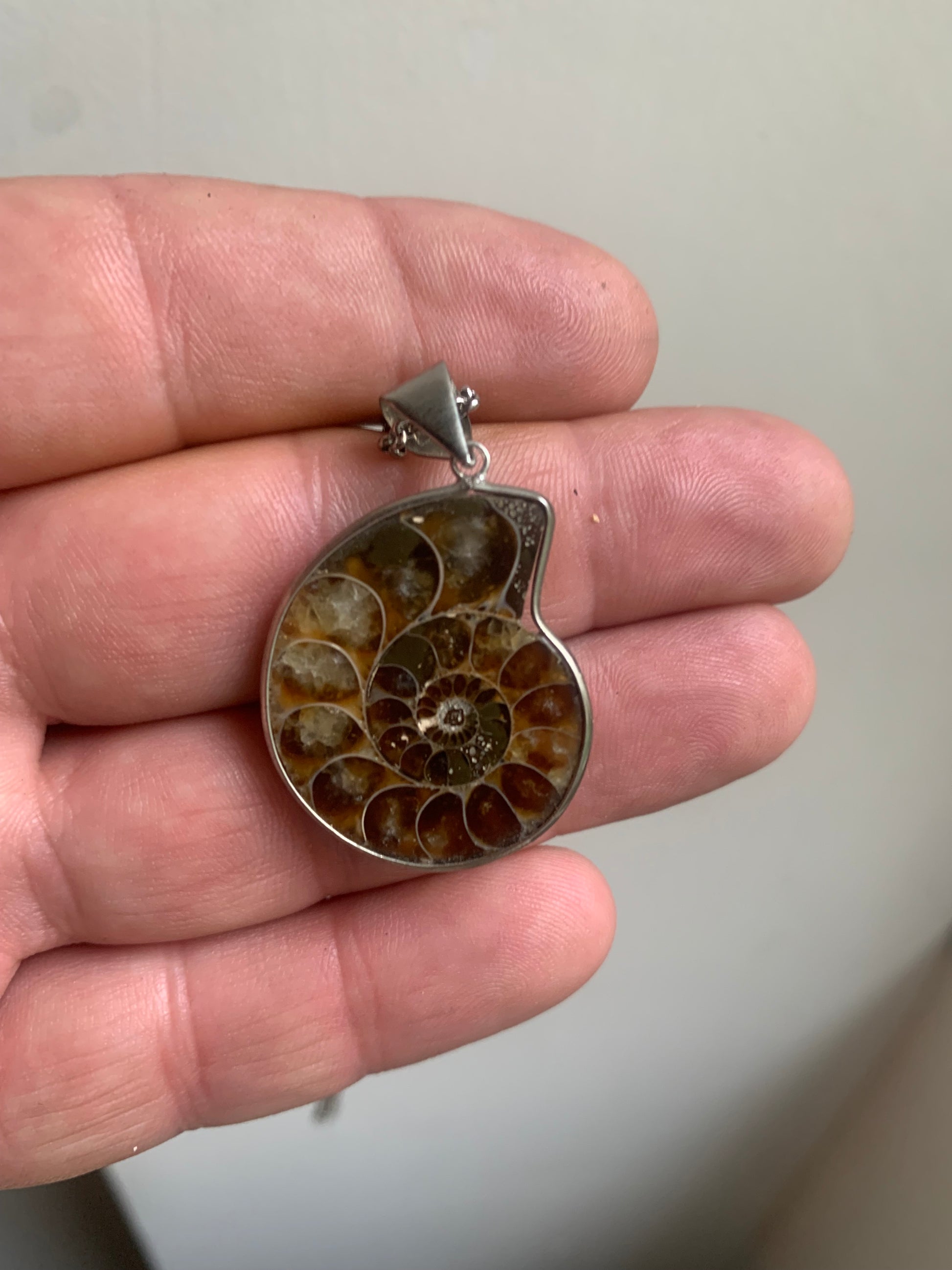 Pendentifs d'Ammonites fossiles, disponibles en 2 tailles, 60x50x20 et 35x25x10 mm. Chaque pièce est authentique et unique, révélant les spirales naturelles et les motifs fascinants de ce fossile. Livrés avec cordon coulissant, prêt à porté ou à offrir !