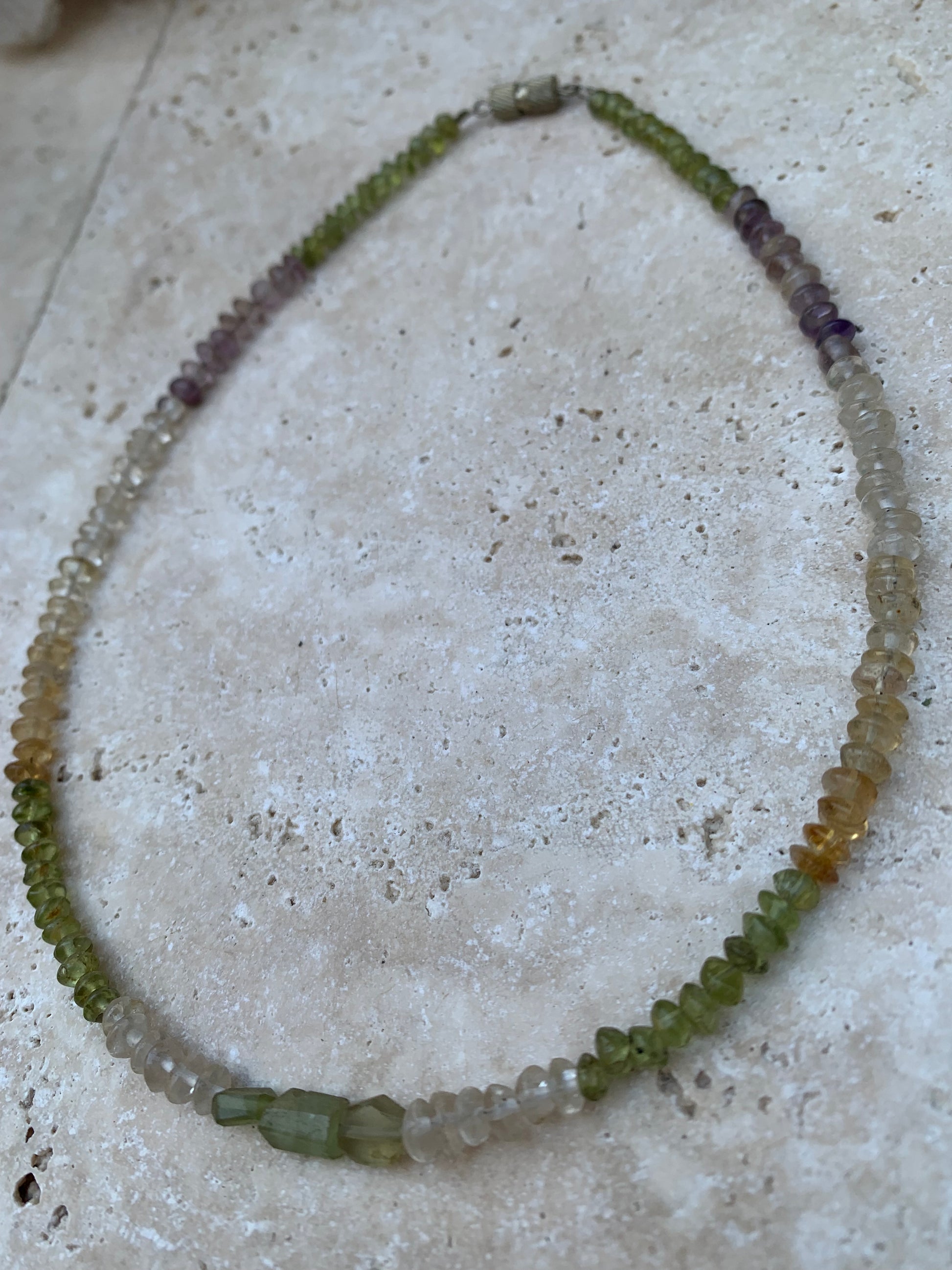 💎 Type de perle : Améthyste, cristal de roche, citrine, et péridot - Finition 'pastille', polie et brillante