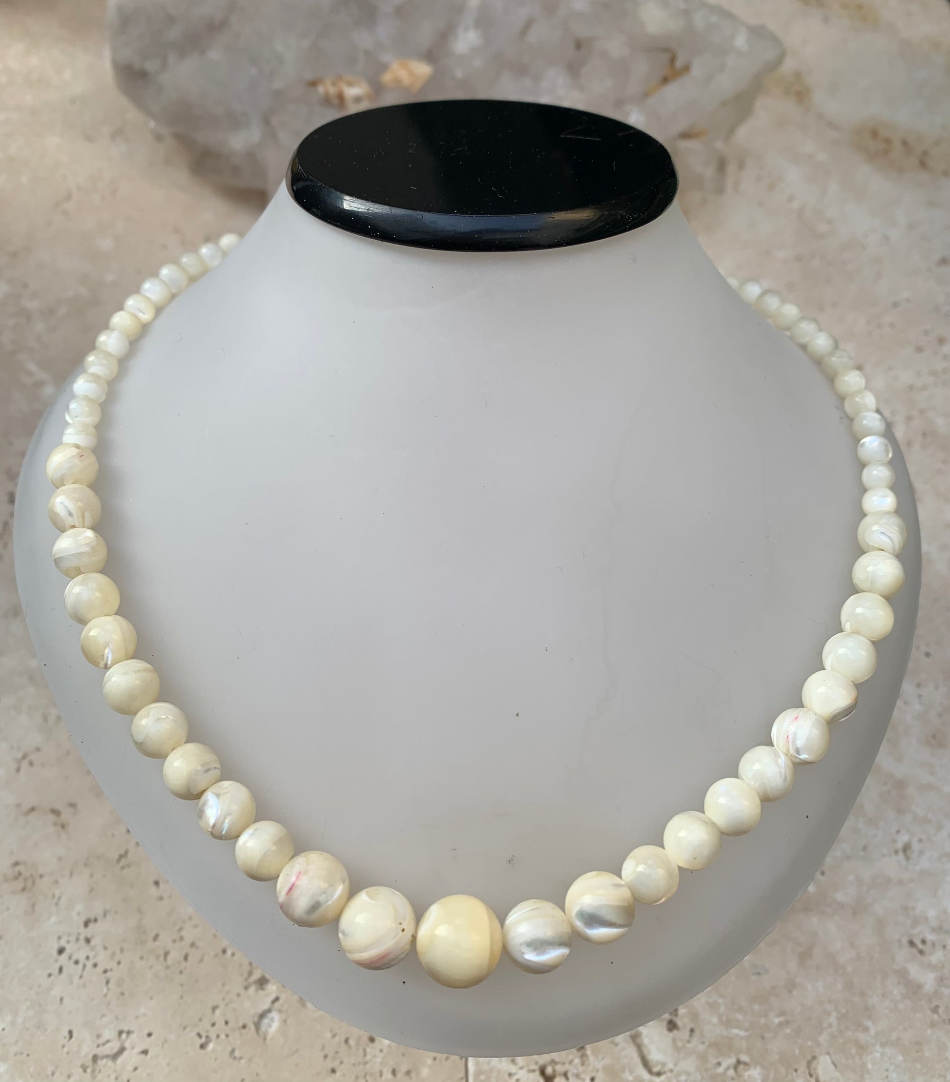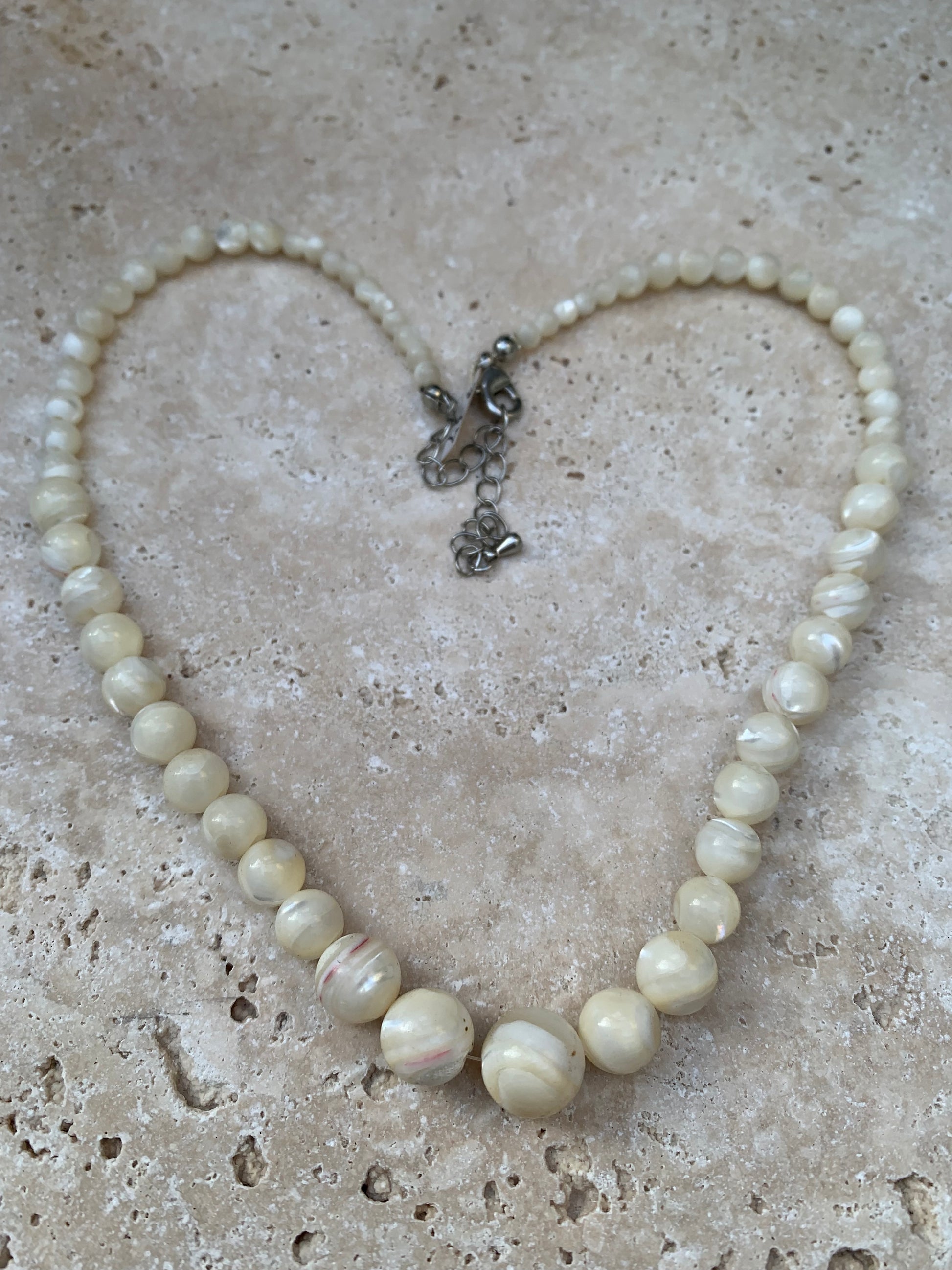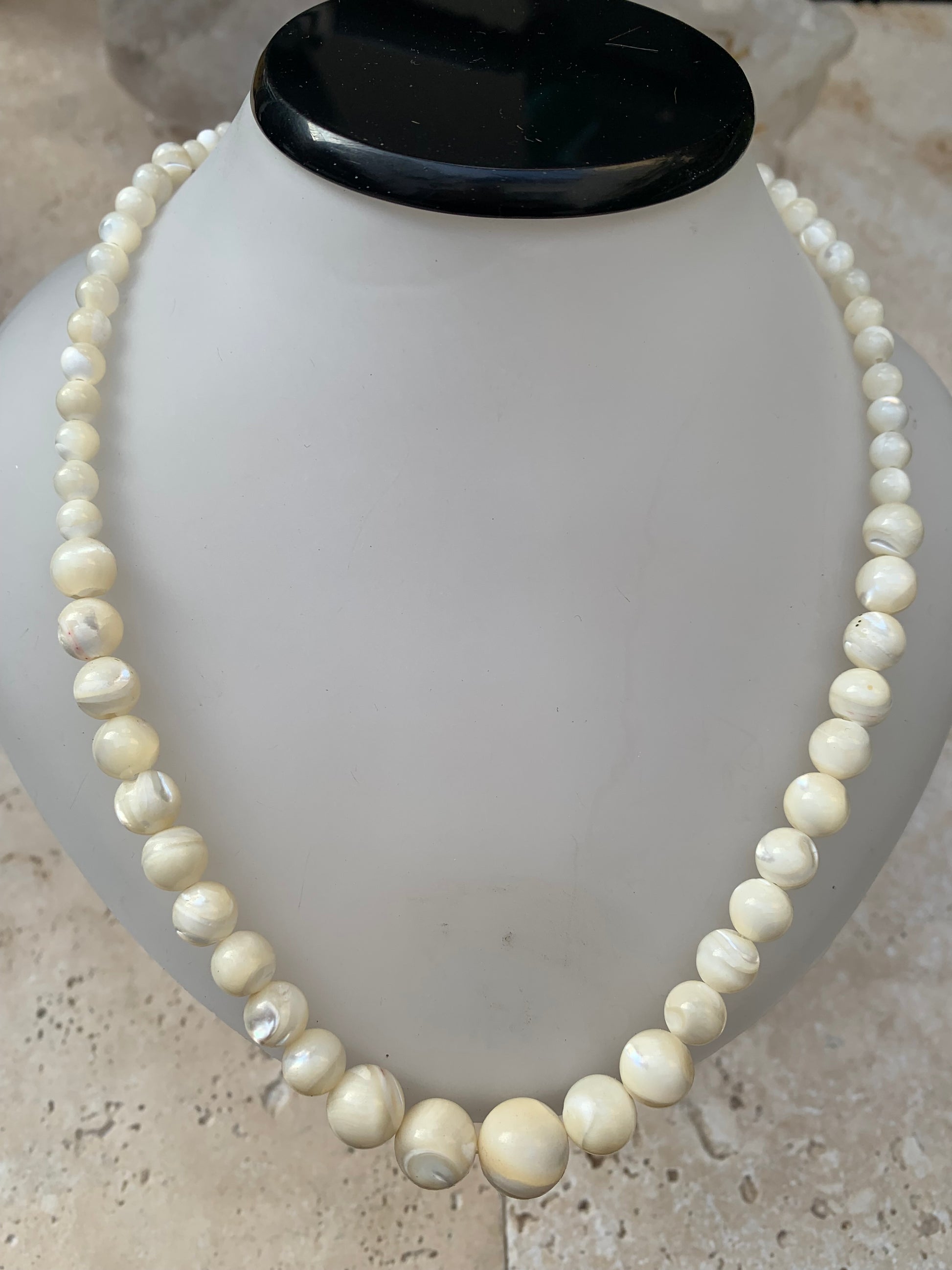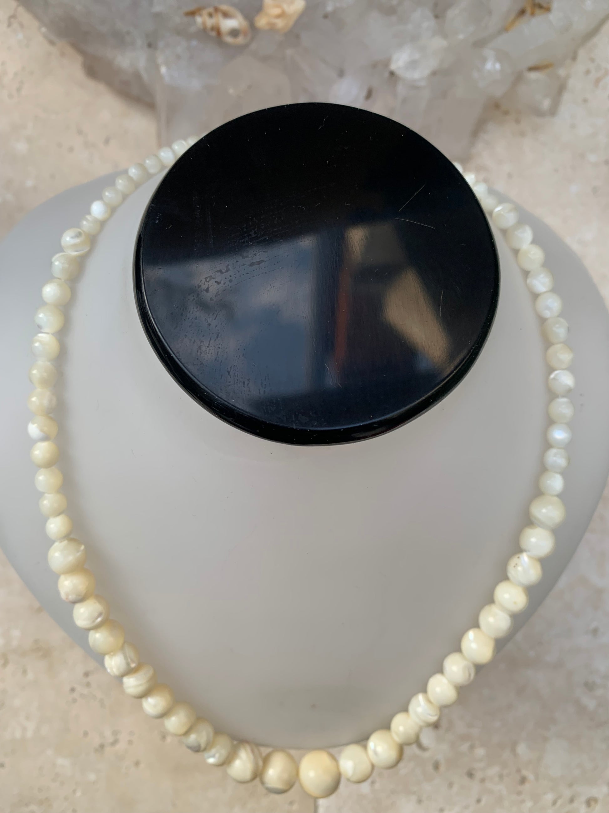 Particularité | Pierre organique précieuse, symbole de pureté, d’harmonie et d’élégance, souvent utilisée en bijoux, malas spirituels ou méditation. |