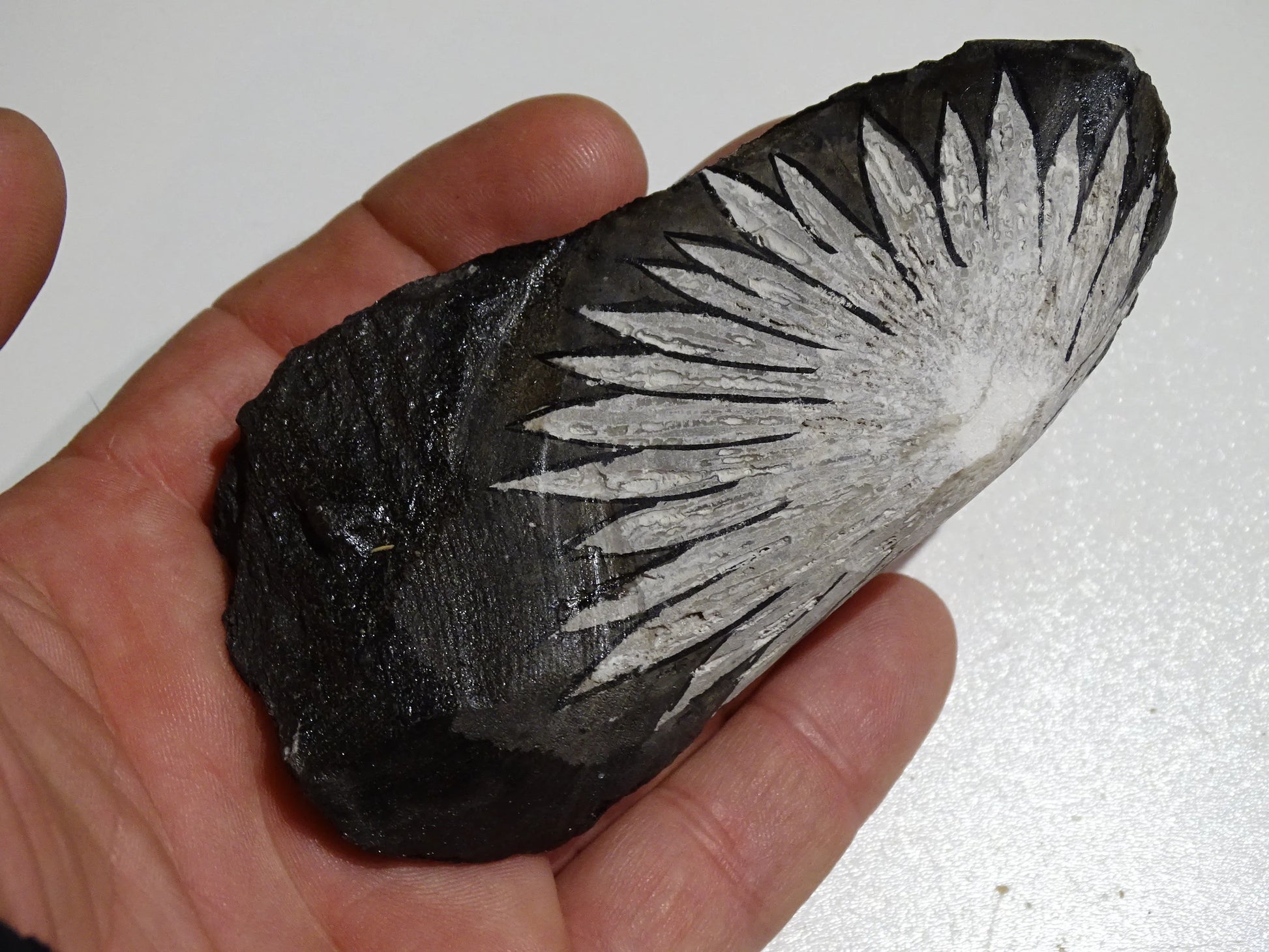 Le calcaire des ces petites pièces est souvent teinté en noir pour avoir un meilleur contraste. Les plus grosses pièces sont simplement dégagées de leur gangue par sablage et ainsi la fleur apparaît en volume sur le calcaire.