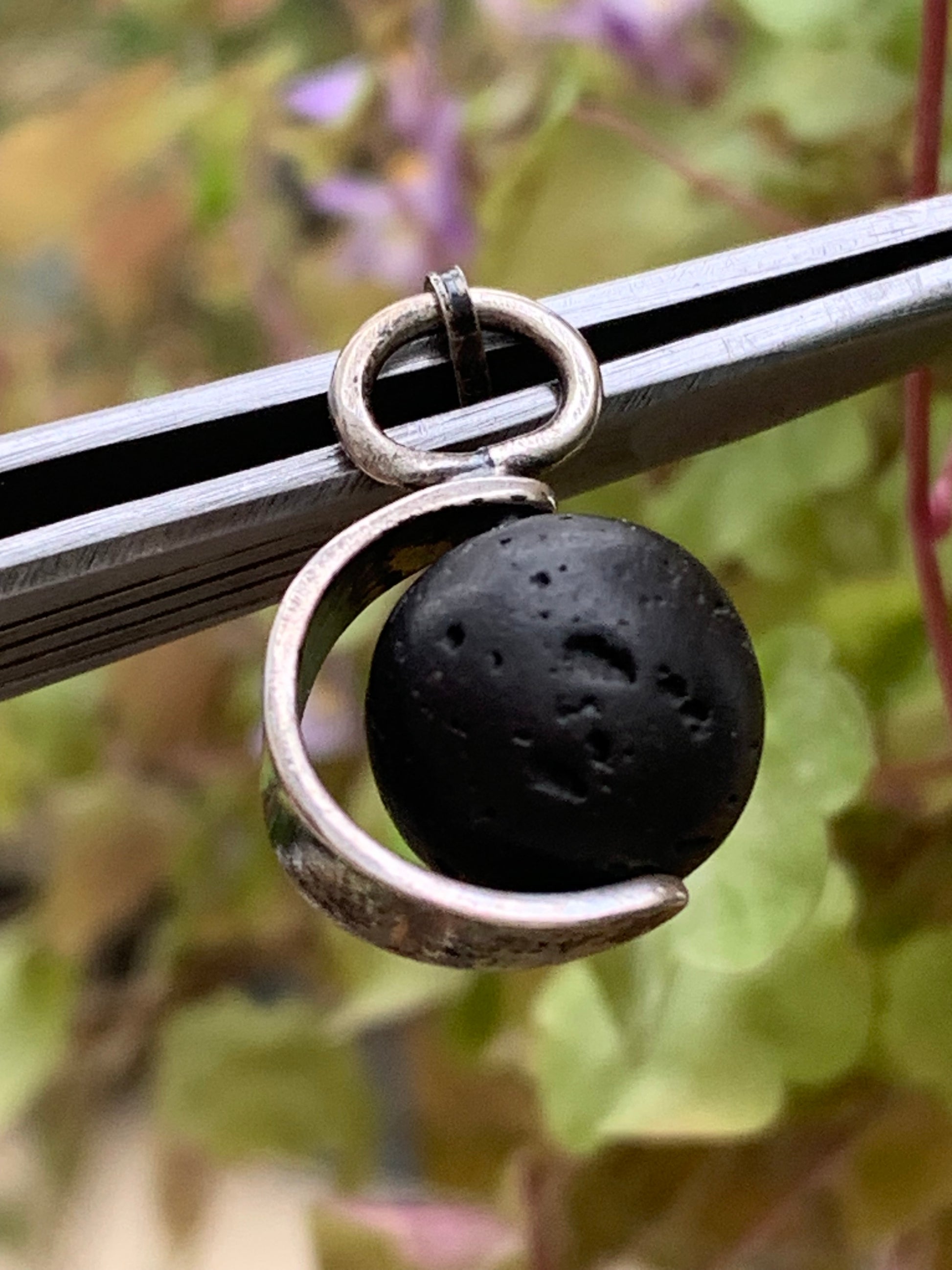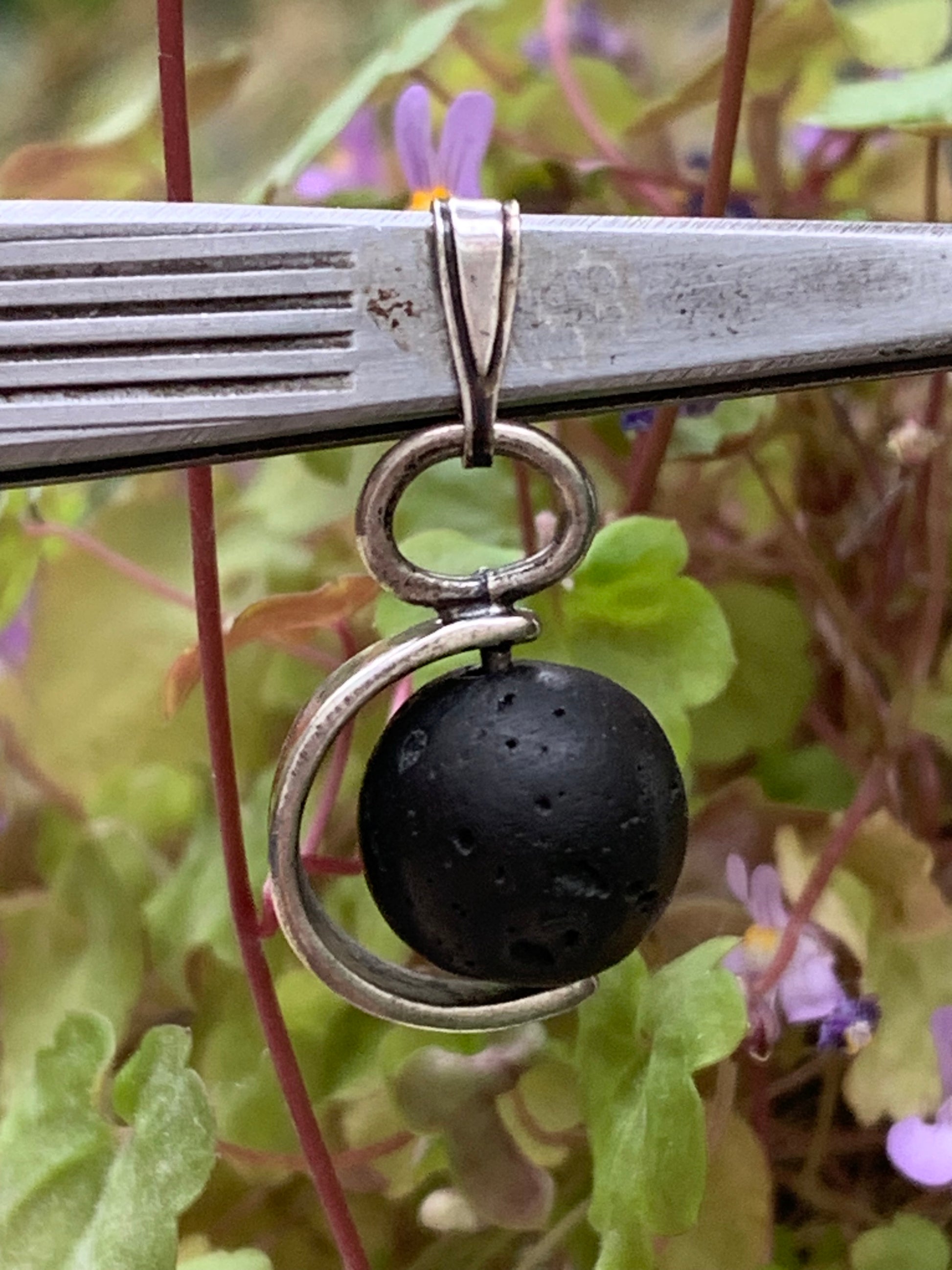 Pierre de lave, pendentif en Argent à la fois esthétique et fonctionnel utilisé pour la diffusion d’huiles essentielles grâce aux propriétés naturelles de la lave !