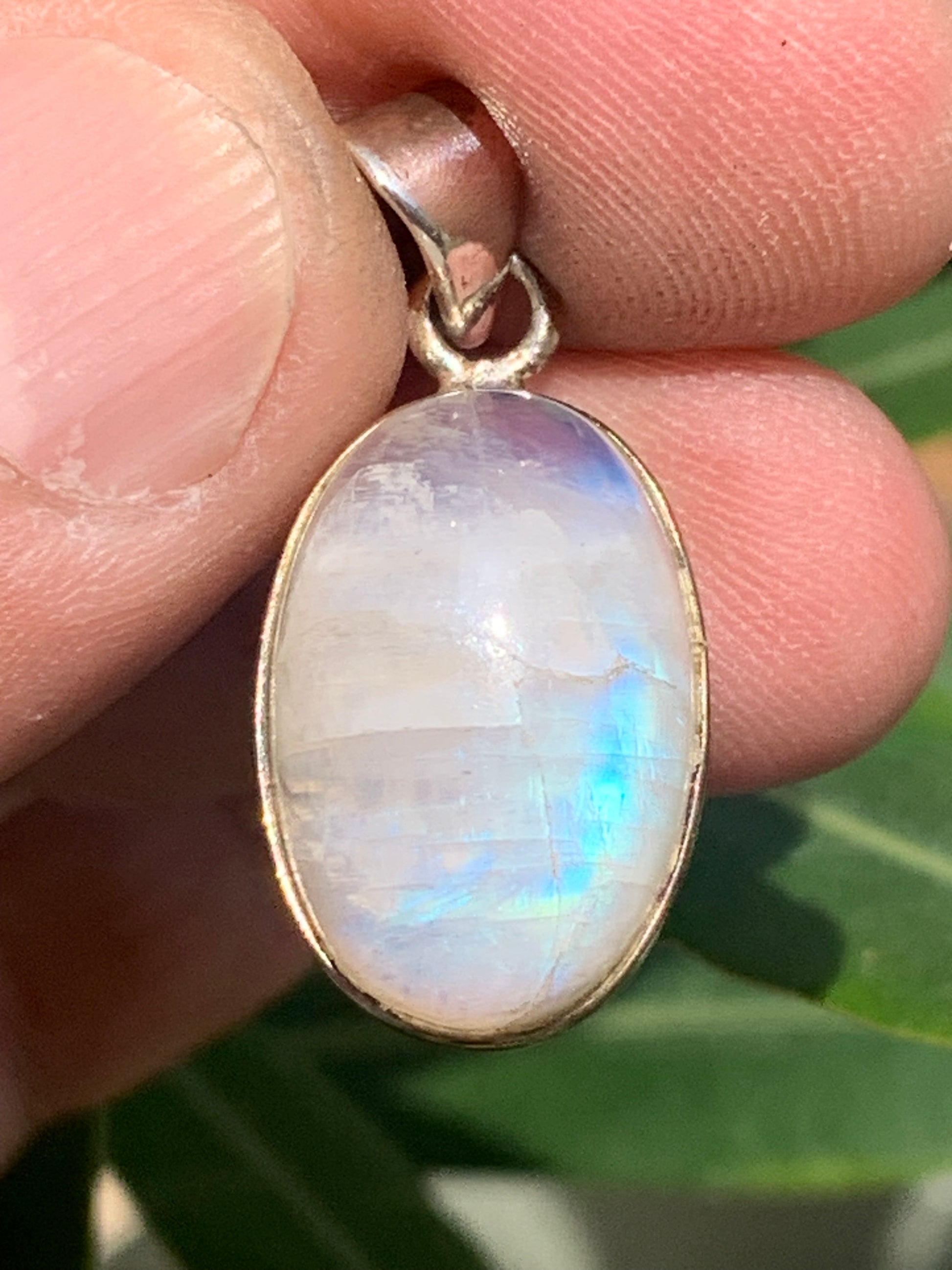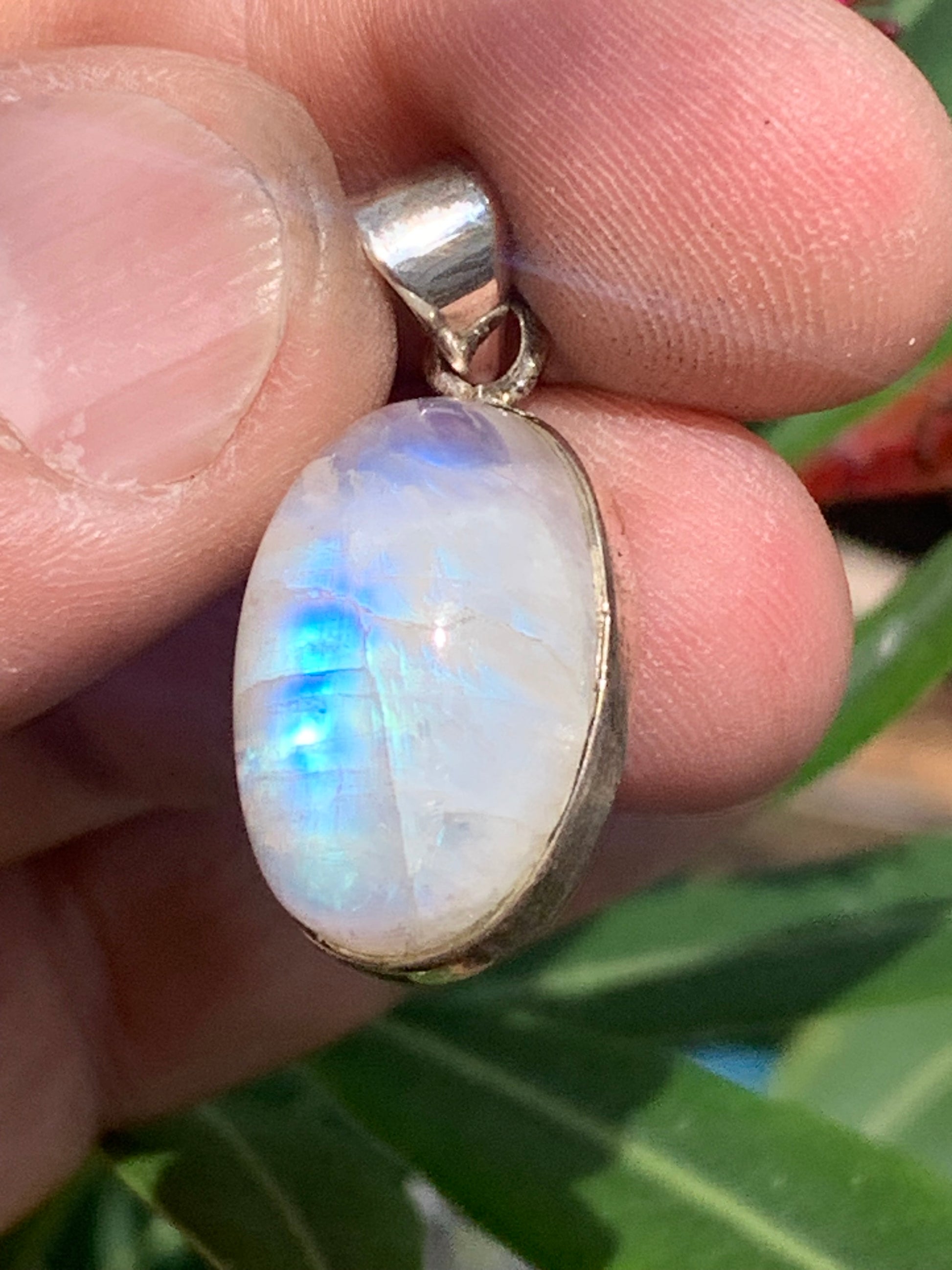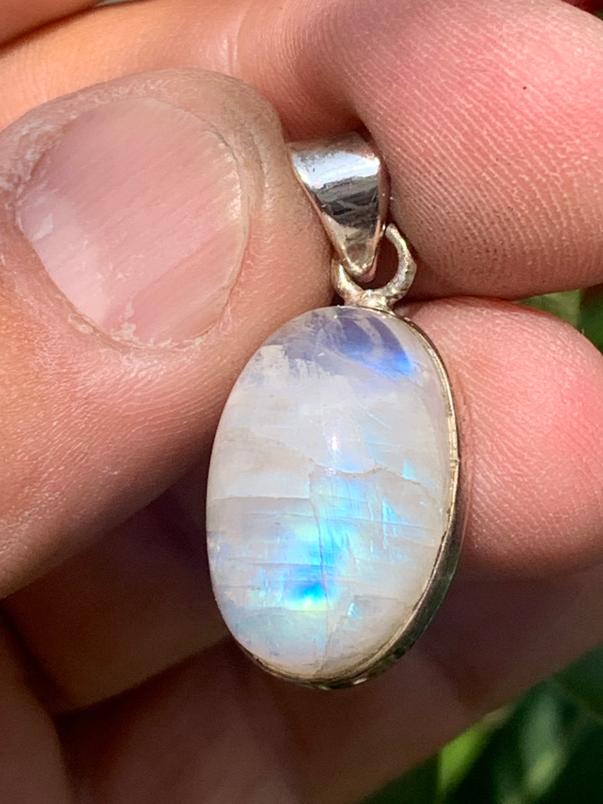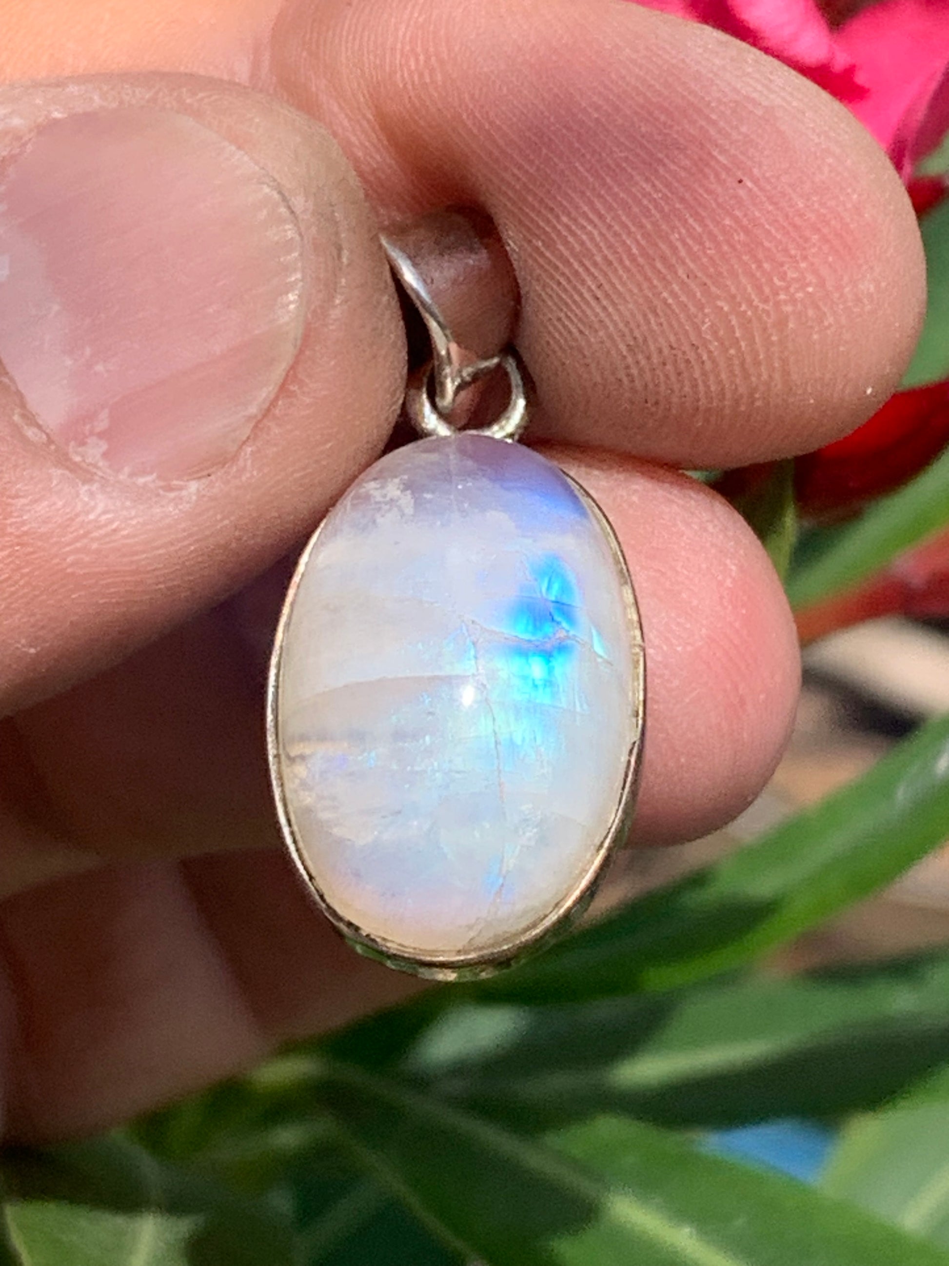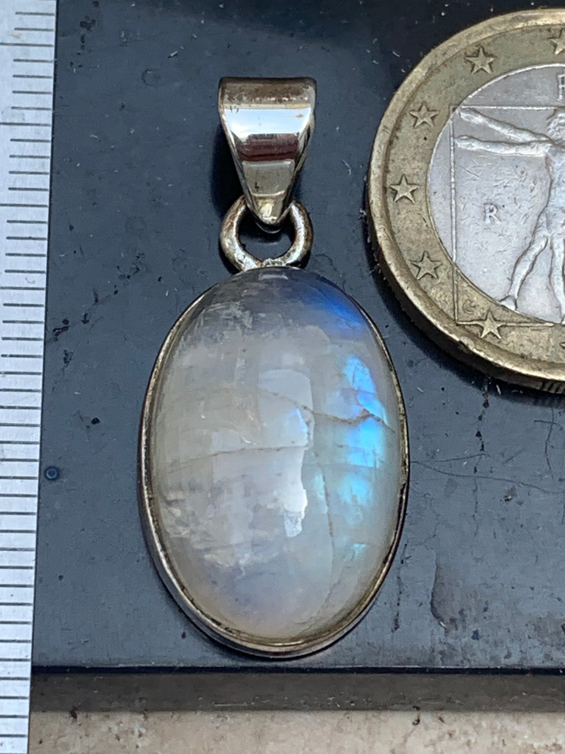 Pierre de lune/ Labradorite blanche ou Péristérite, pendentif sertis Argent de 33mm x15 x10. Qualité AA à AAA, vendu avec cordon réglable de couleur noire !