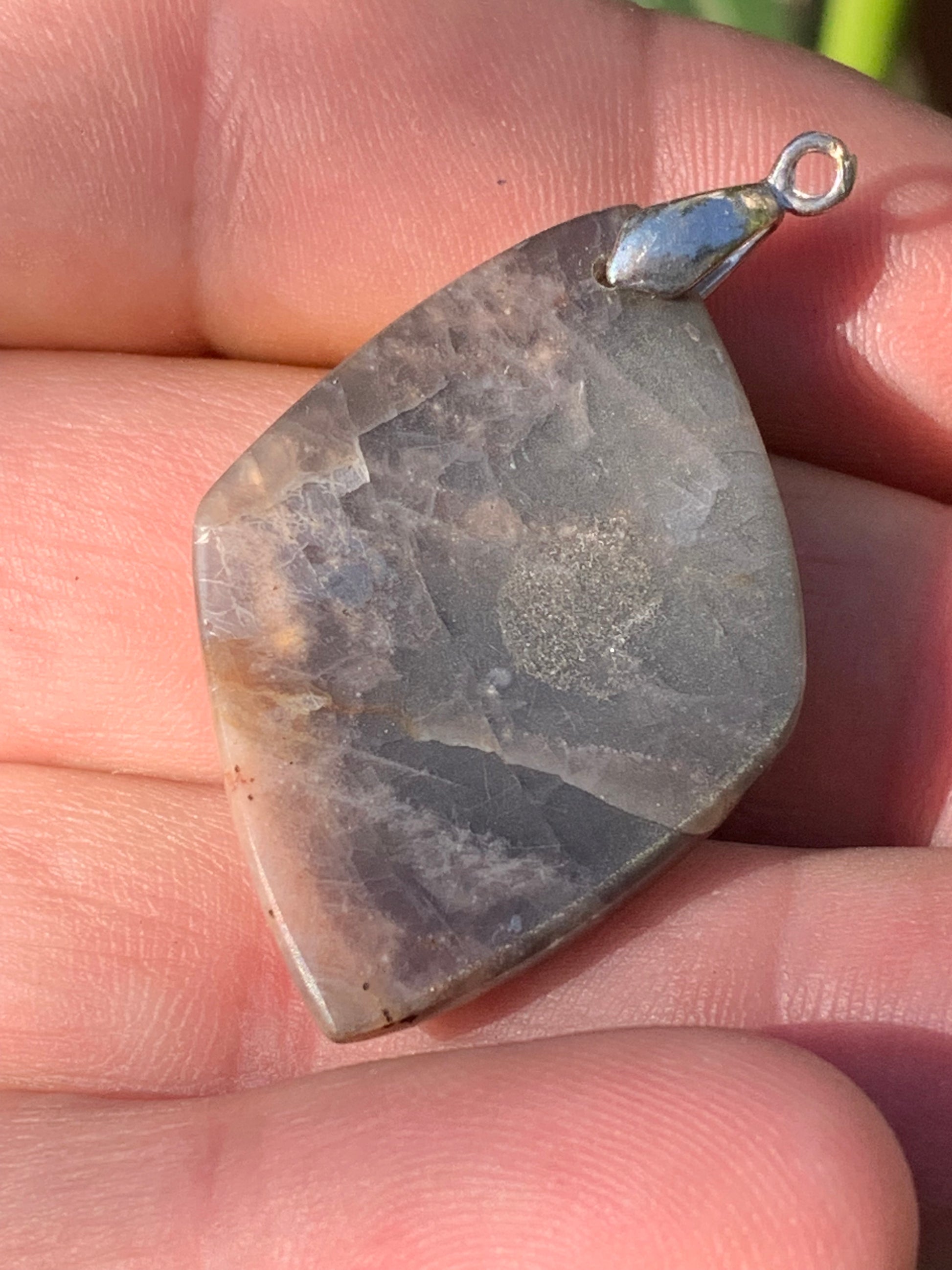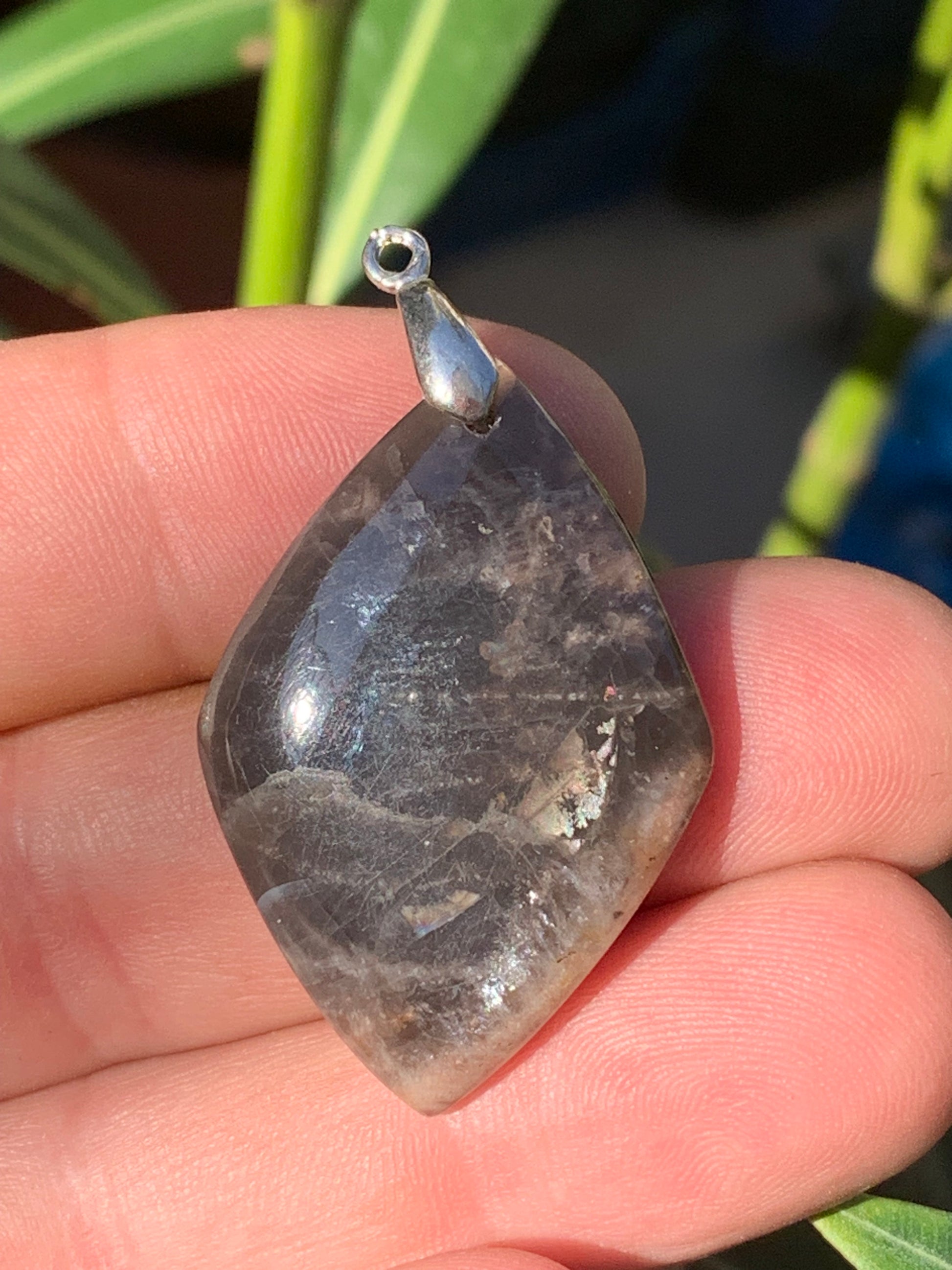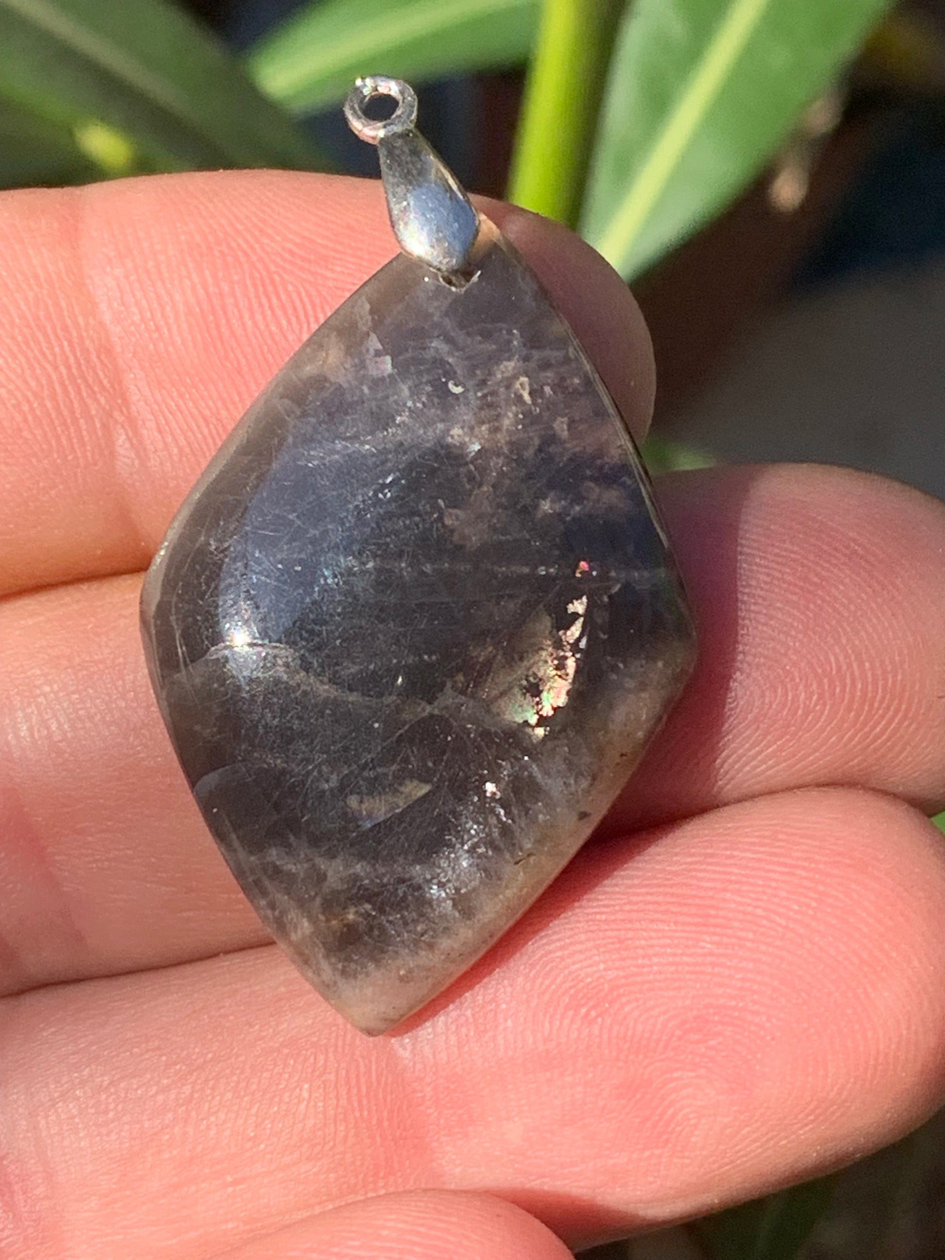 Pierre de lune noire, pendentif en cabochon percé de 48mm x27 x7. Vendu avec cordon réglable de couleur noire !
