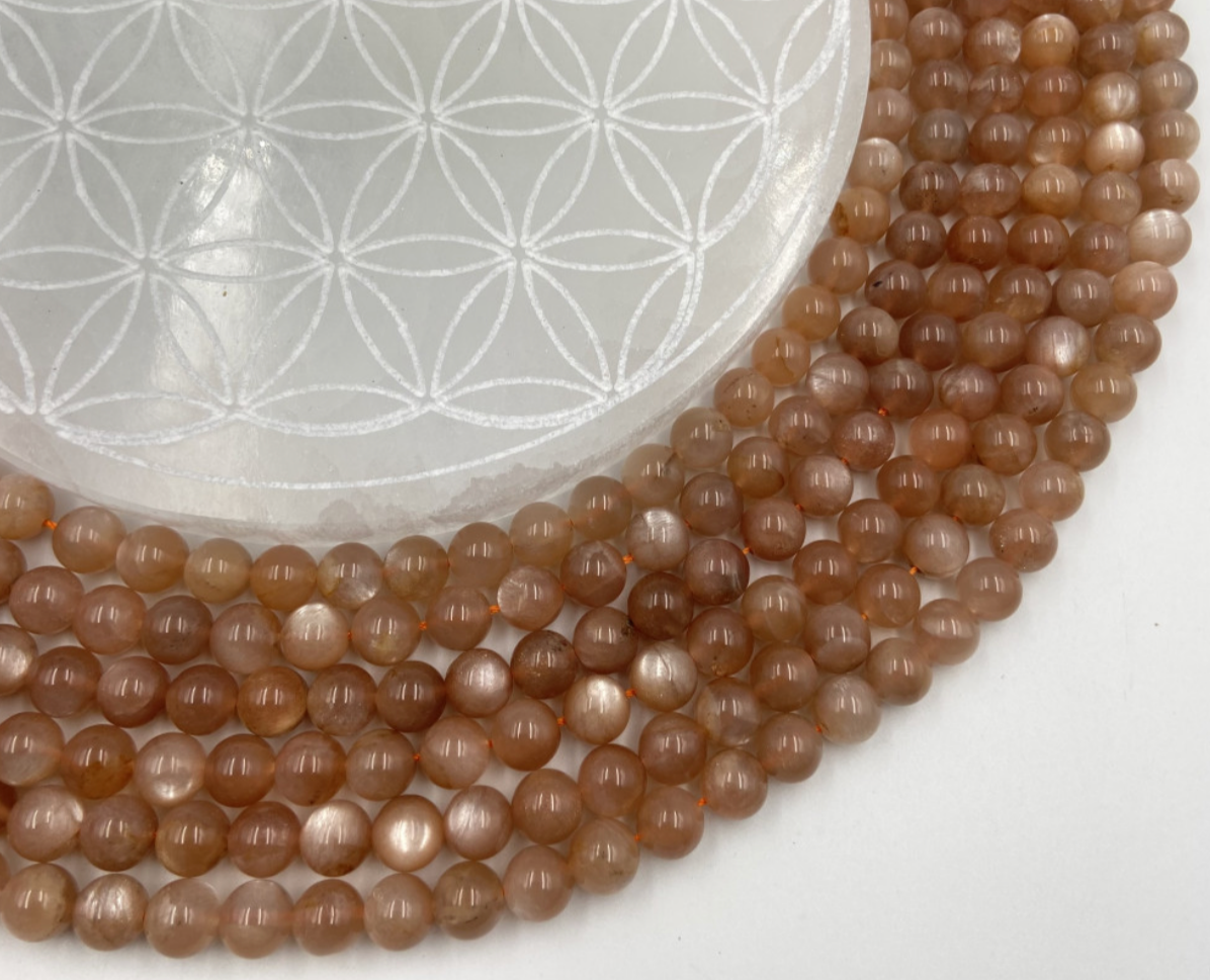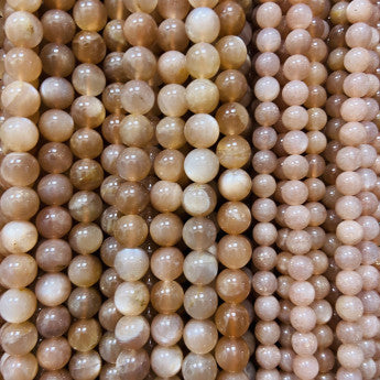 Pierre du soleil d'Inde, perles rondes de 6 ou 8 mm. Vendu en fil de perle 38/39 cm, en bracelet de 17 à 21cm, en collier de 45 ou sautoir de 60cm. Qualité AA à AAA, superbes perles qui réchauffent le coeur !