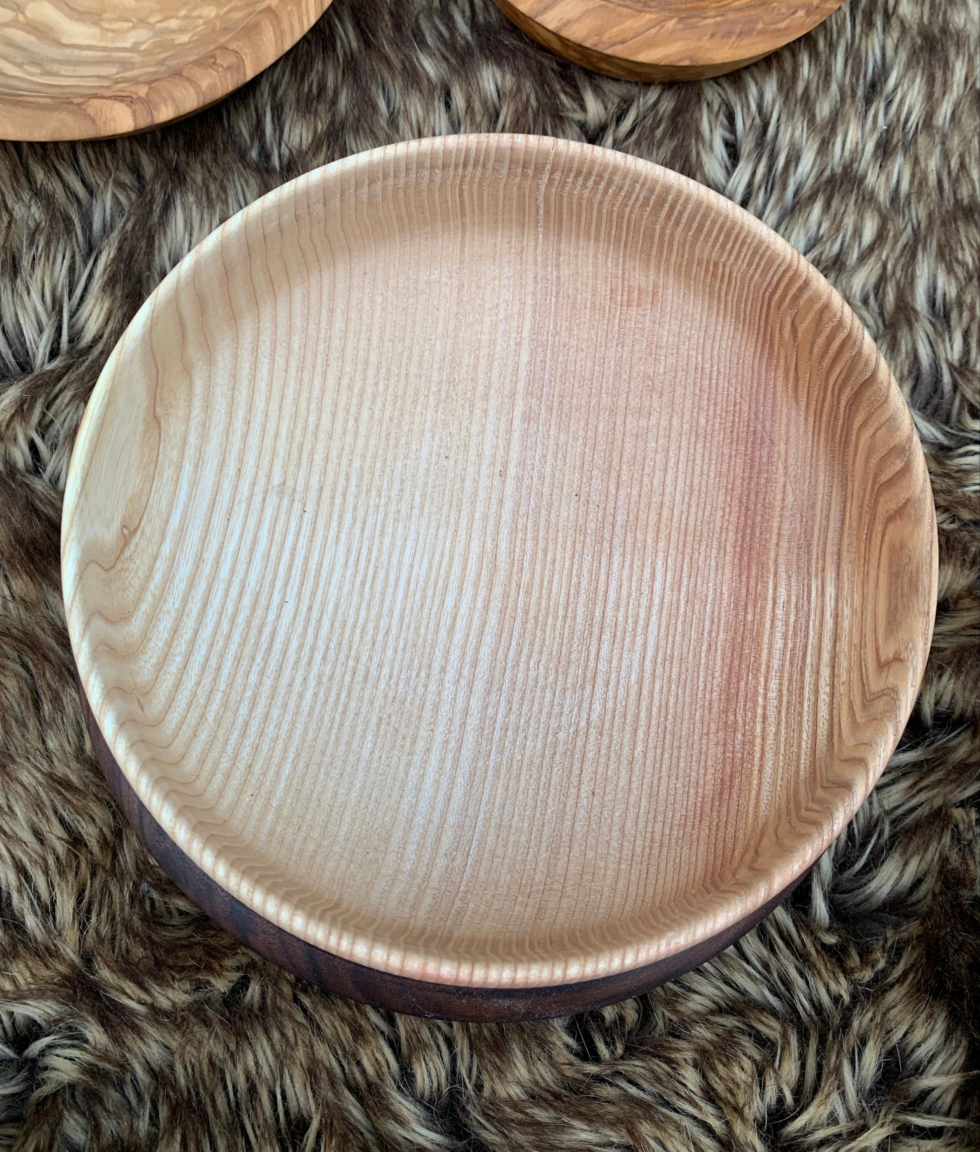 Plat de présentation ou grande assiette creuse en bois avec ou sans gravure de Runes, 200 mm de diamètre x 60 de haut x 8 - 250 grammes. Fait main en France (19), très belle qualité, magnifique pièce !