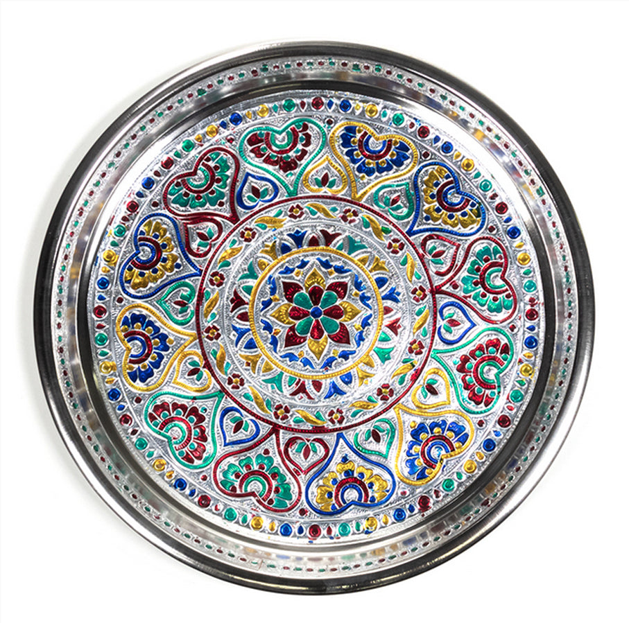 Plat indien richement décoré, traditionnellement utilisé pour offrir des bougies, de l'encens, des fleurs, de la nourriture, etc.