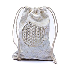 Pochette doublée avec symbole fleur de vie brodé. Convient pour ranger un mala, des cartes de tarot, des pierres précieuses ou tout autre élément précieux pour vous.
