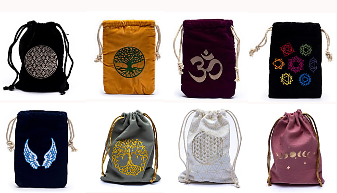 Sélection de pochettes doublées avec symbole brodé de 19 x 13 cm. Convient pour ranger un mala, des cartes de tarot, des pierres précieuses ou tout autre élément précieux pour vous !