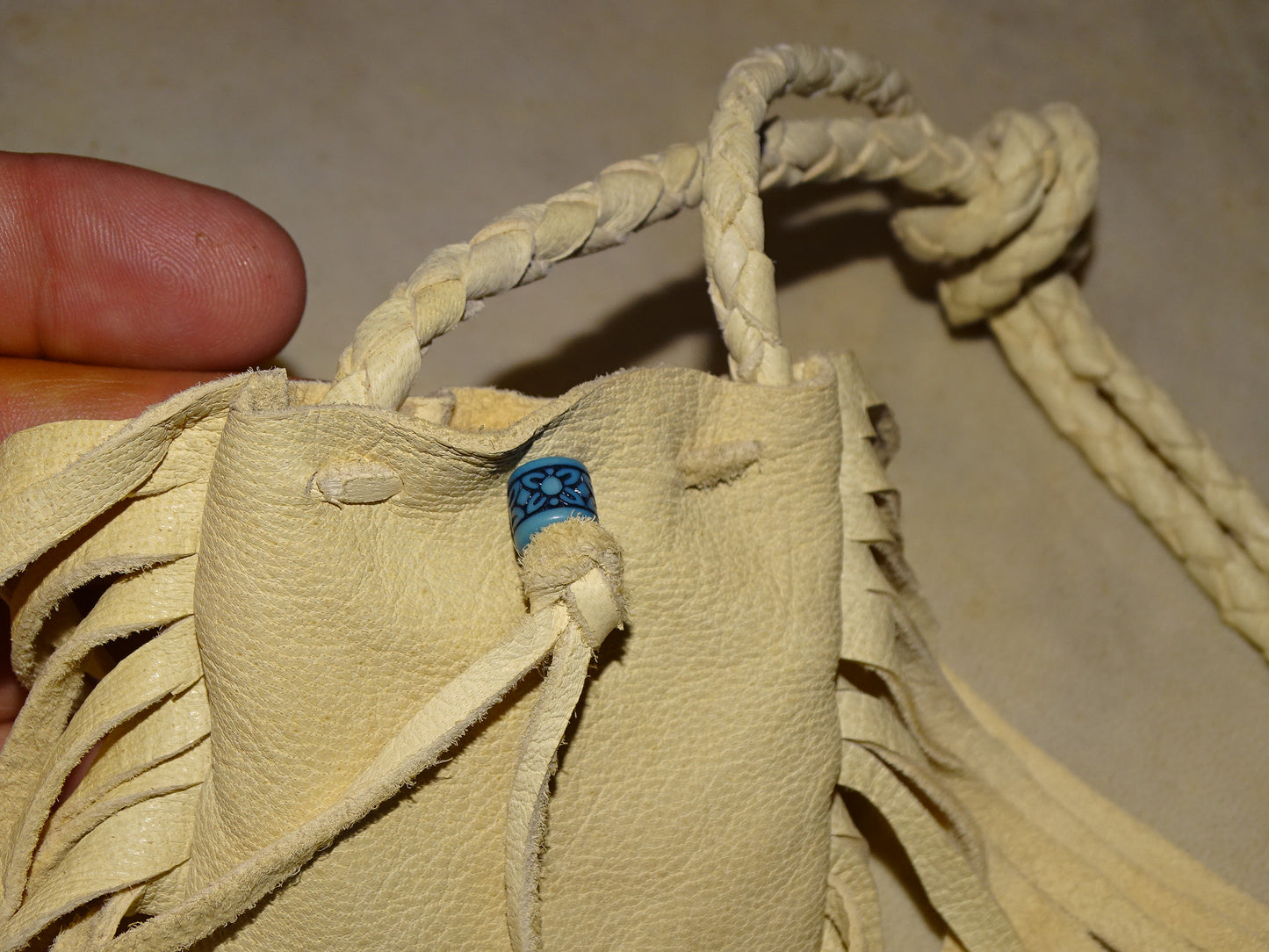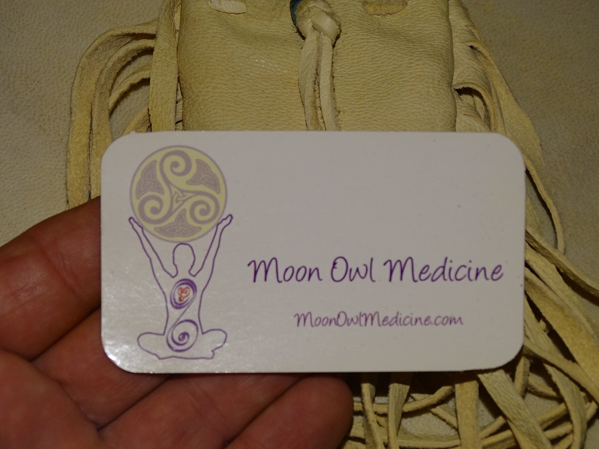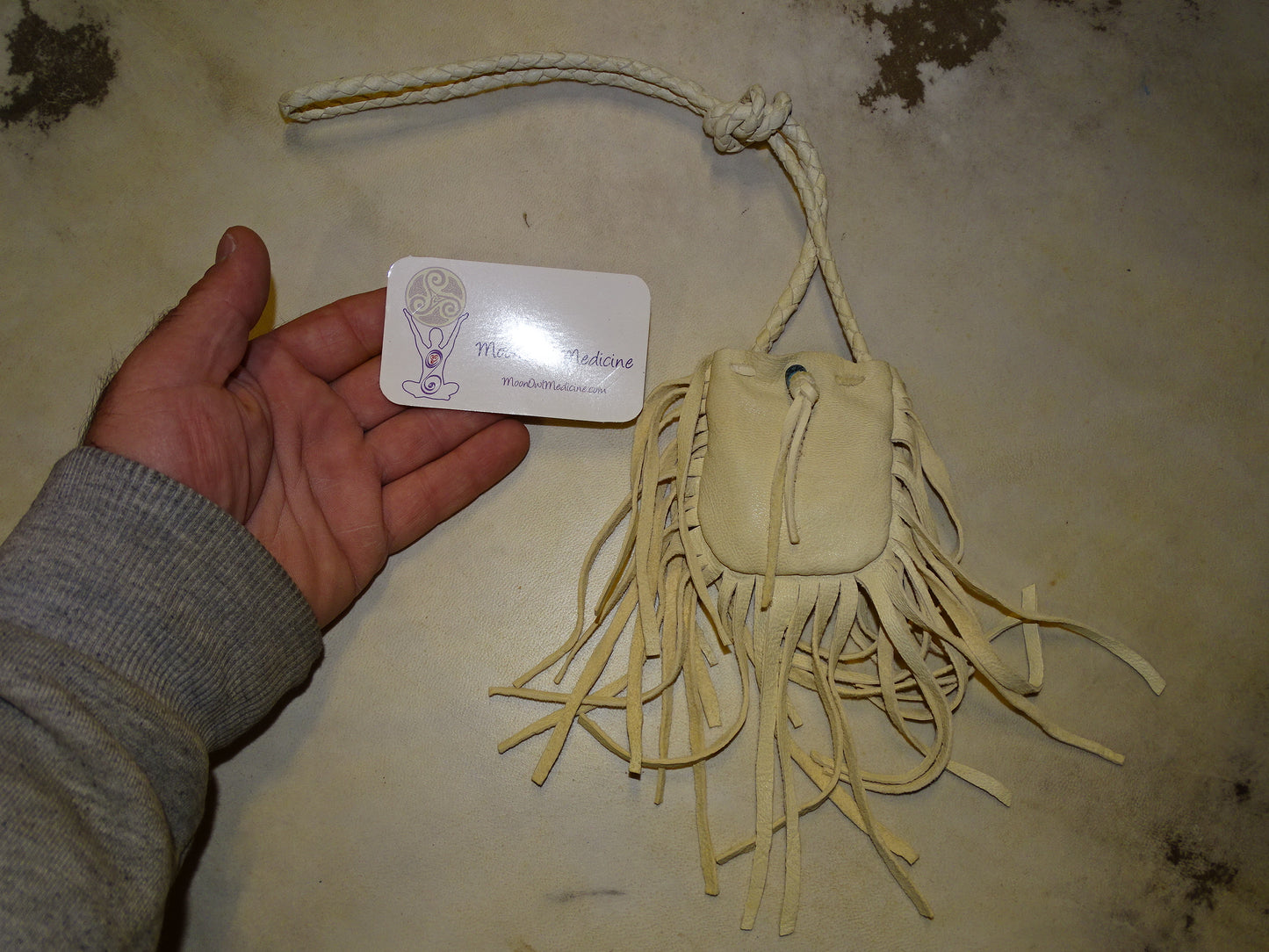 Medecine bag/ pochette en cuir fait main au Québec par de vrais Indiens, les 'Esprits de la terre'. 80 centimètres de longueur. Magnifique travail, 2 modèles au choix !