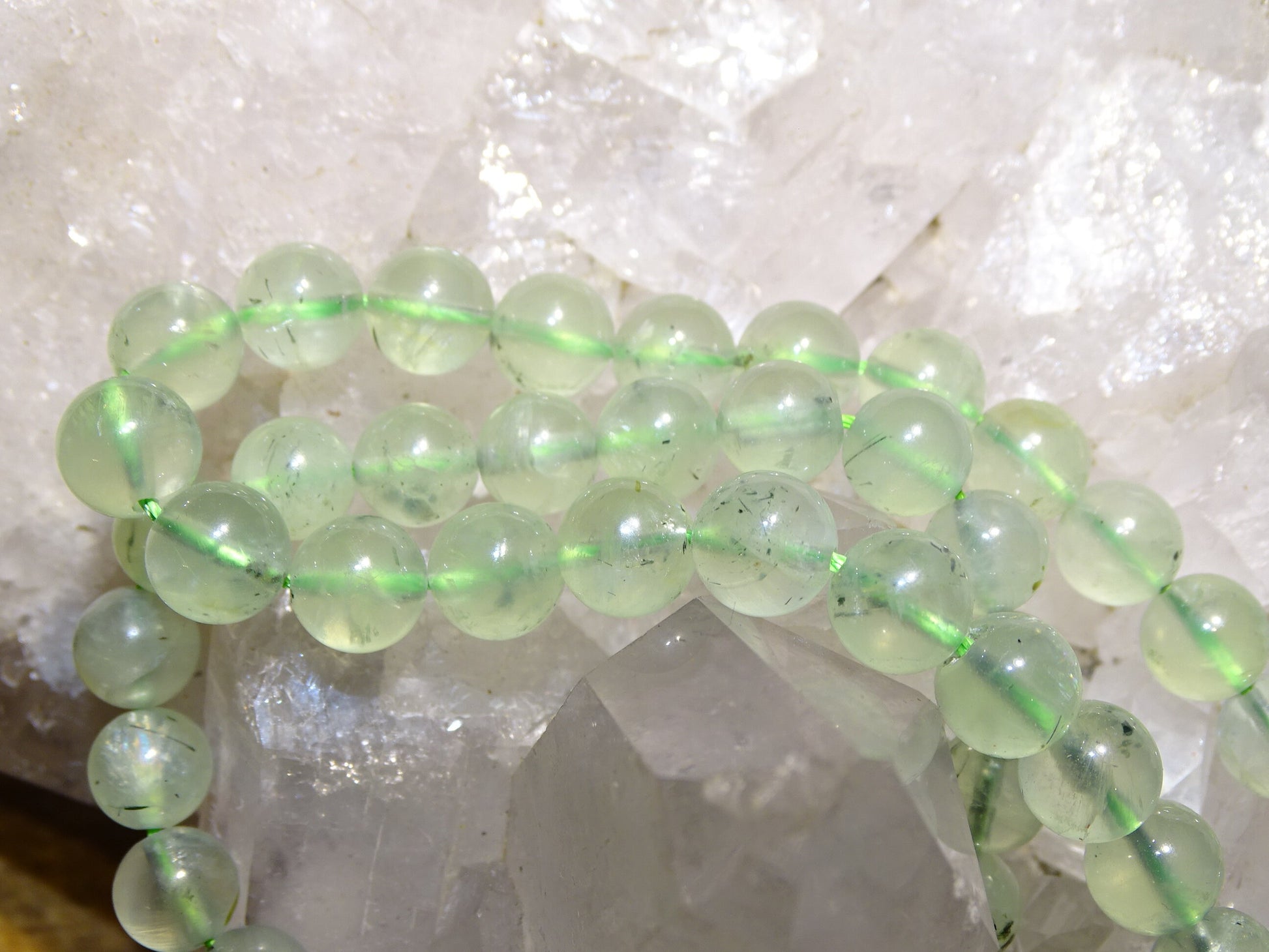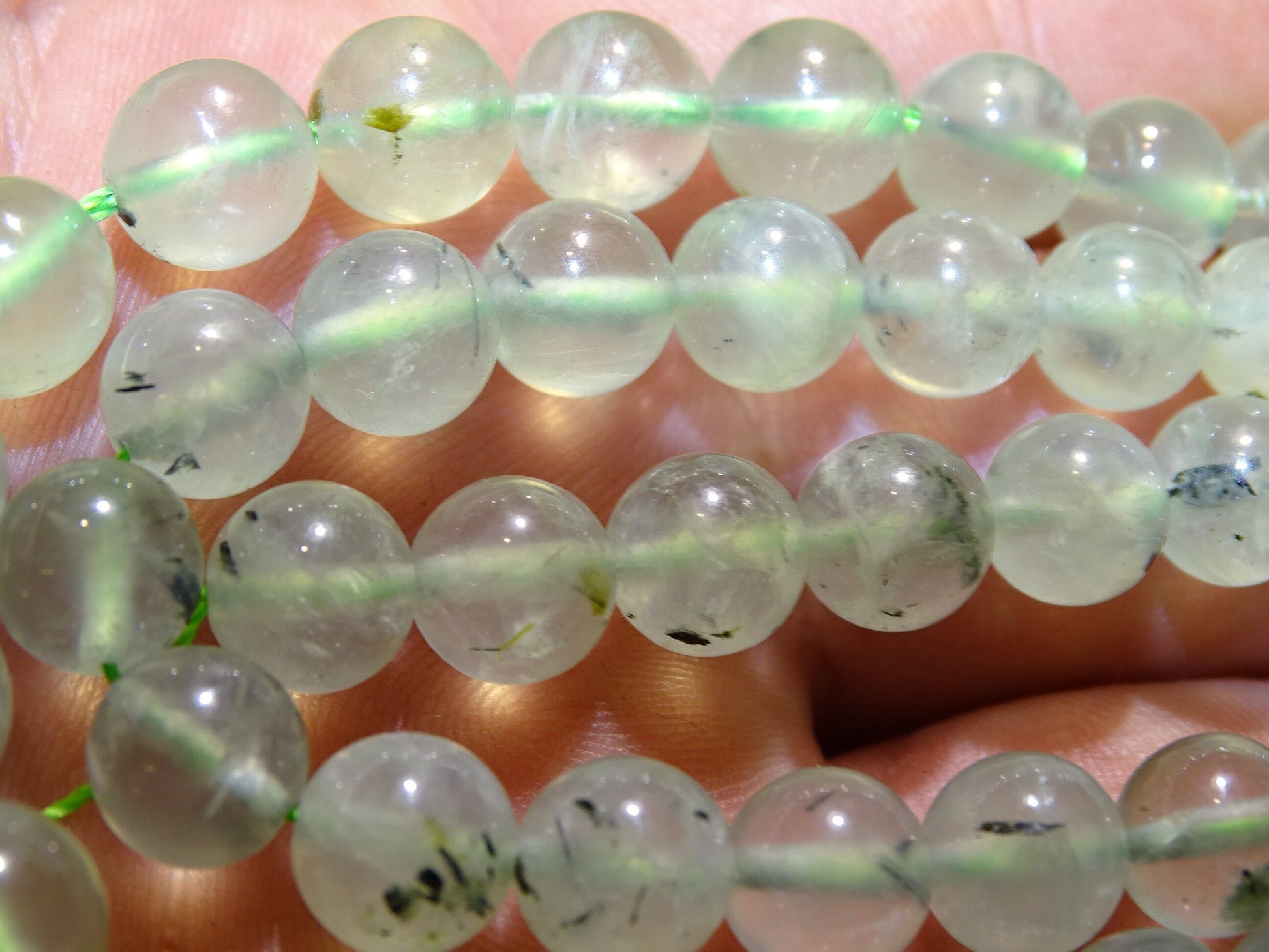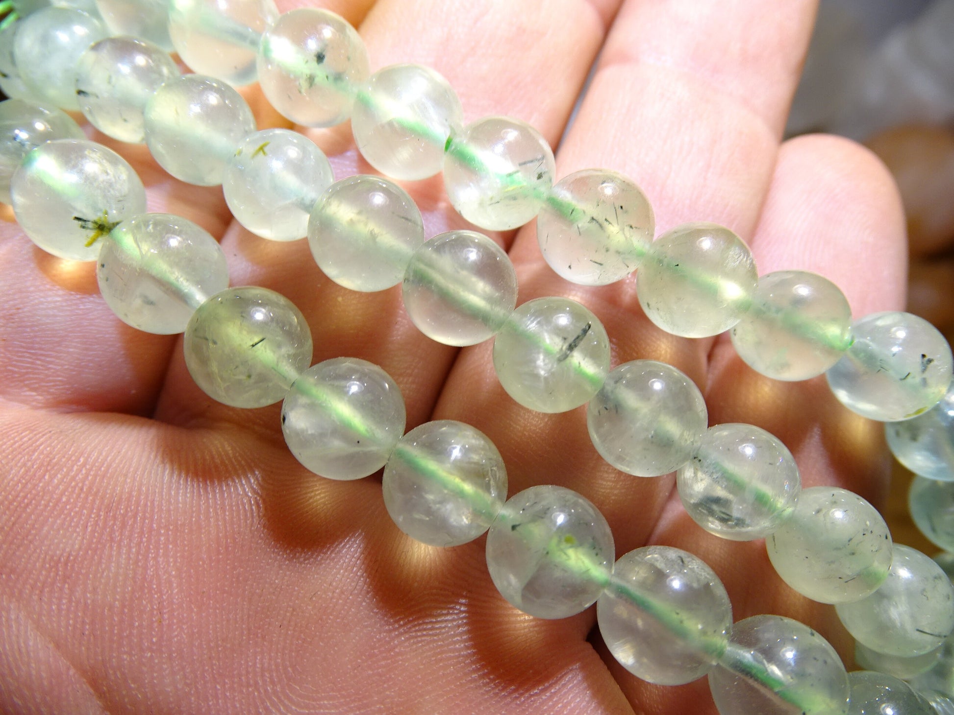 💎 Type de perle : Préhnite verte avec inclusions d'Épidote - Qualité AA à AAA - Finition 'ronde', polie et brillante