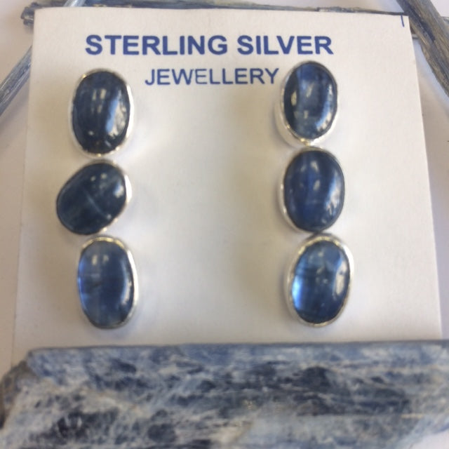 Puces/ Boucles d'oreilles en 'Cyanite bleue' du Brésil, qualité AA à AAA. Finition Argent 0.925, parfait !