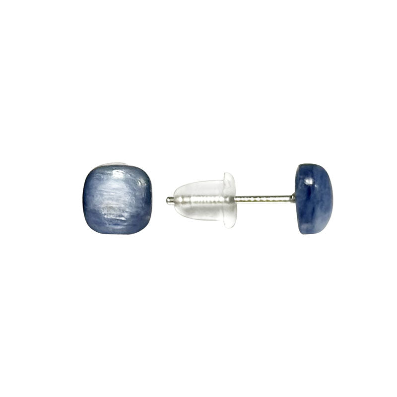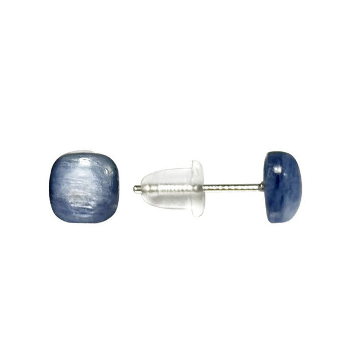 Puces/ Clous/ Boucles d'oreilles en 'cyanite', cabochon de forme 'carré' de 6 mm, qualité AA à AAA. Finition en acier inoxydable, parfait !