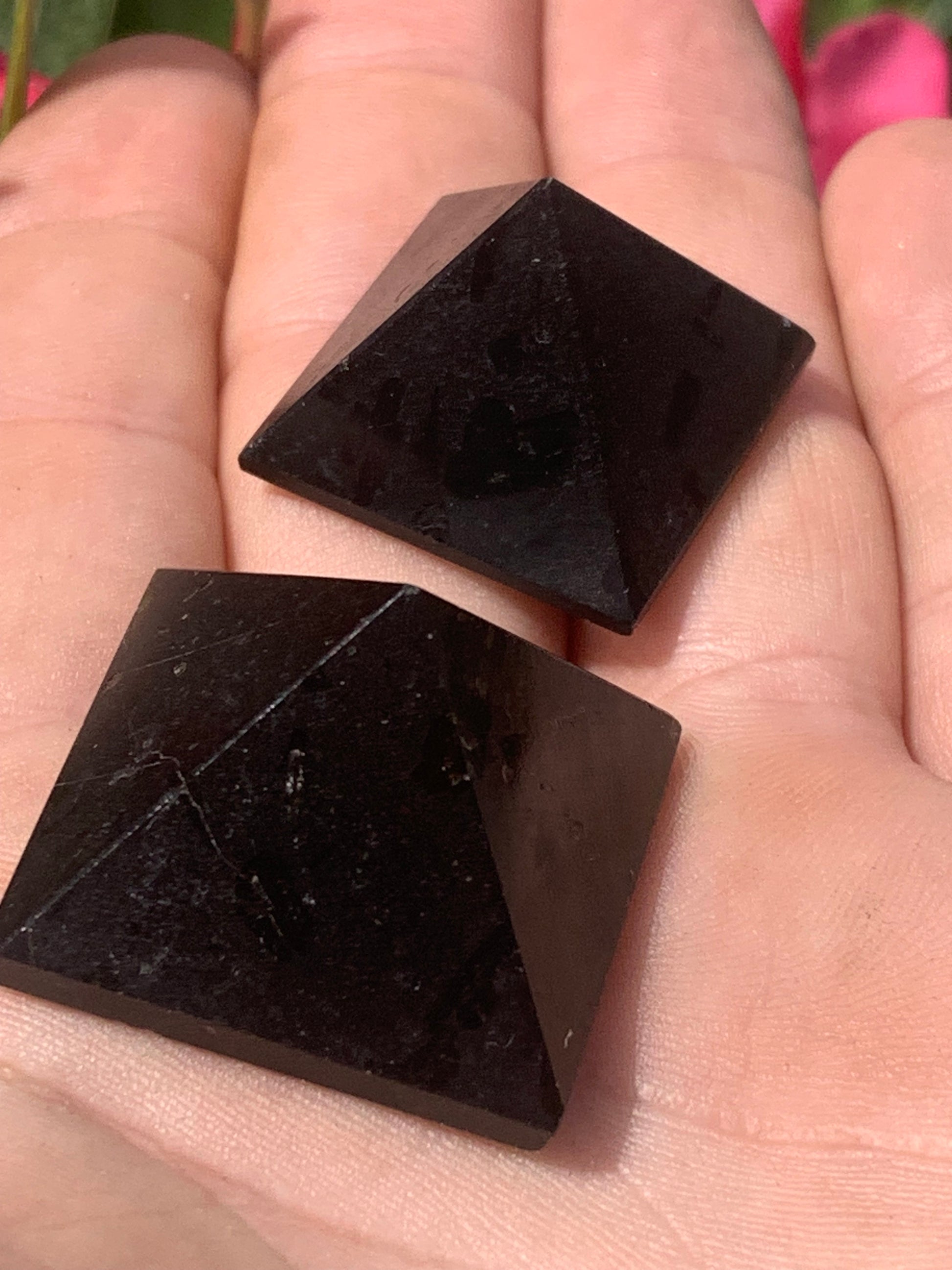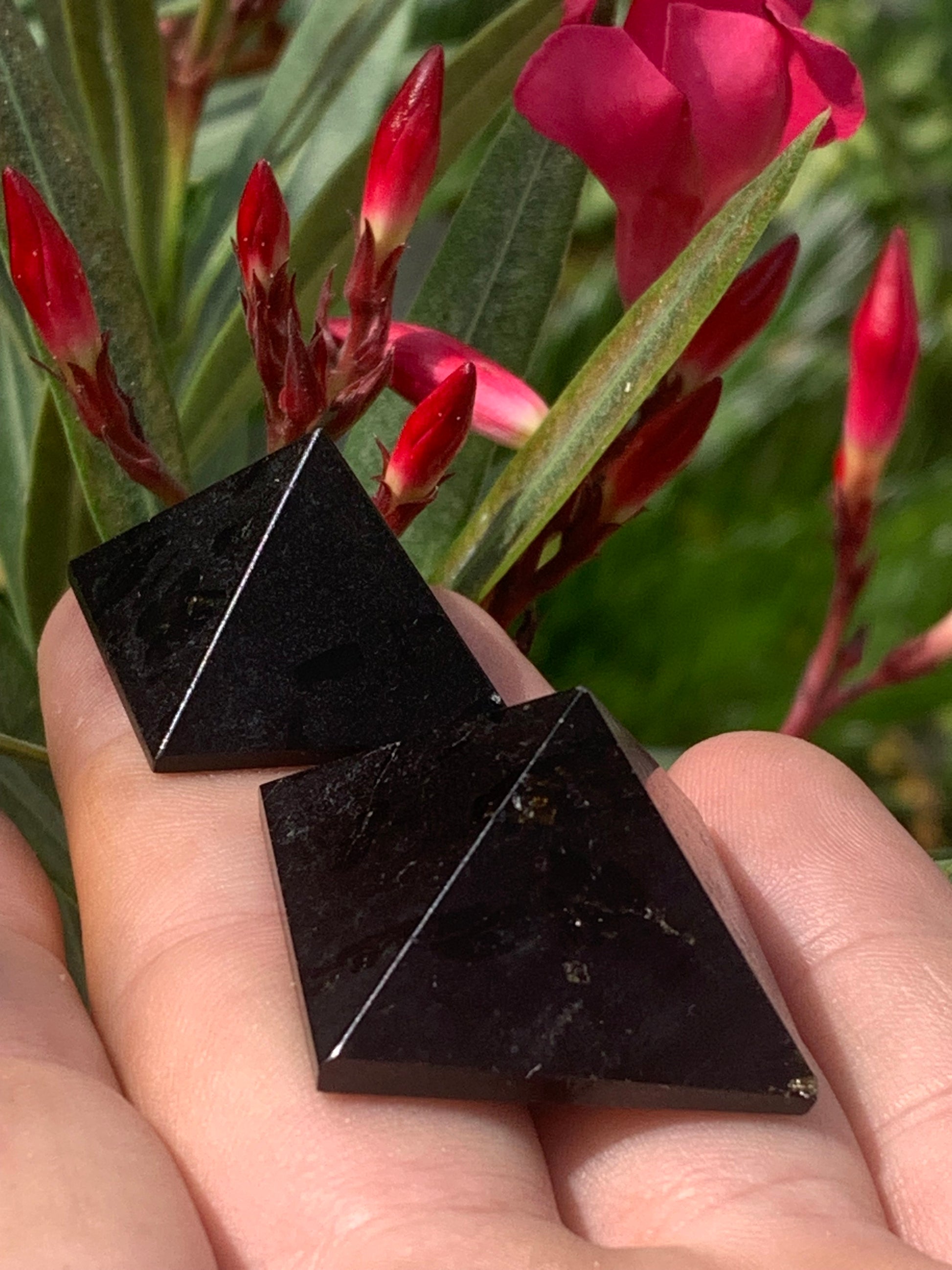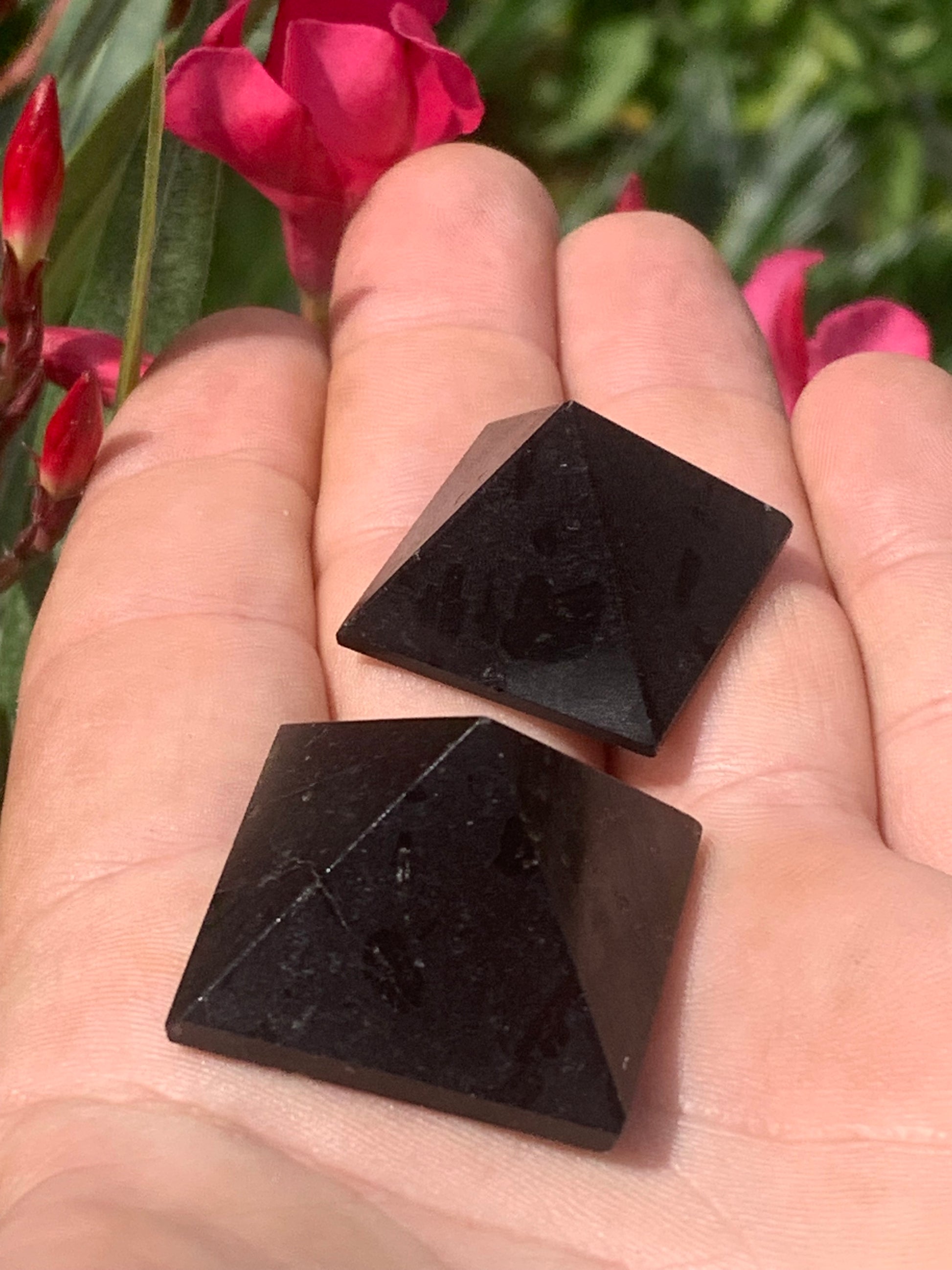 Pyramides en Tourmaline, de 25 à 30 millimètres ! Protège des ondes et permet l'ancrage, parfait pour la lithothérapie, collection, exposition...!
